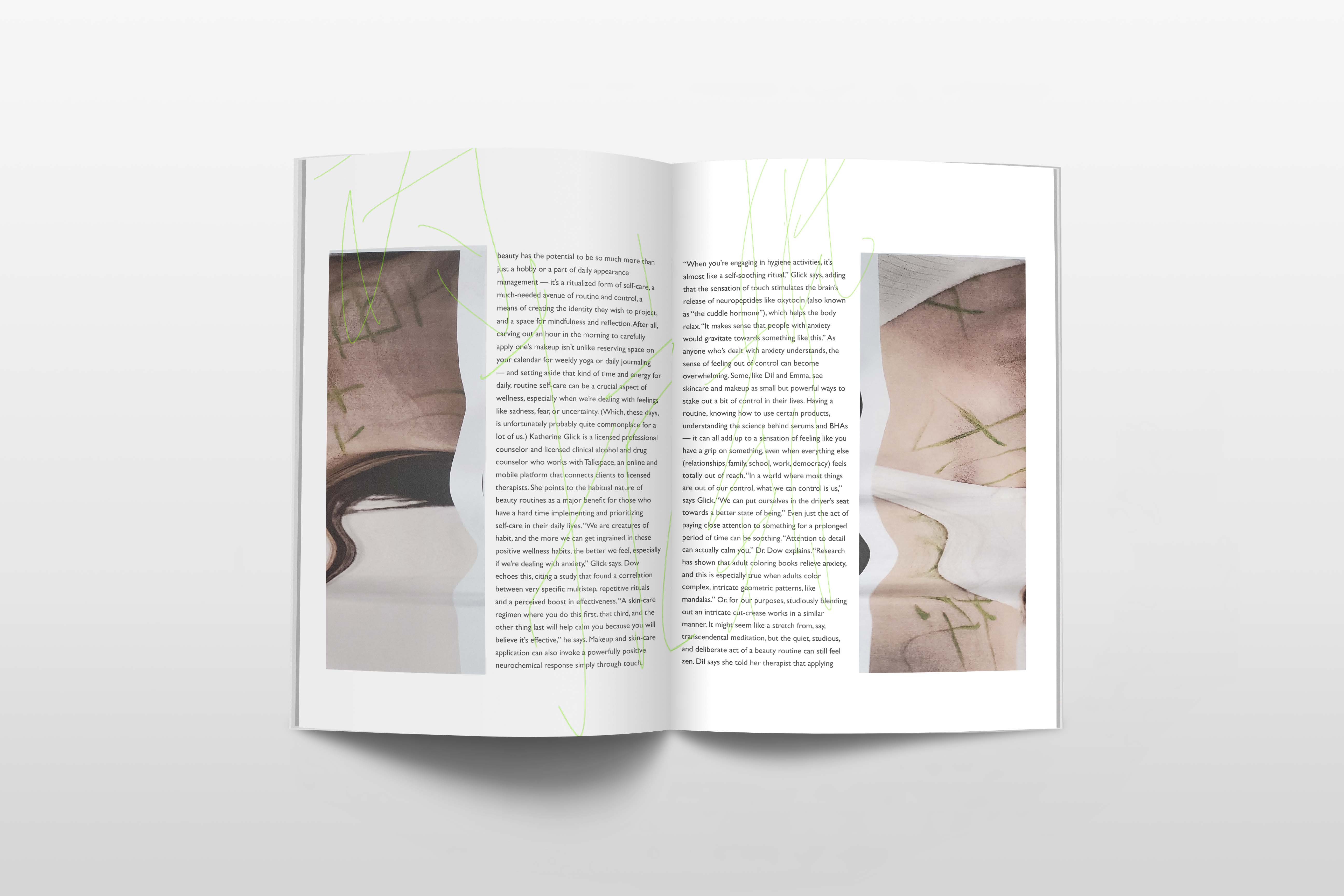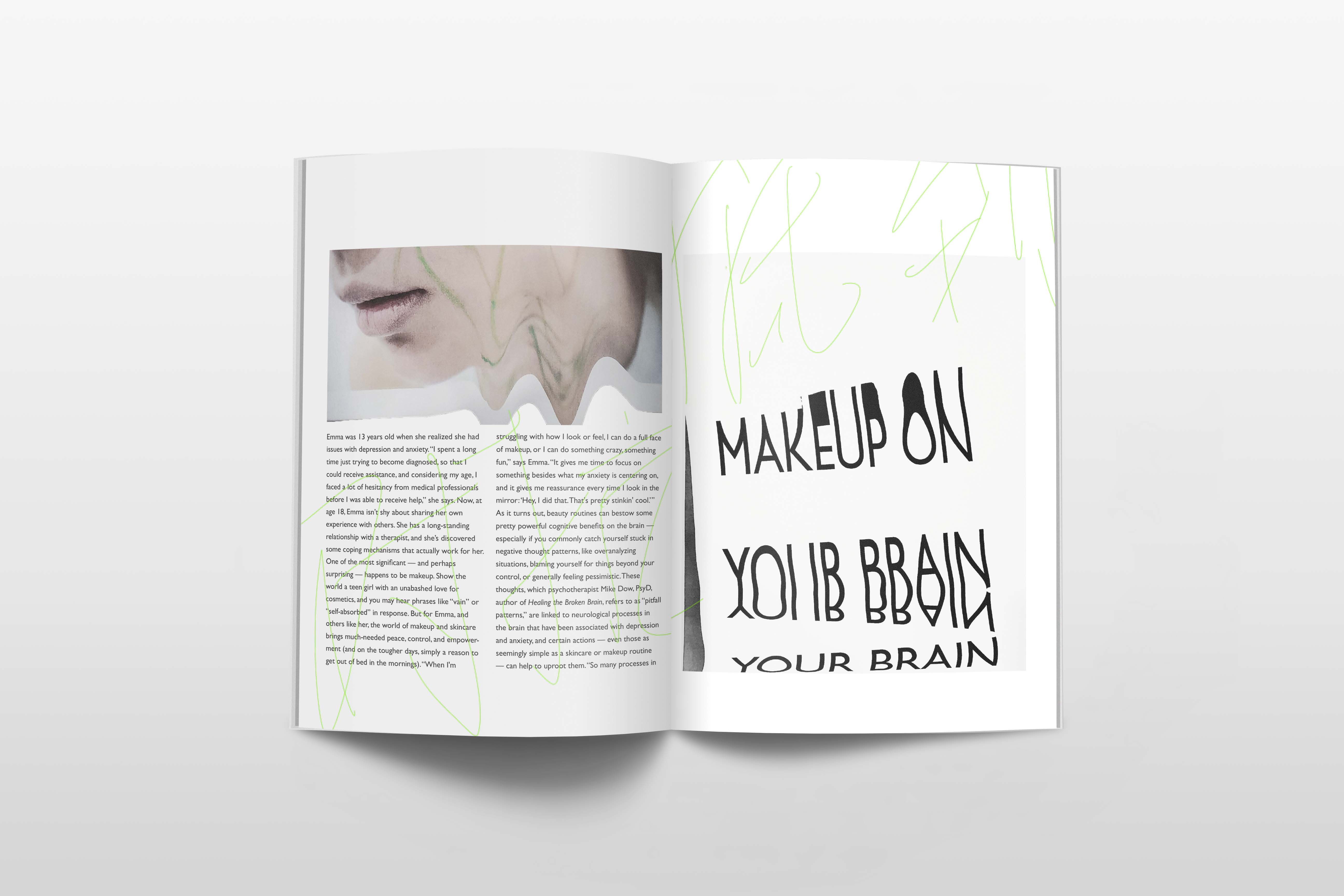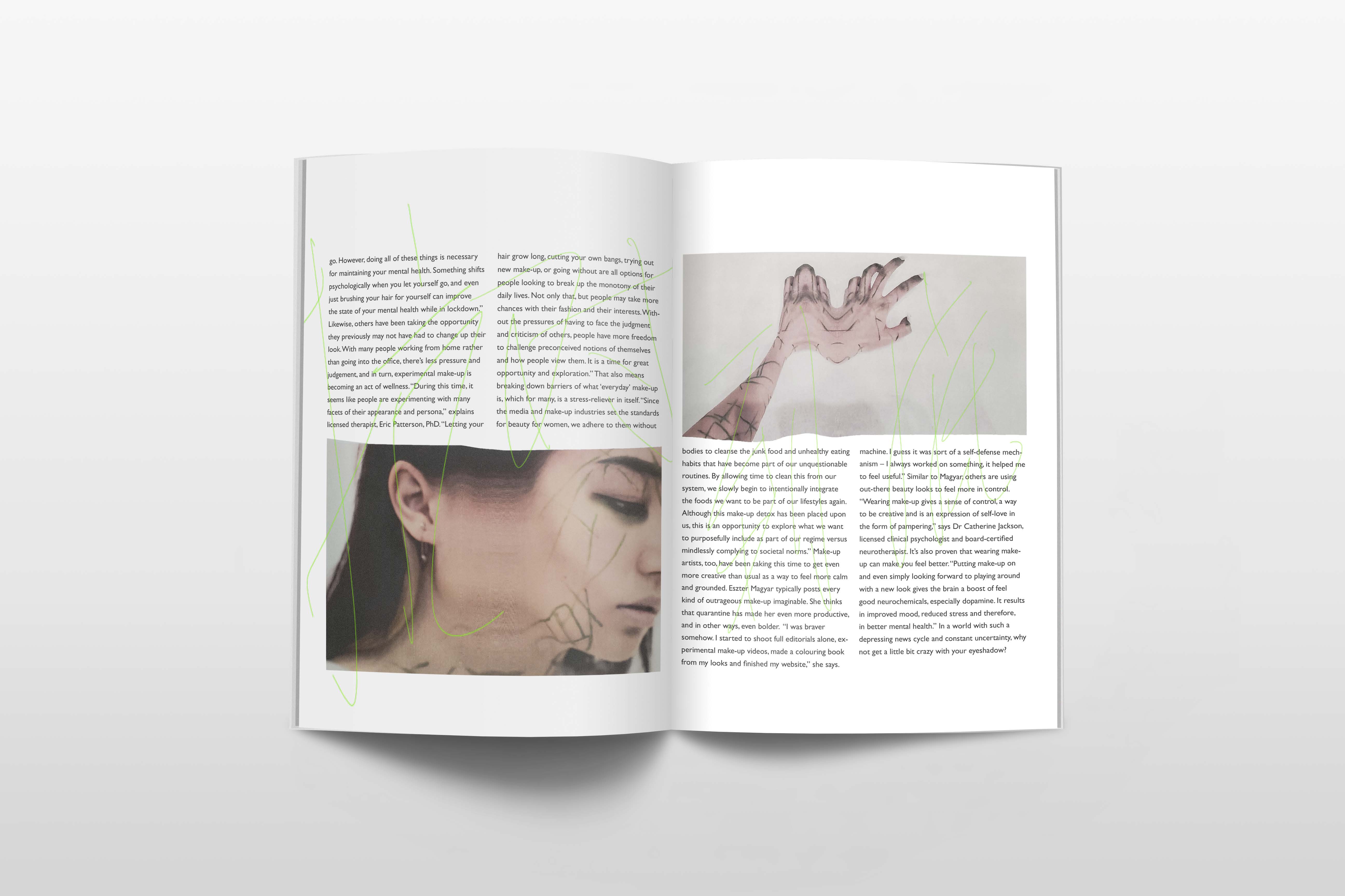 Process of image creating. The makeup is inspired by experimental makeup, which focuses on self-expression. This makeup represents my breaking through of societal normality. For instance, instead of wearing eyeshadow on my eyelid, I apply it to my undereye. I also used face paint to paint Chinese calligraphy on myself.