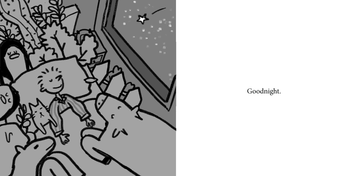 Black&white tight rough sketches of children's book