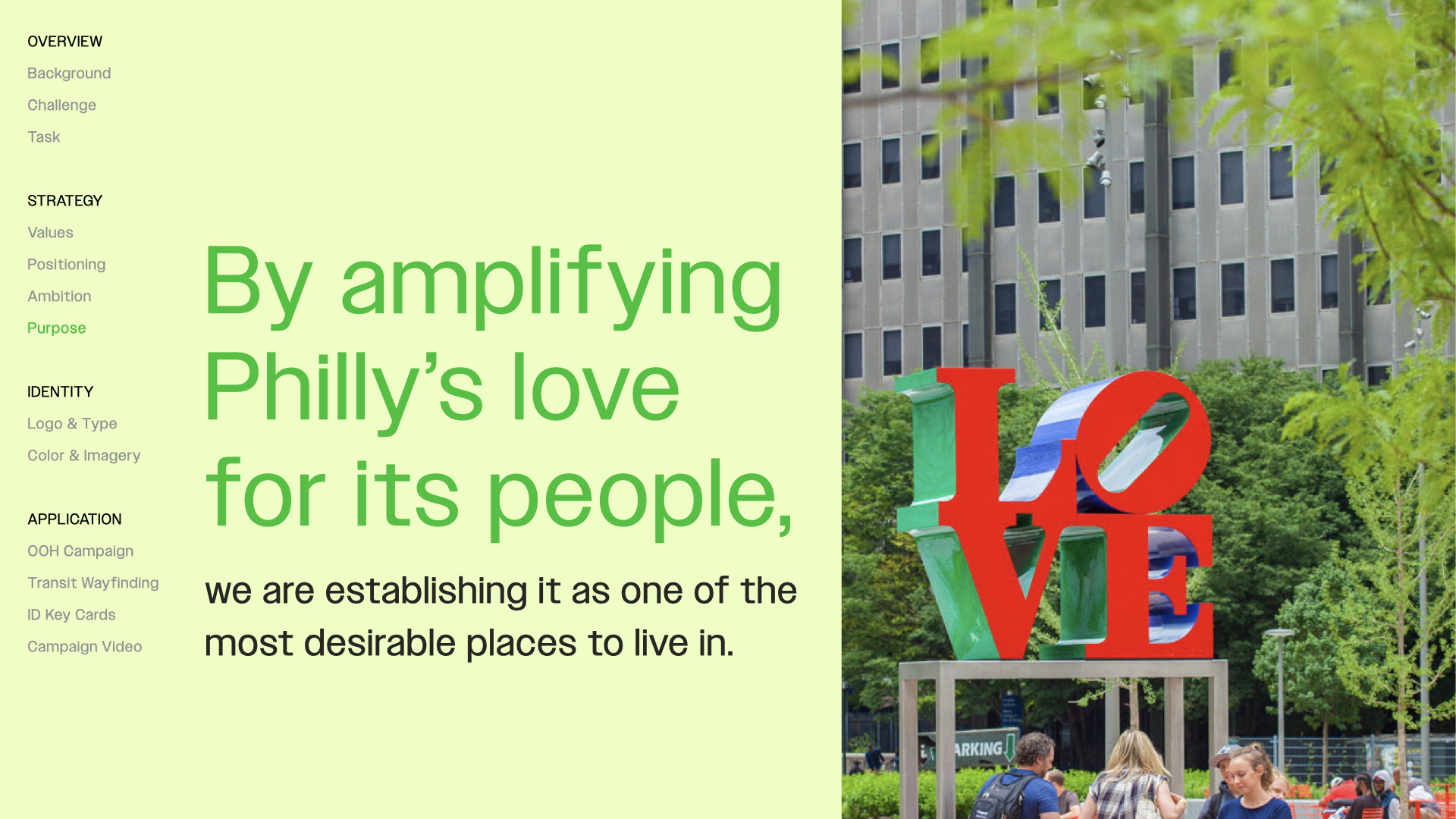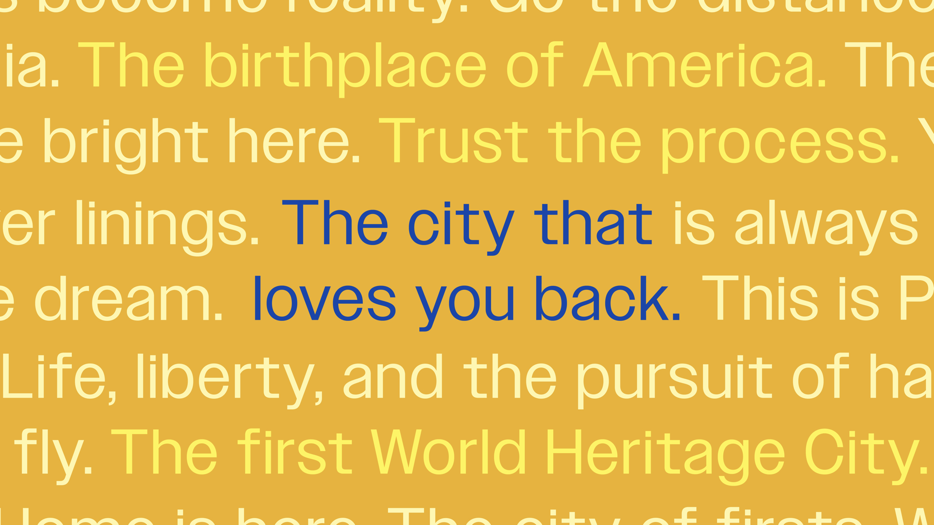 The birthplace of America and the sixth largest city in the country—it’s known for its exceptional history, rich culture, architectural beauty, esteemed institutions, incredible walkability, and most importantly, passionate people. I aimed to answer the following question: how can we rebrand the city in a way that more accurately reflects Philly’s true character?