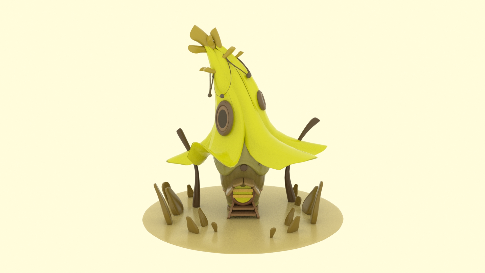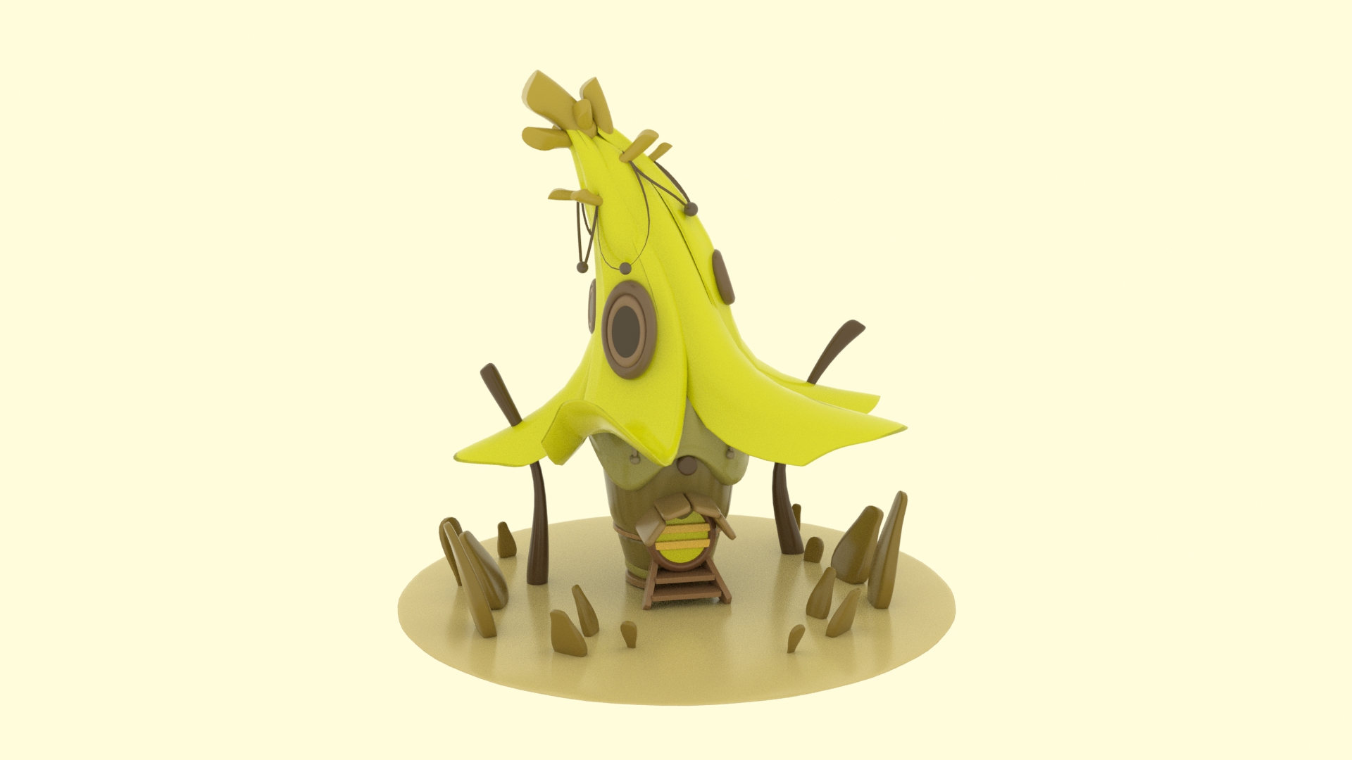 This environment modeling project features a playful, organic banana-shaped house brought to life with vibrant colors and details. I had a lot of fun exploring the unique curves and textures, combining creativity with technical skills to create a whimsical, eye-catching design.