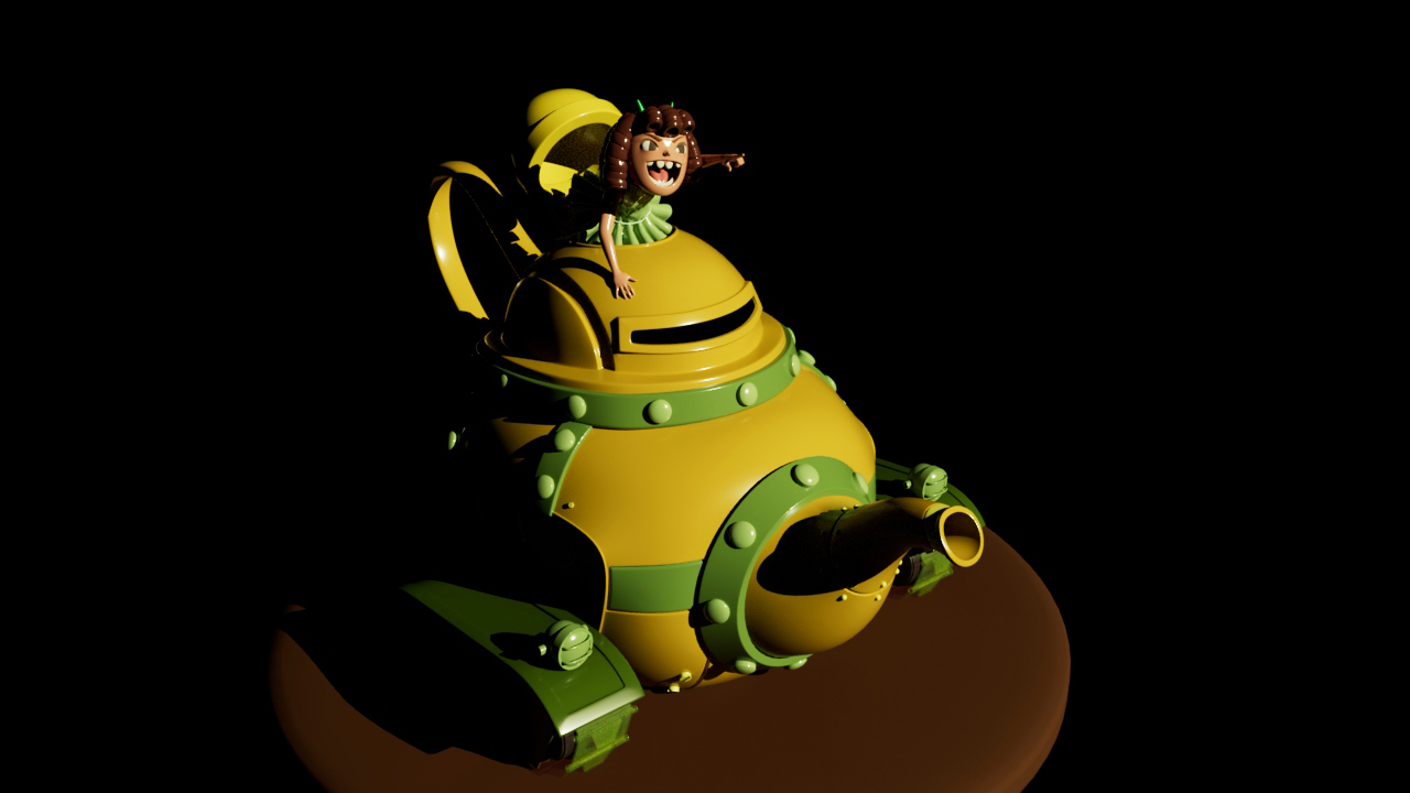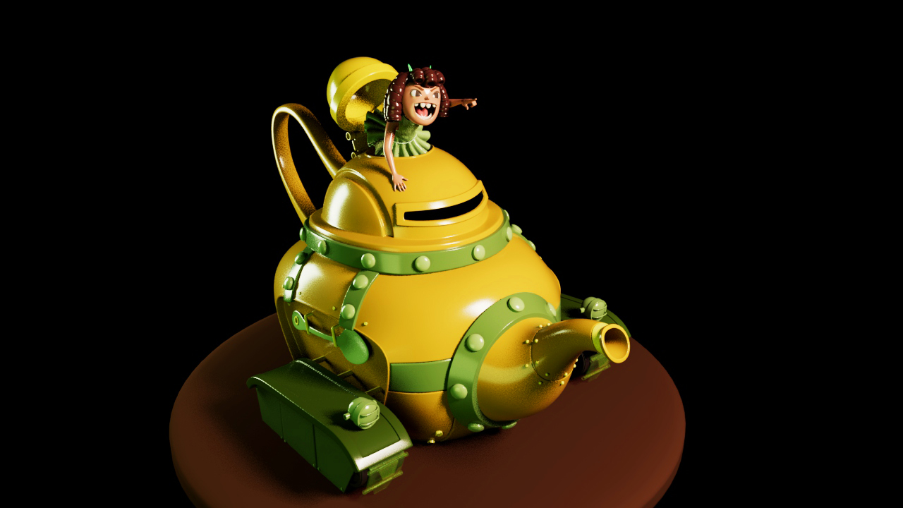 This whimsical project features a teapot-inspired vehicle driven by a playful elf. Rendered in Autodesk Maya, I experimented with area lights for soft highlights, directional lights for dramatic shadows, and skydome lighting for ambient reflections, bringing the character and design to life.