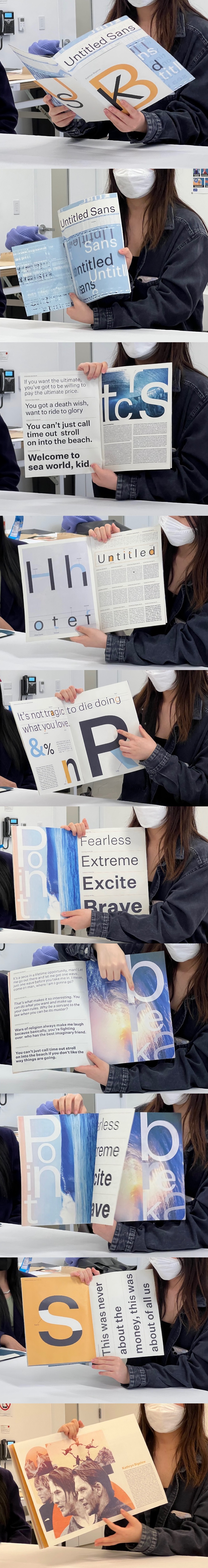 Graduates Select DepartmentBrand Design & StrategyCreative DirectionEntertainment DesignFilmFine ArtFurniture, Lighting and FixturesGraduate ArtGraduate FilmGraduate Graphic DesignGraduate Interaction DesignGraduate Spatial Experience DesignGraphic DesignIllustrationIndustrial DesignInteraction DesignMedia Design PracticesPhotography and ImagingProduct DesignSpatial Experience DesignTransportation DesignTransportation Systems and Design Back to Projects Chelsie (Dian) Lin BFA in Graphic Design — Graphic Design Course: GPRT-153 Type 2: Structure Faculty: Cheri Gray Untitled Sans Specimen Book A book introduce the typeface Untitle Sans presents the director for Type2 class. Learning Outcomes: Font typography, image typography, font learning, Kerning, alignment, book design, etc. Image Image