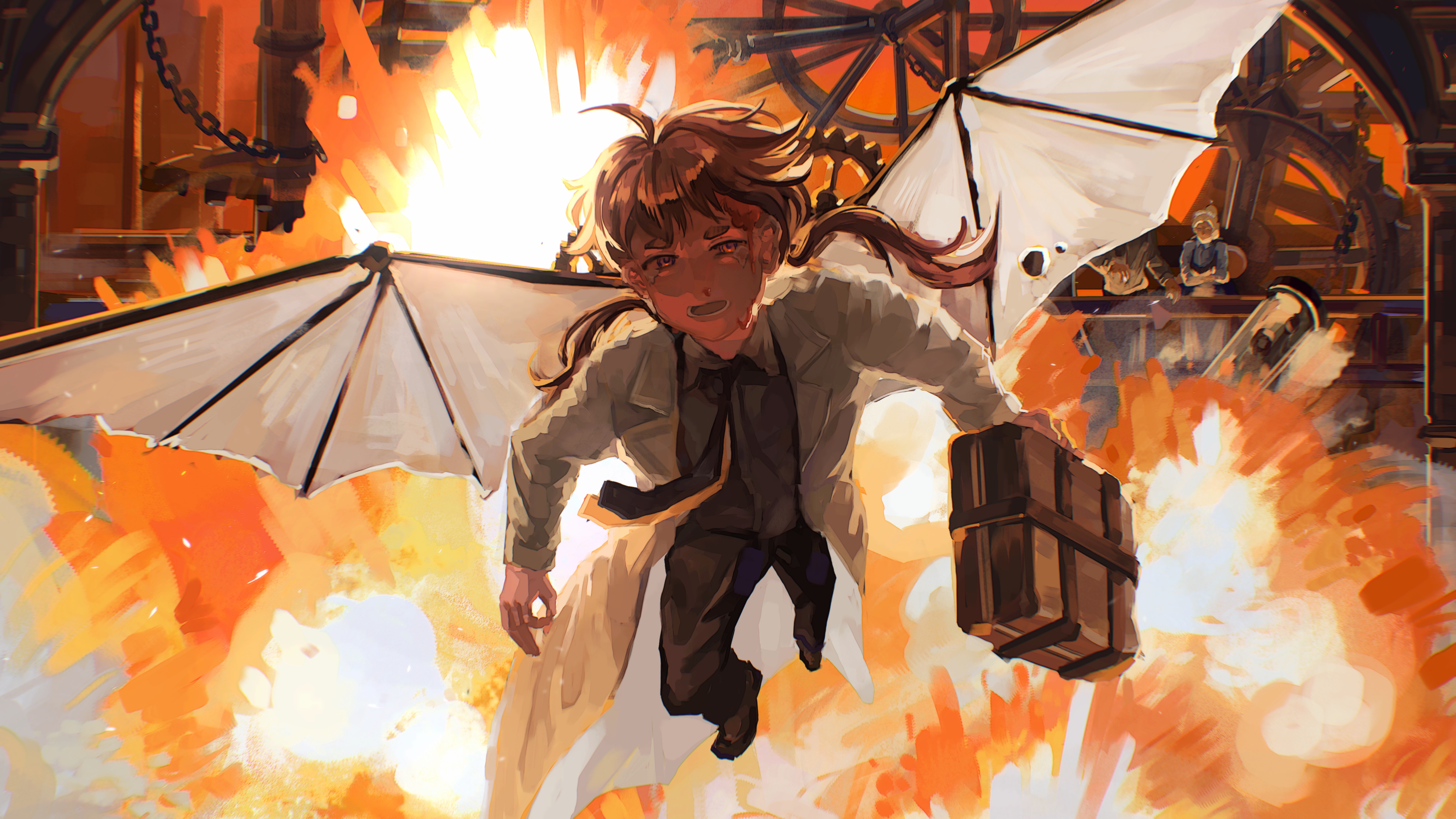 A story beat illustration I made aim to narrate Tourbillion, a full original story within 3 images. Tourbillion, a young genius girl, discovered her parent have been conducting immoral human experiments for mechanical wings. She decided to blow up the laboratory and escape from the steam city.
