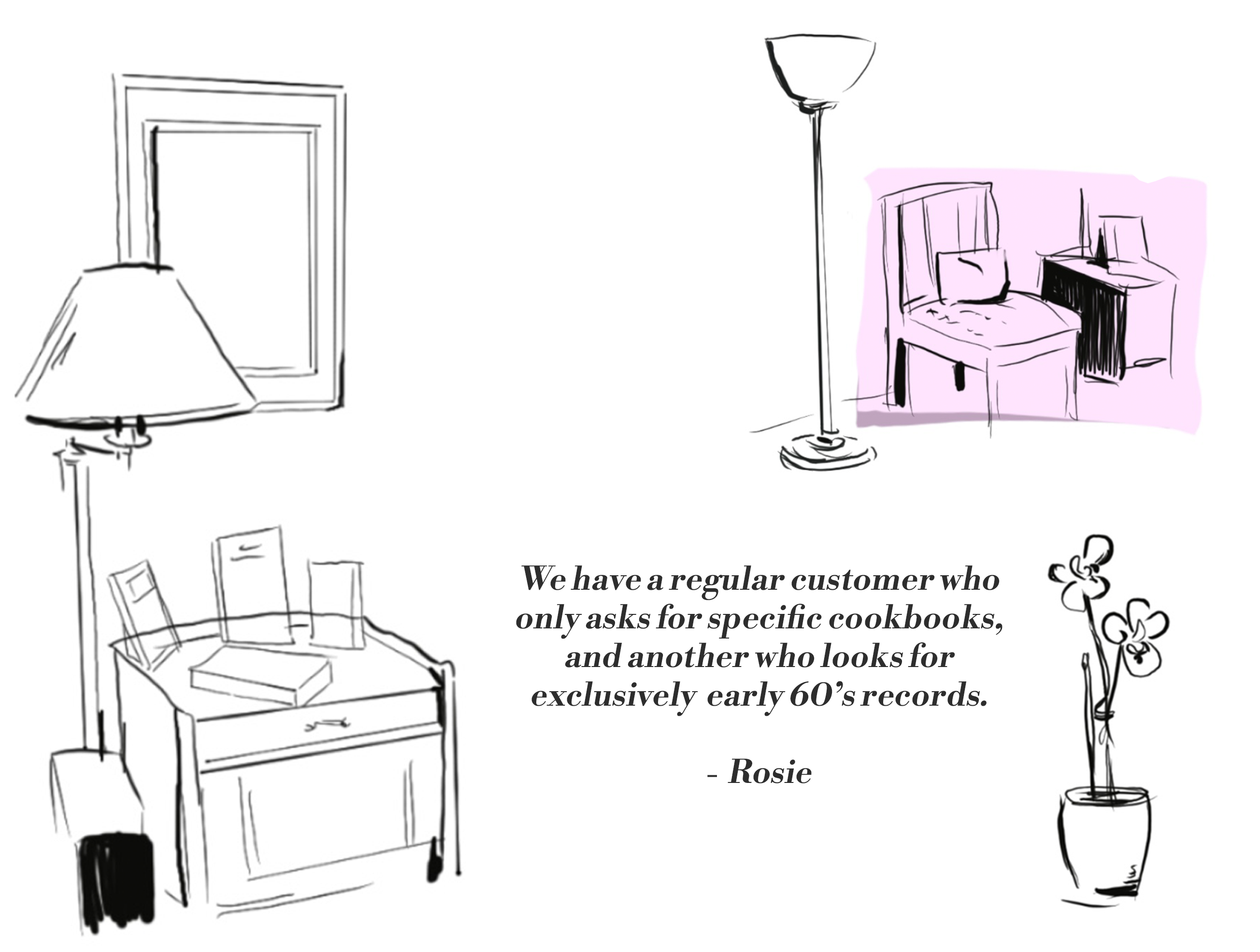 The following is a few pieces from my project Books, centering on showcasing 10 independent bookstores located throughout Los Angeles. It's a series of vibrant illustrations seeks to capture the unique character of each location. Accompanied by depictions of the distinctive items and interiors found within.
