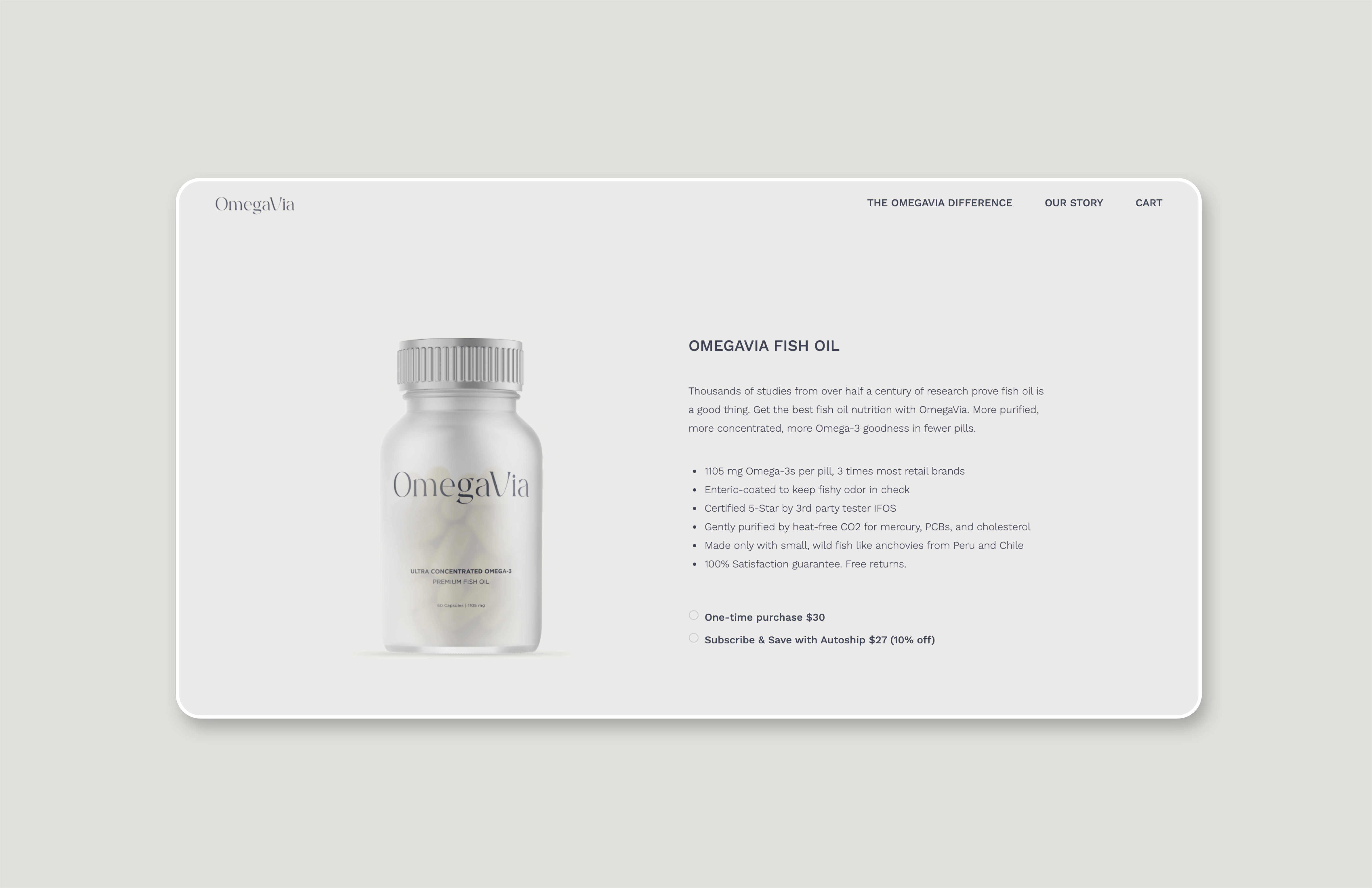 Website and packaging redesign for OmegaVia, a fish oil supplement company.