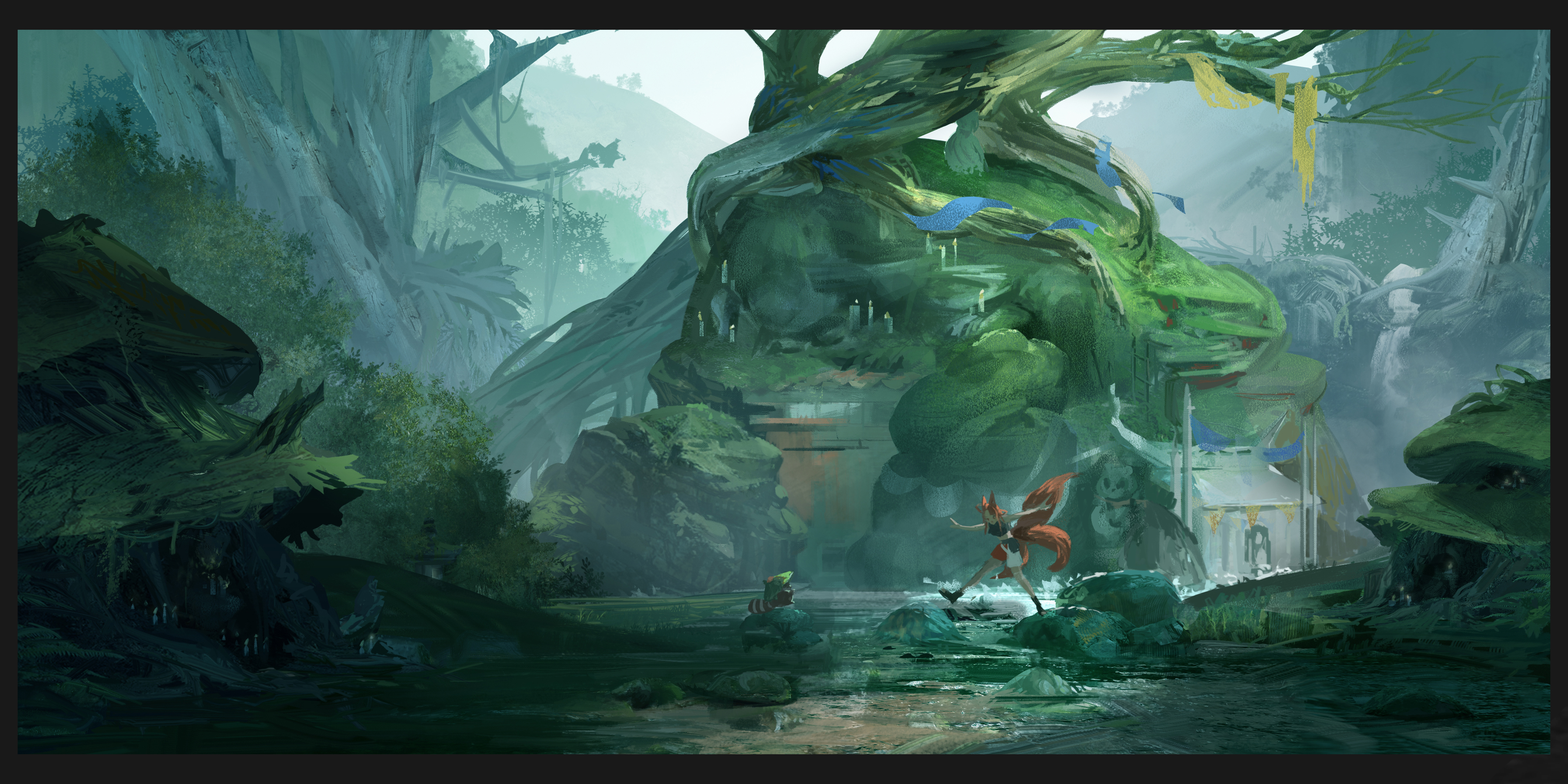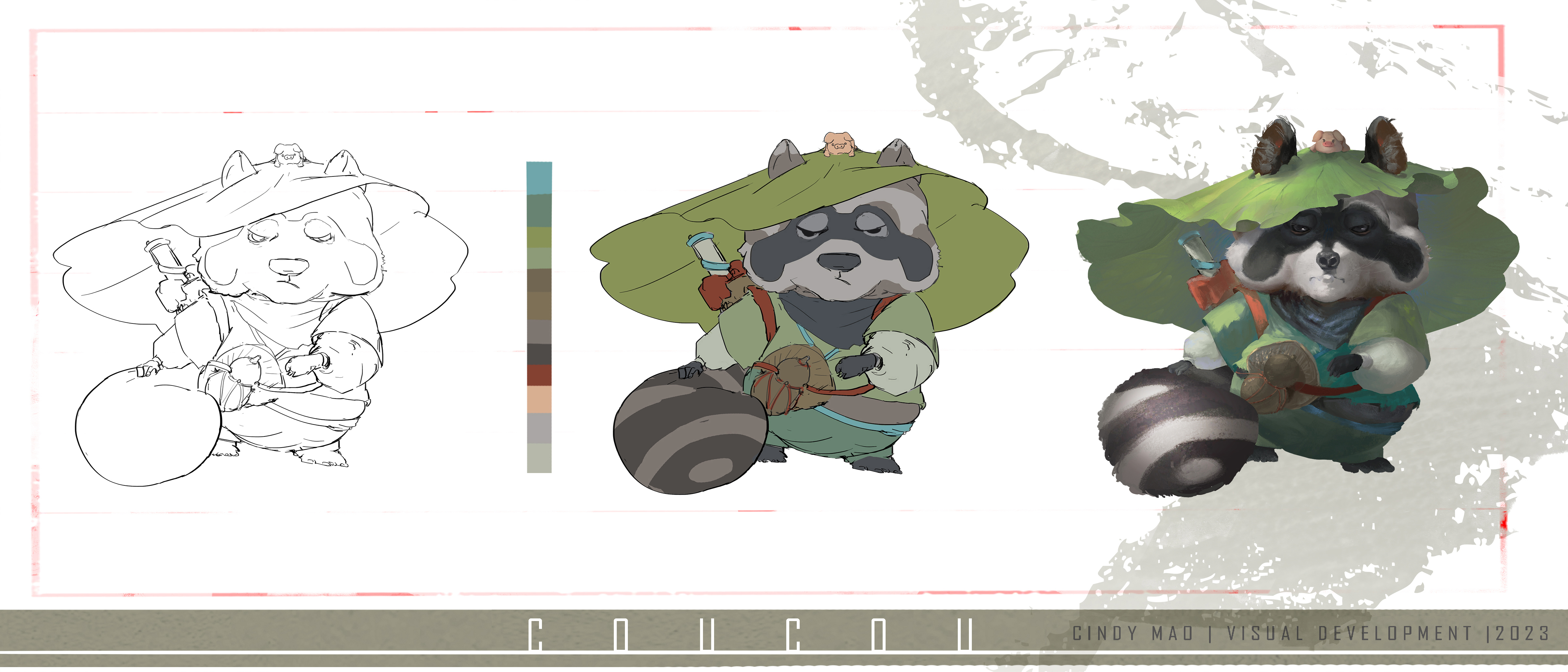 To complete this mission, she leaves her home for the very first time and travels across the land with her little raccoon companion.
