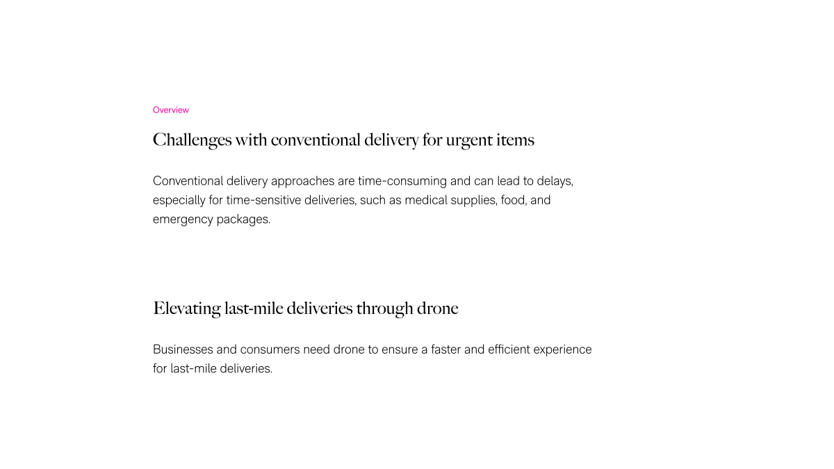 I created a drone delivery app to offer unwavering support to individuals in need, anytime and anywhere. Recognizing traditional delivery limitations, including slow pace and potential delays in emergencies like medical supplies, I was inspired to innovate. This led to the concept of using drones for last-mile deliveries. Through user research, I identified pain points and uncovered opportunities to guide the app's features, ensuring better service during critical moments.