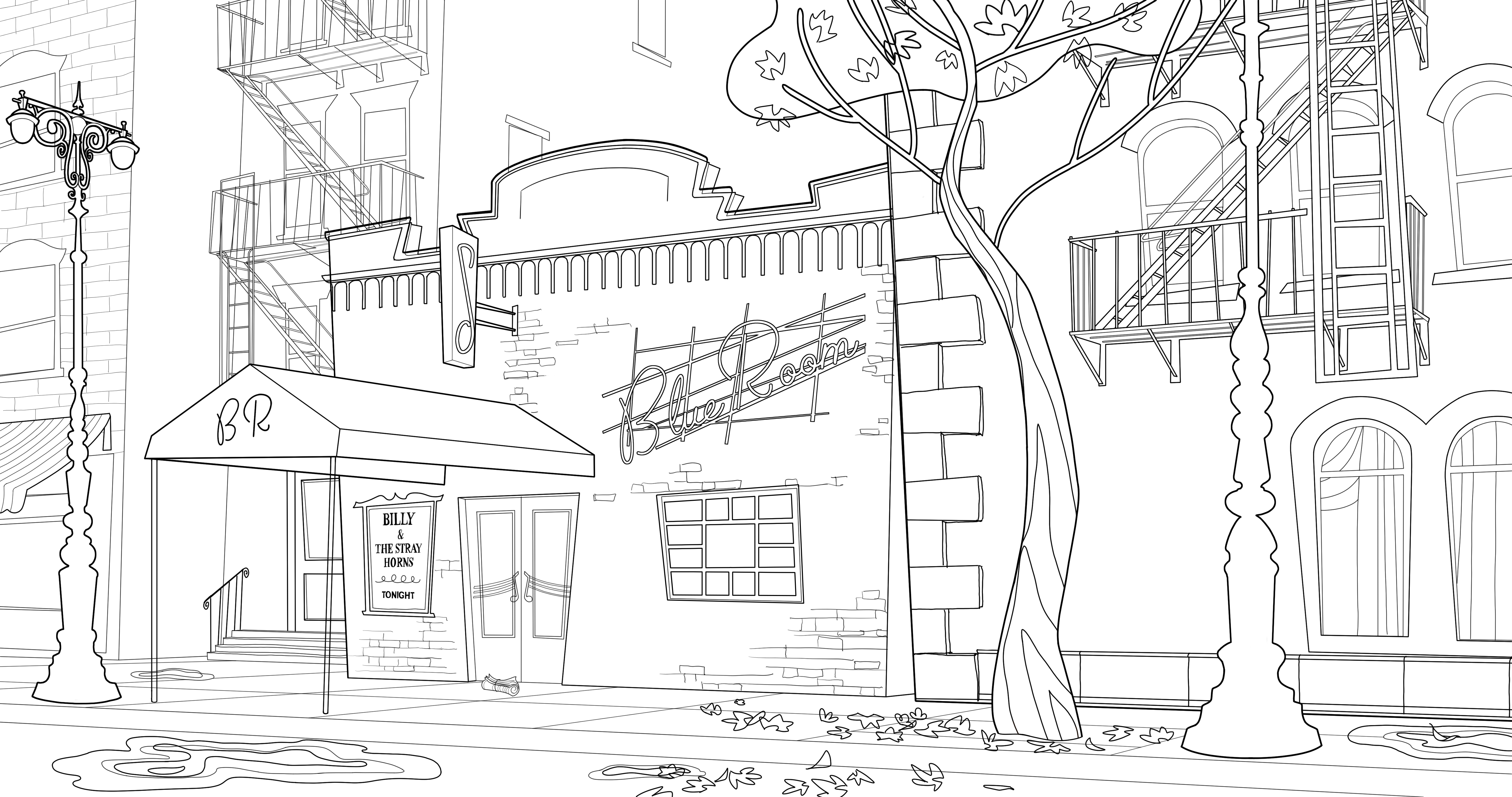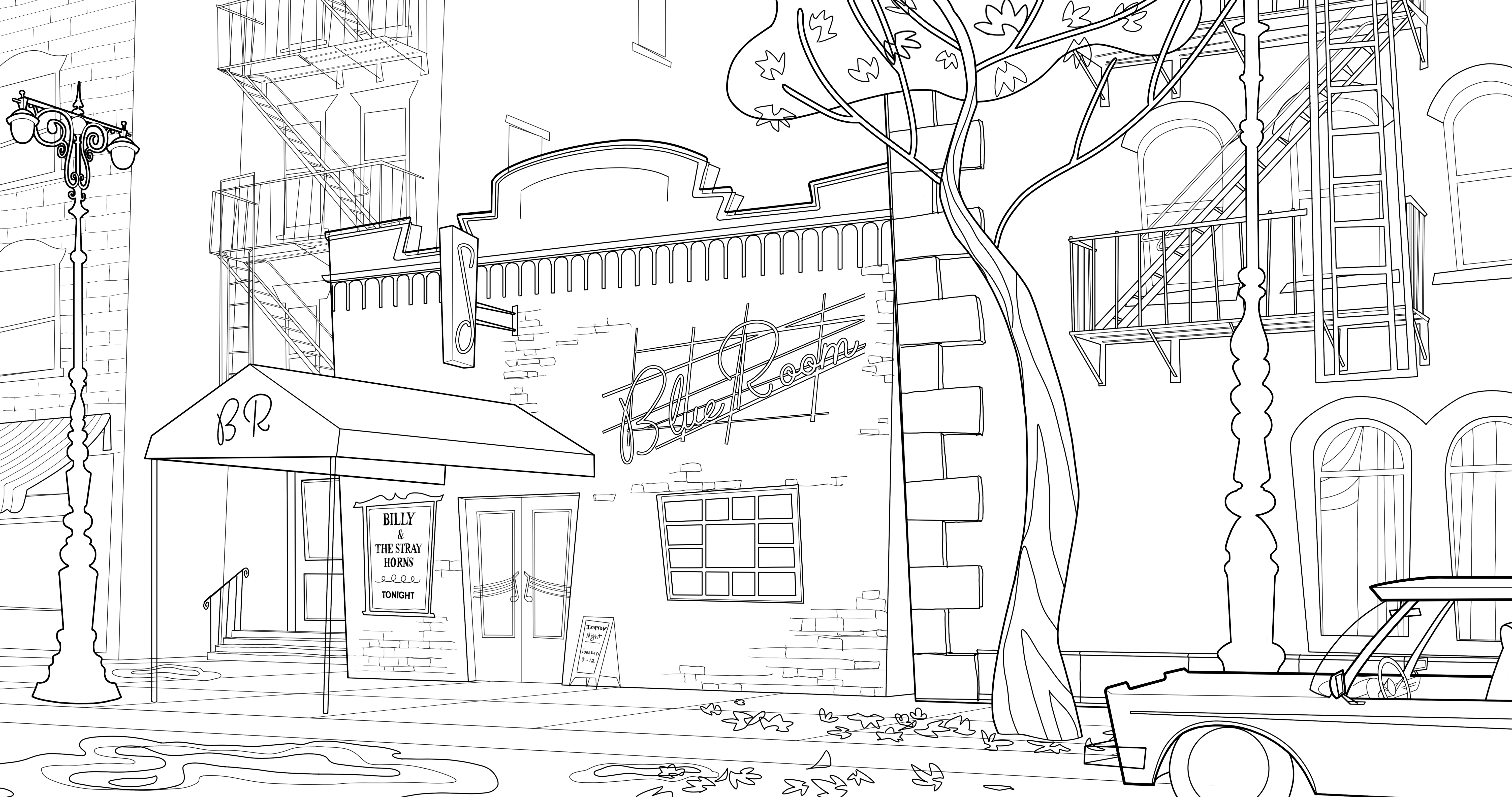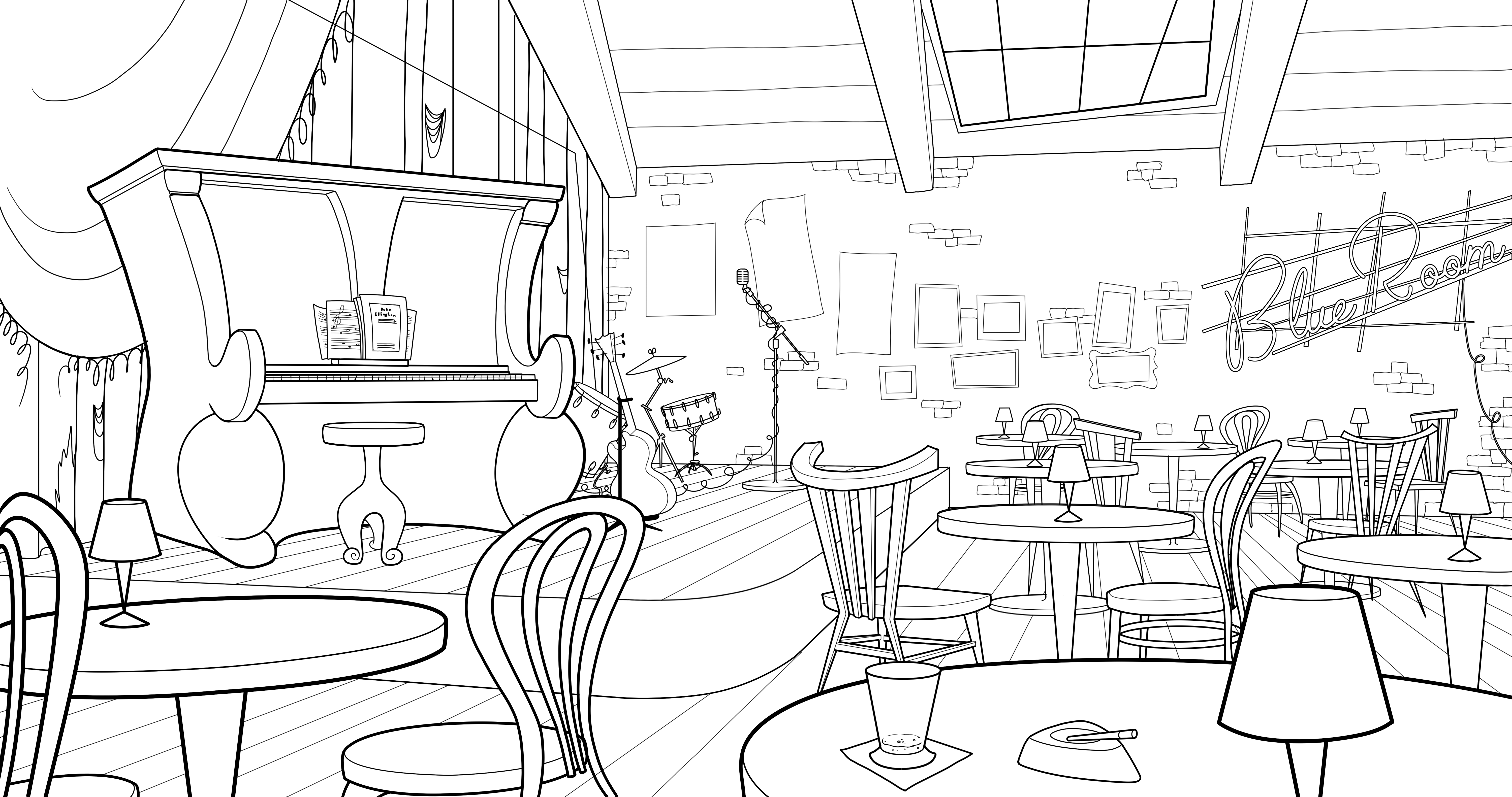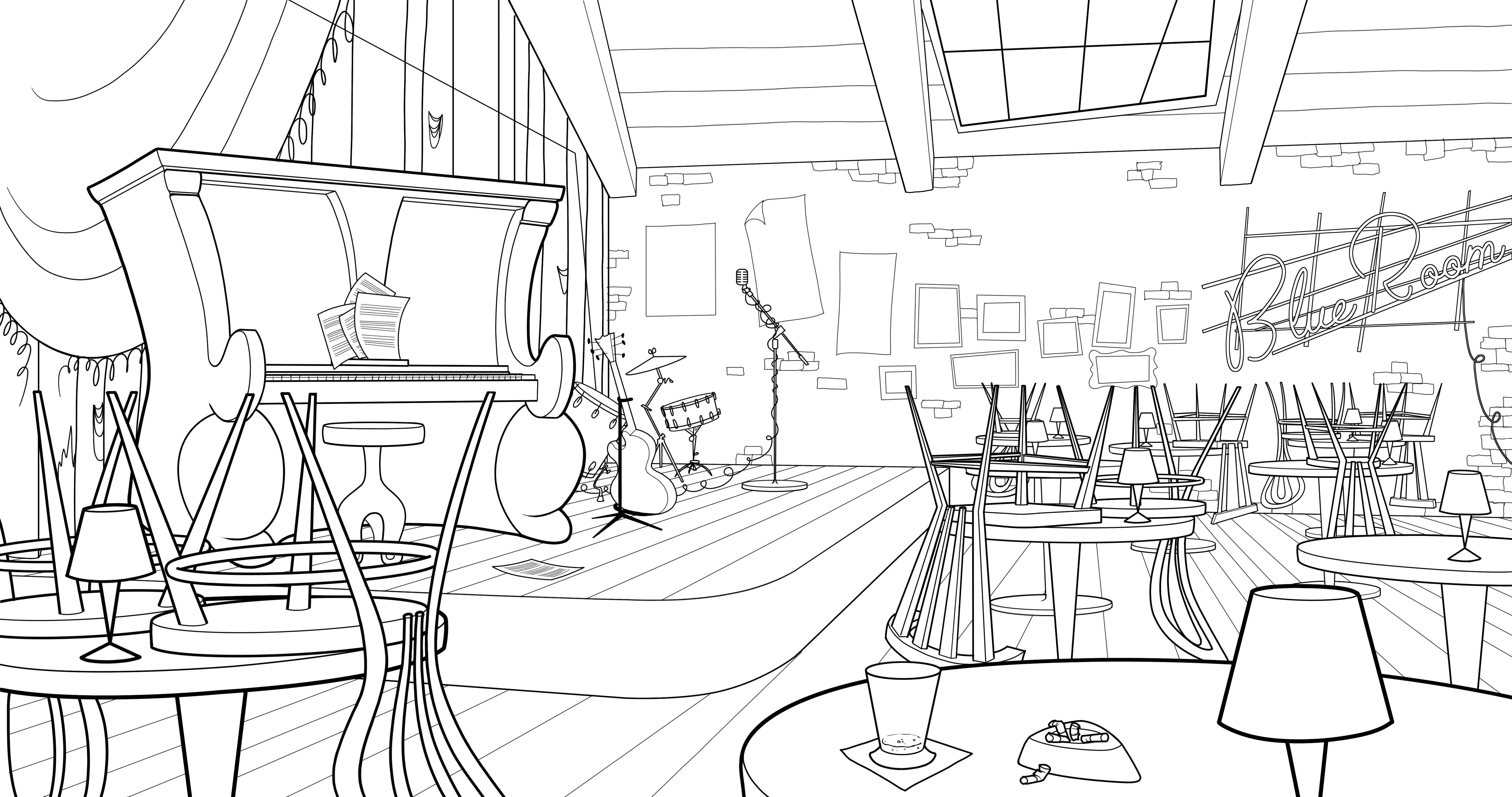 Inspired by the environments of classic animation, I created background paintings and layout drawings for a fictional jazz club called Blue Room, which is a part of my original story called "Duke & Ellington: Band Together."
