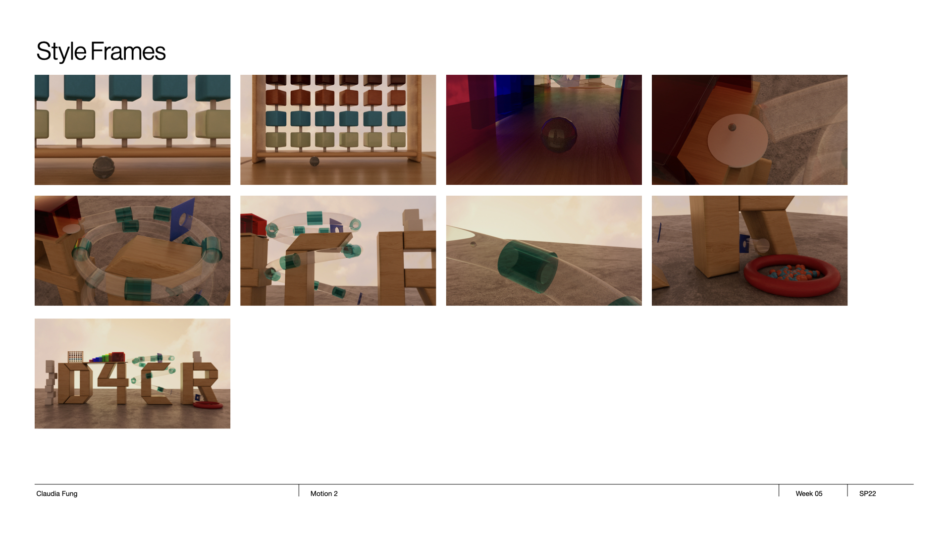 In this project, I have learned to utilize dynamics in Cinema4D, the pacing of animation, as well as the use of lighting, and choosing soundtracks. I was also introduced to editing tools in Premiere and After Effects to fine-tune rendered images. Through using rendering engines, I have also learned to optimize rendering speed with suitable settings and preparations before rendering.