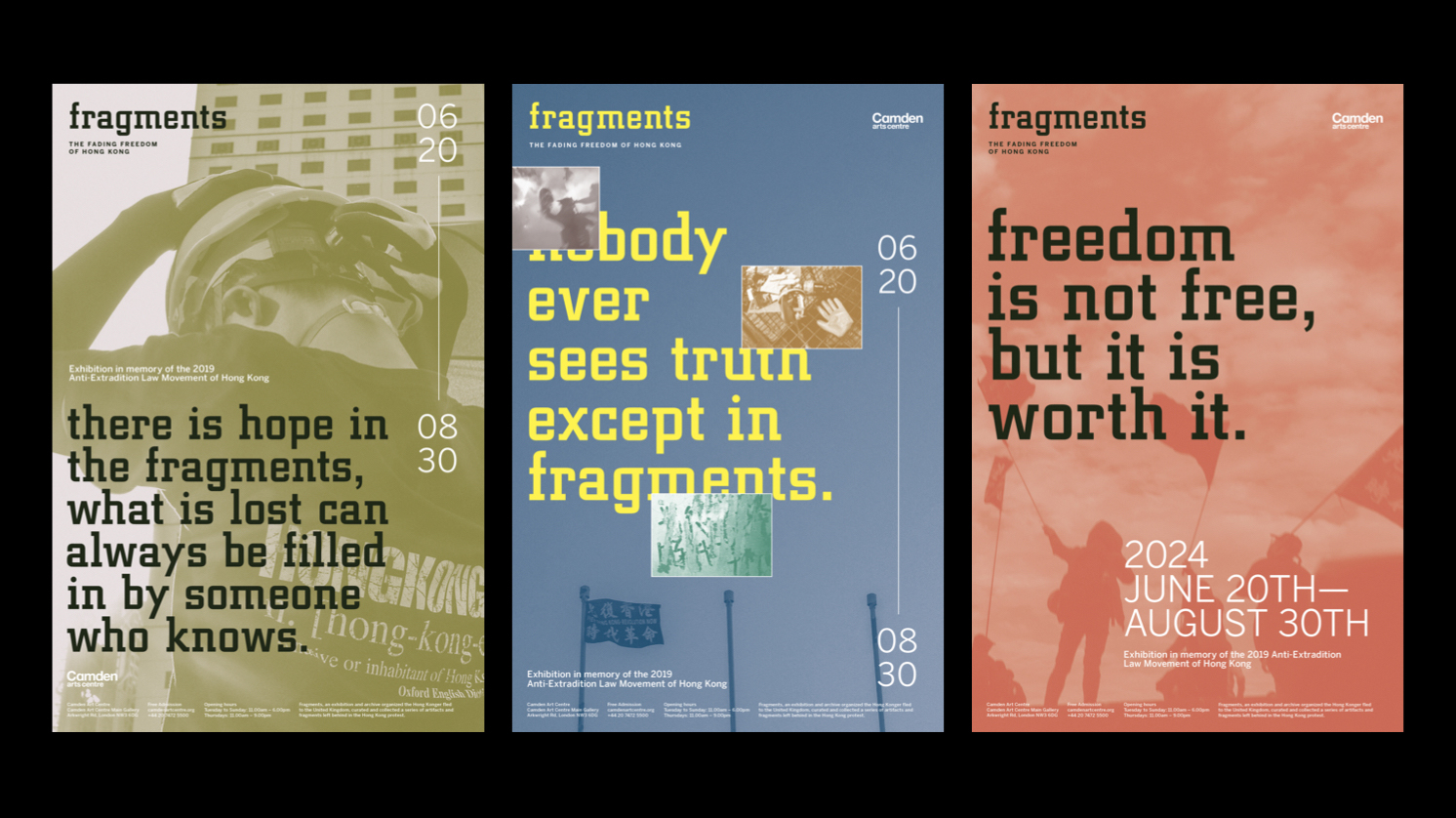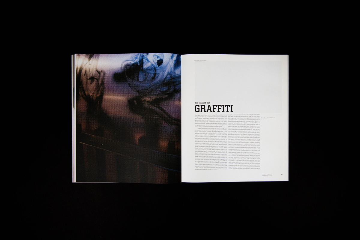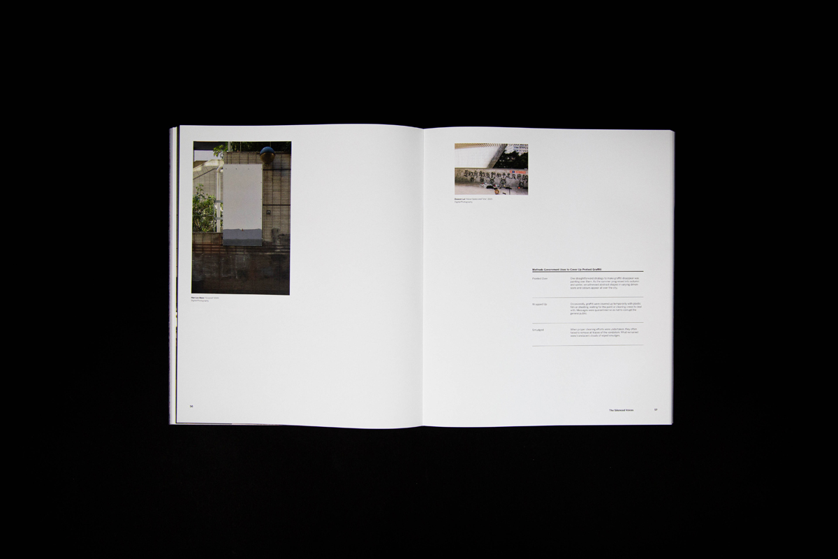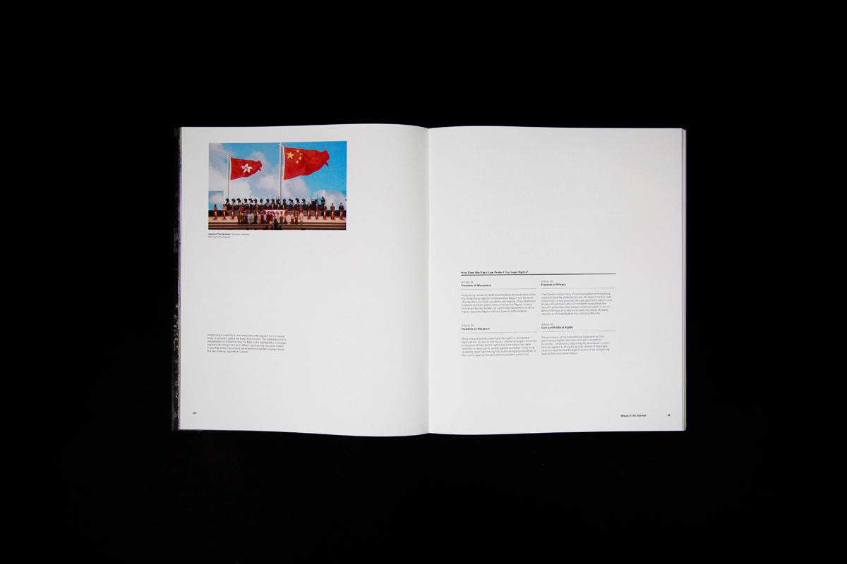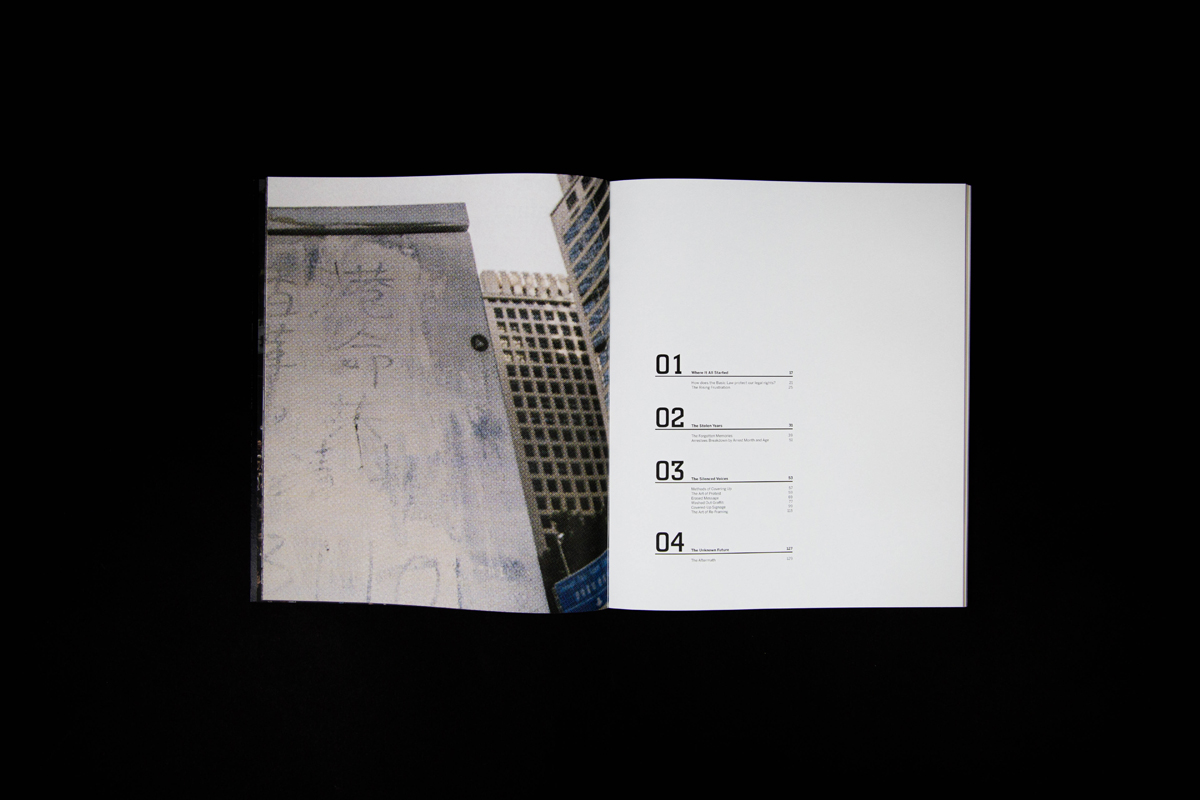 Fragments symbolize the fragmented memories, signs of protest, and division in society happening in Hong Kong over the past ten years. It also means looking into the “truth” from different angles, connecting the missing pieces, and came to together our own stories as people of Hong Kong. The book has 150 pages in total, printed at Nonstop Printing, and perfect bound was done on my own.