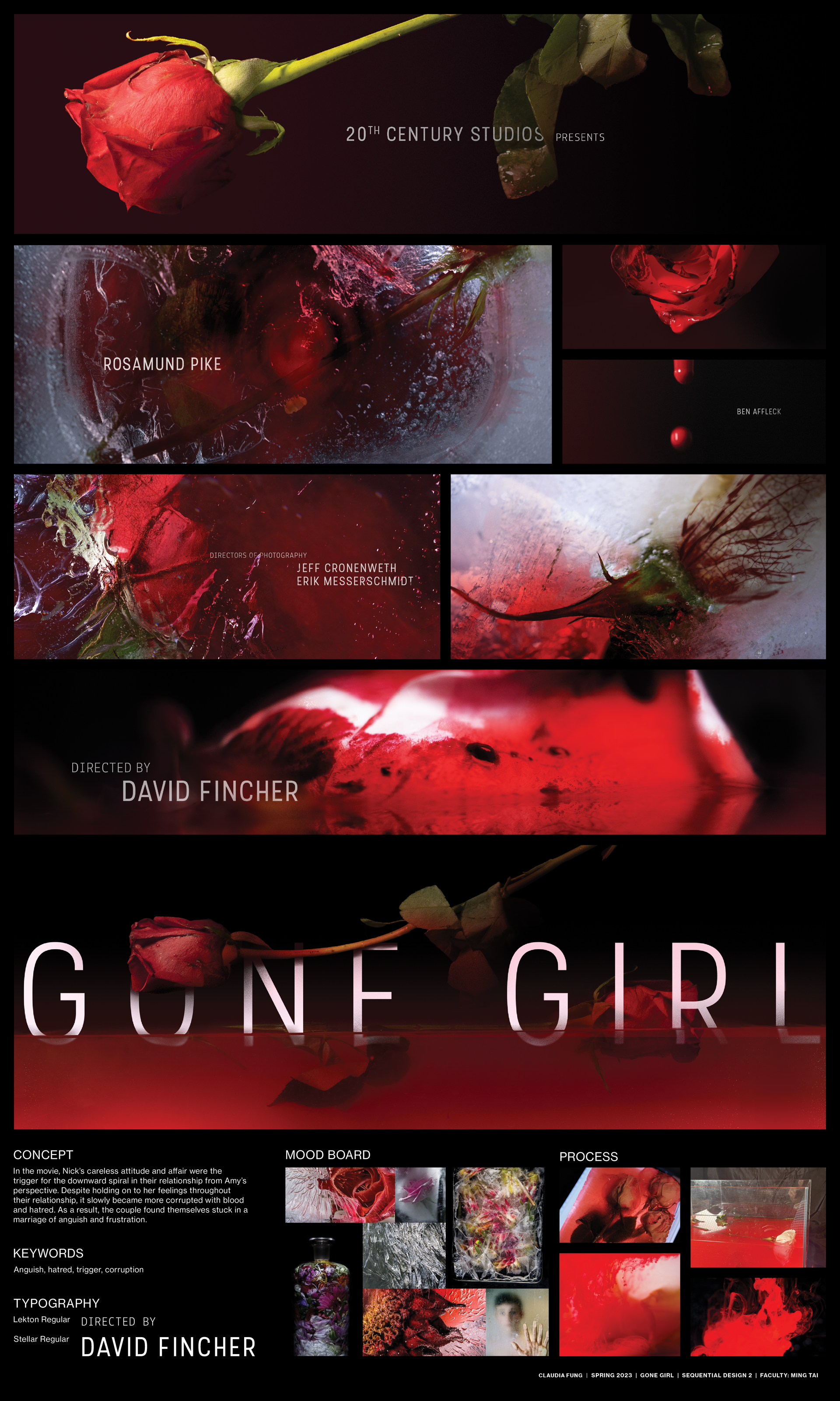 In the movie, Nick's careless attitude and affair were the trigger for the downward spiral in their relationship from Amy's perspective. Despite holding on to her feelings throughout their relationship, it slowly became more corrupted with blood and hatred. As a result, the couple found themselves stuck in a marriage of anguish and frustration. The blood breaking the ice symbolizes the moment of breaking the ice and triggering point to the downward spiral of their relationship.