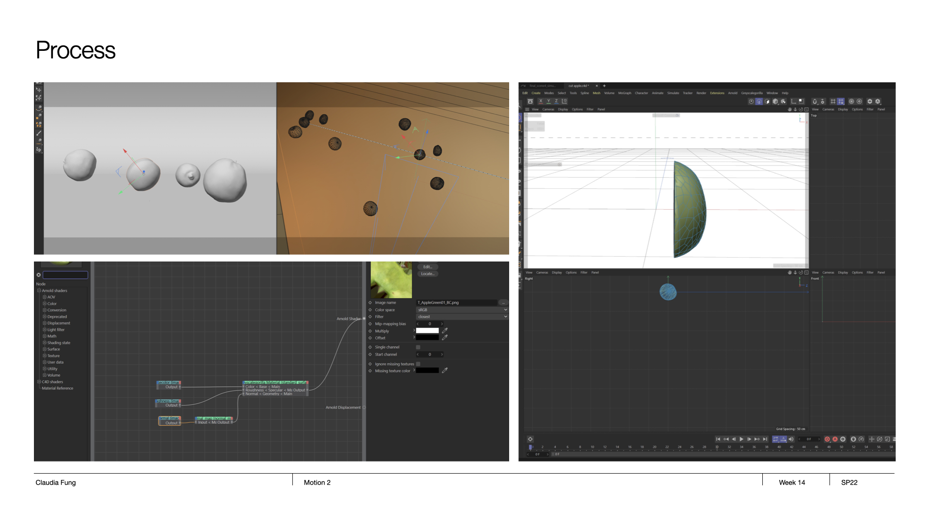 In this project, I have learned Cinema4D more in-depth as well as applied skills from SD1 on camera transitioning to create a seamless watching experience for the audience. I was also able to learn the basics of rendering settings and lighting that opening up opportunities to create more visually compelling pieces in the future. One of the major things I have learned was also to ask a lot of questions and work smartly (files and time management, production pipeline).