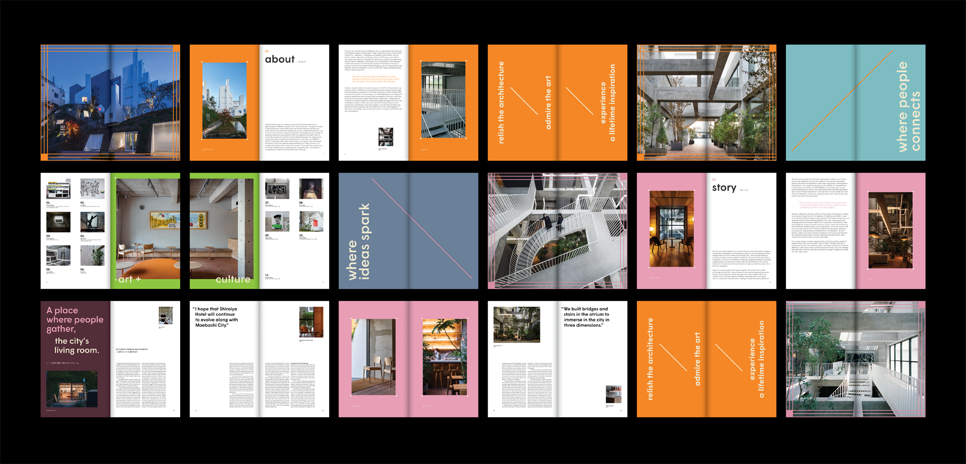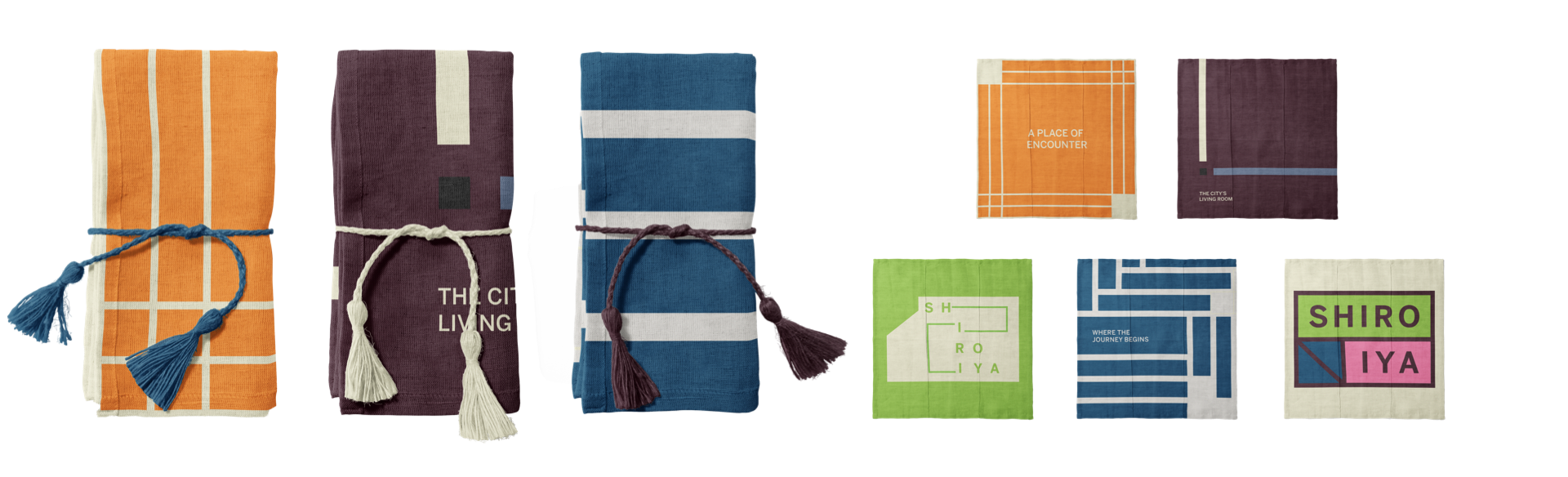 Shiroiya Hotel focuses on creating a diverse and interactive experience to gather people of different cultures in the “City’s Living Room”. The goal of this identity system that will embrace the past, present and future stories in the community, enabling new visions, collaborative projects of art & culture to be shared across guests and locals.
