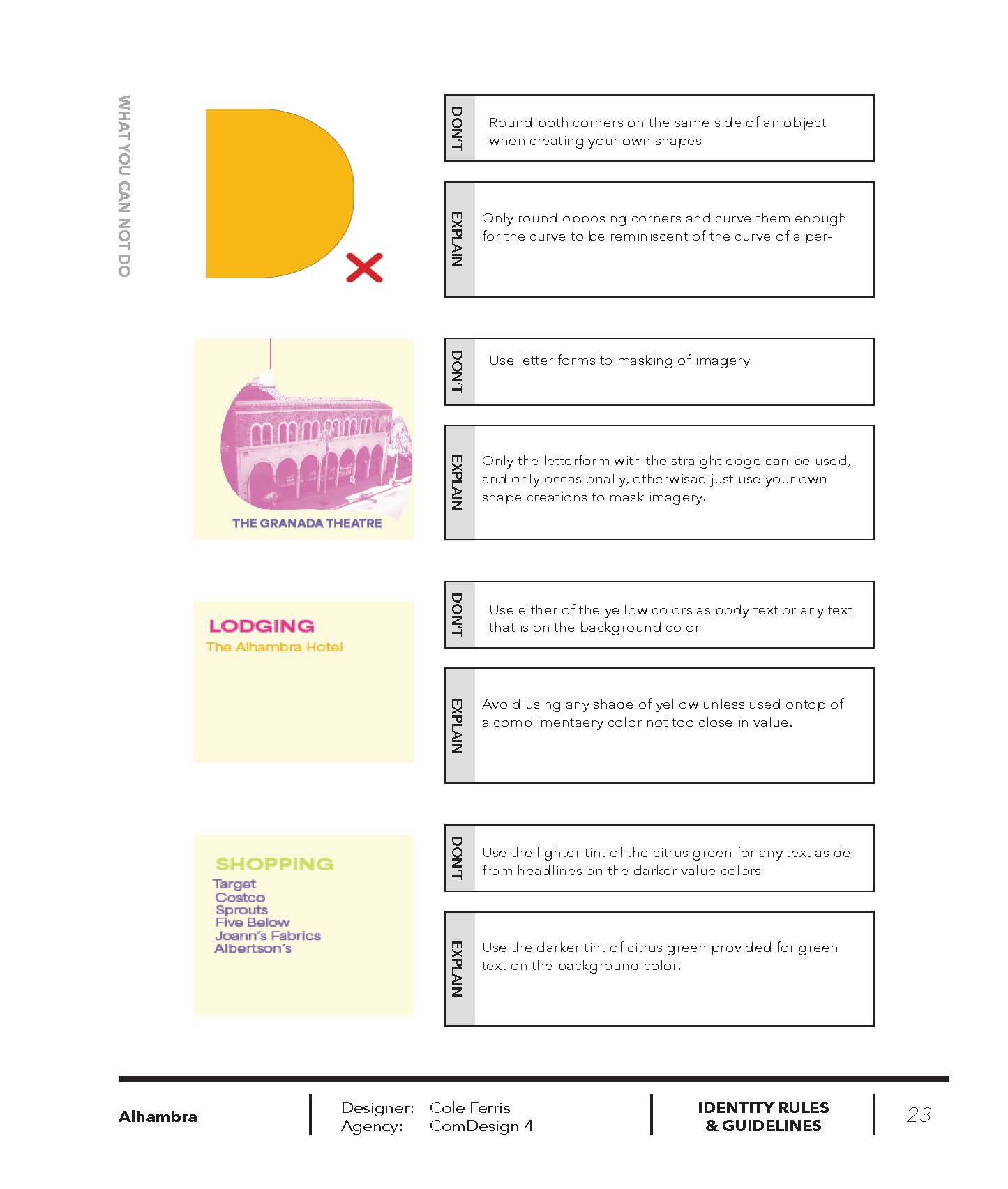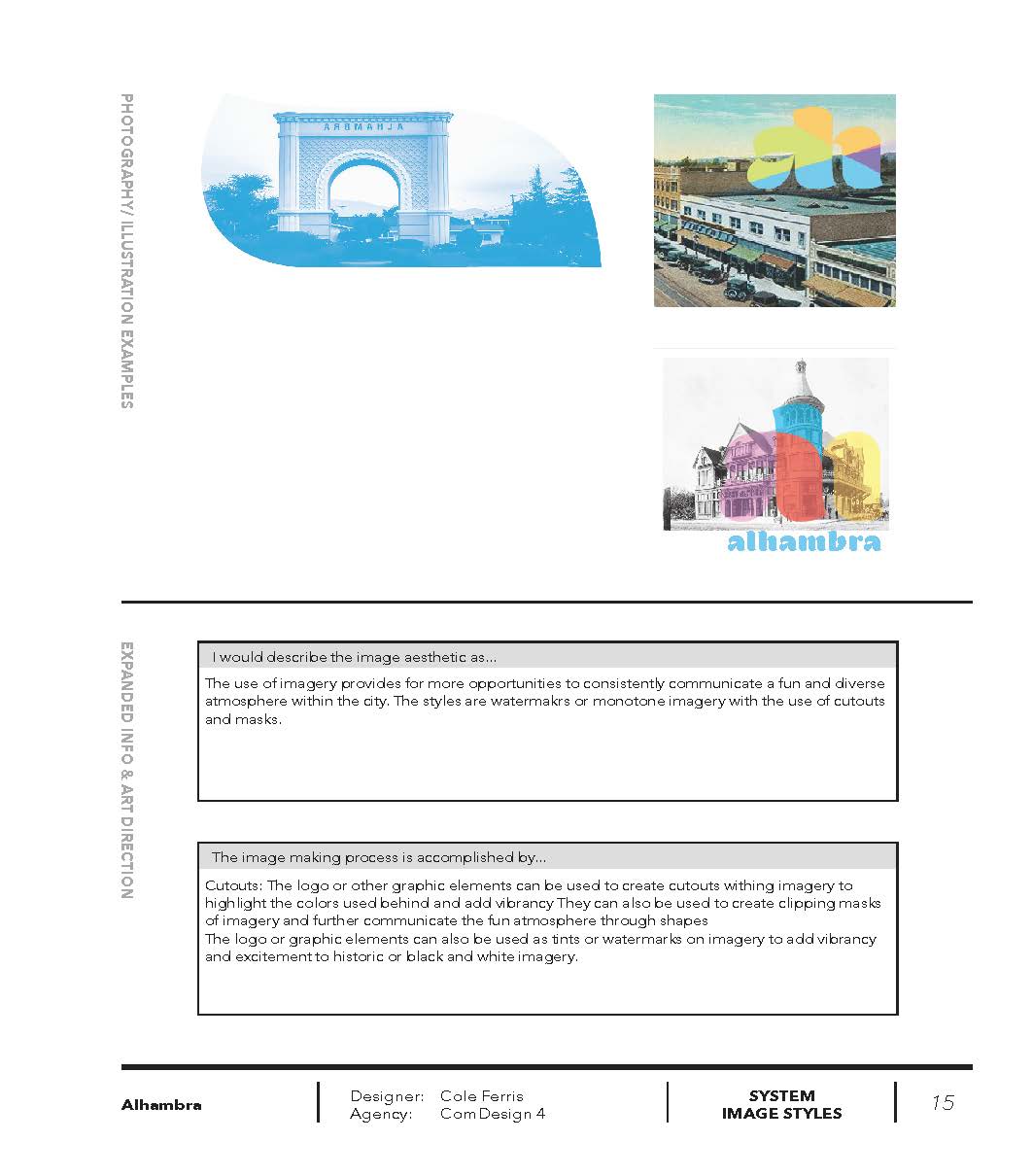 This project is a newspaper design for the city of Alhambra to notify their community of the rebrand of the Alhambra city identity that I created. The front page includes information about the new identity system and opinions from community members, and the back details a map of the main downtown area of Alhambra. The new identity is inspired by the diversity of cultures and styles within Alhambra and aims to modernize the image of the city and communicate the fun and exciting feeling.
