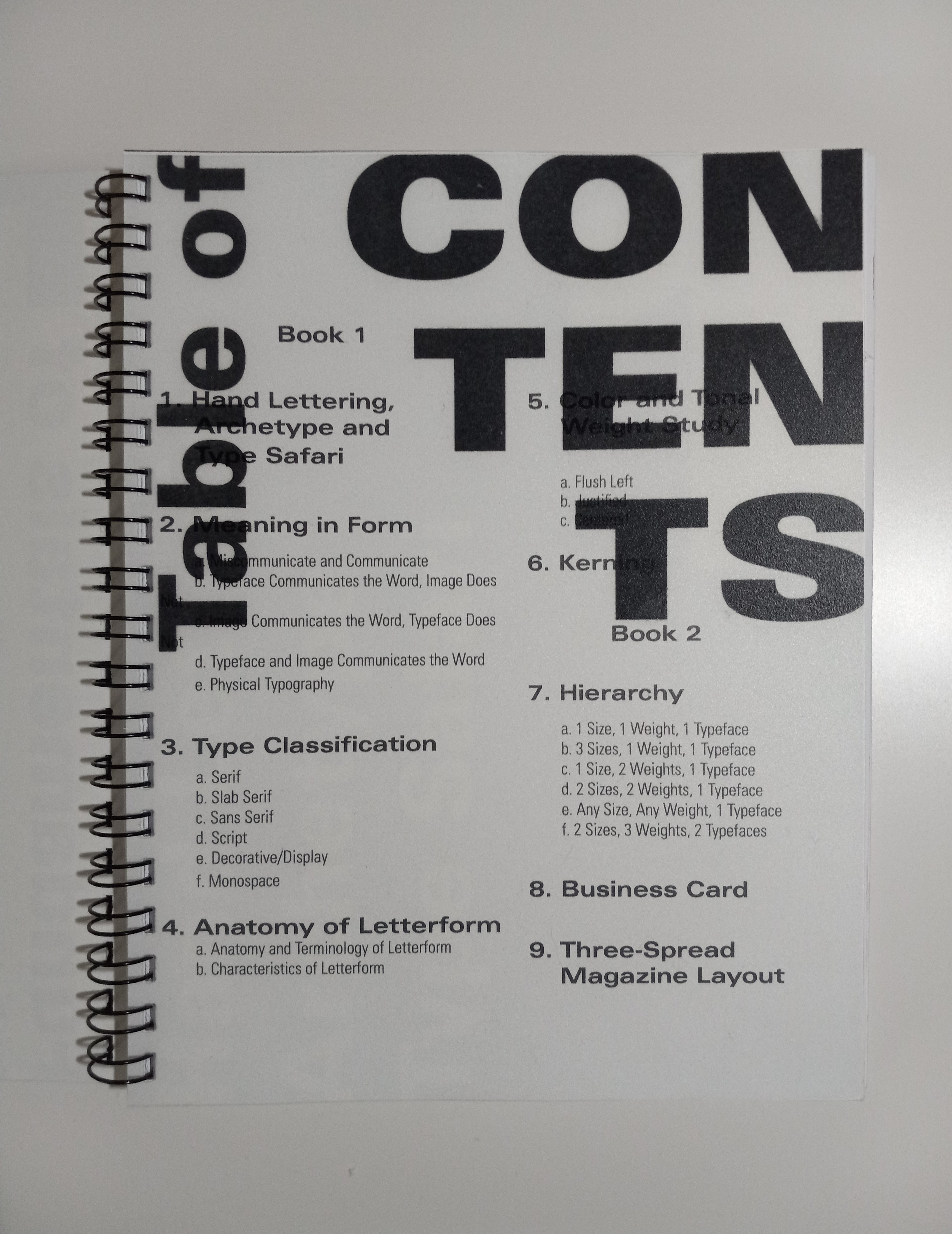 This was my final project for typography 1, a composite final process book of every assignment from the class, designed in a set of two books.
