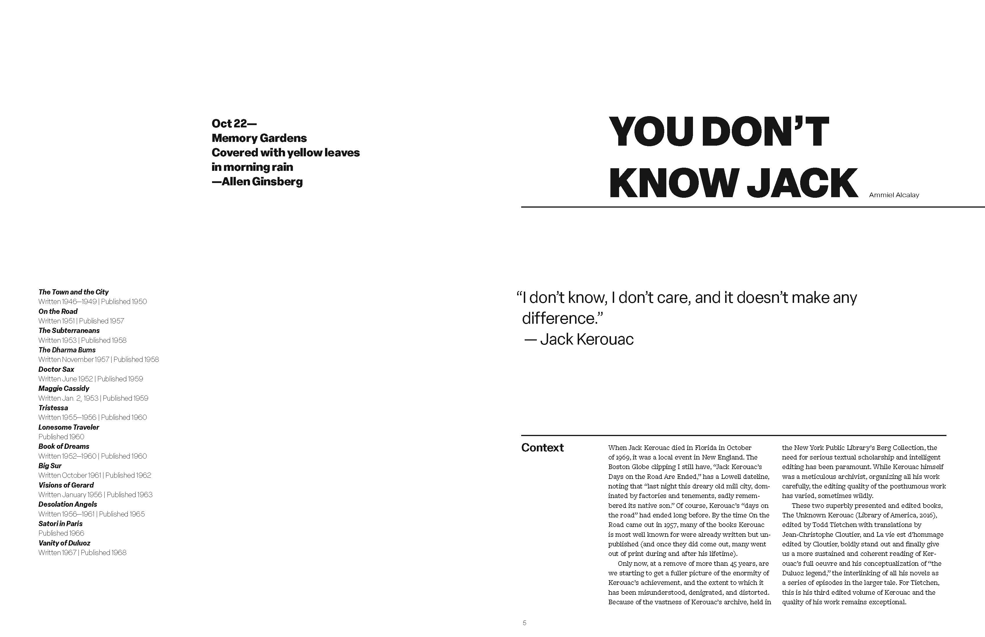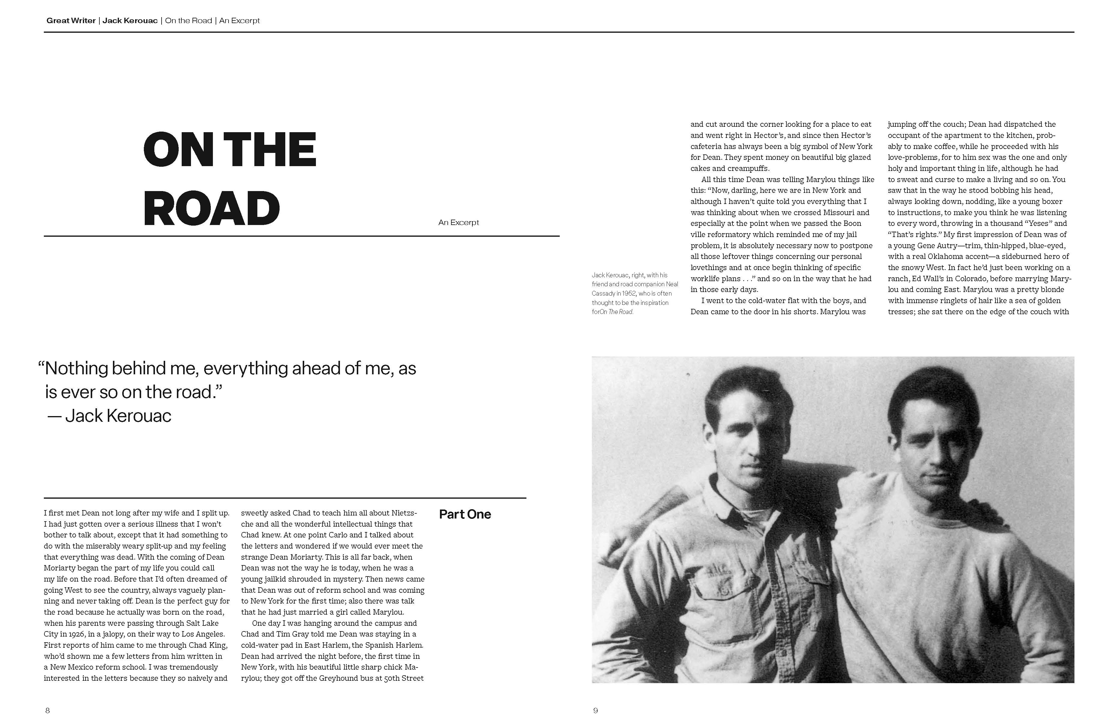 This project was a booklet created for a chosen author from a provided list. I chose Jack Kerouac and after research created this saddle stitched booklet highlighting an article about him and an excerpt of his work.