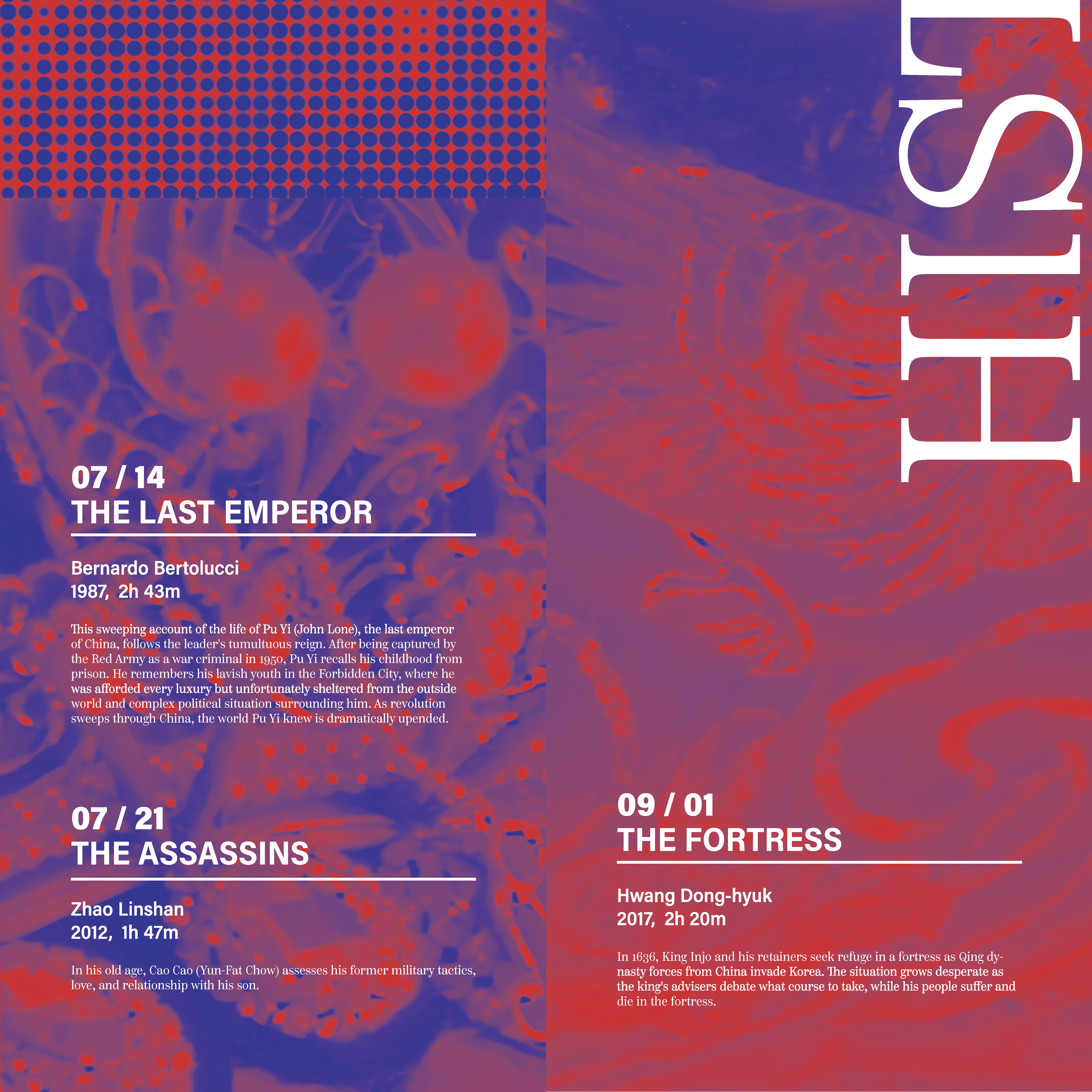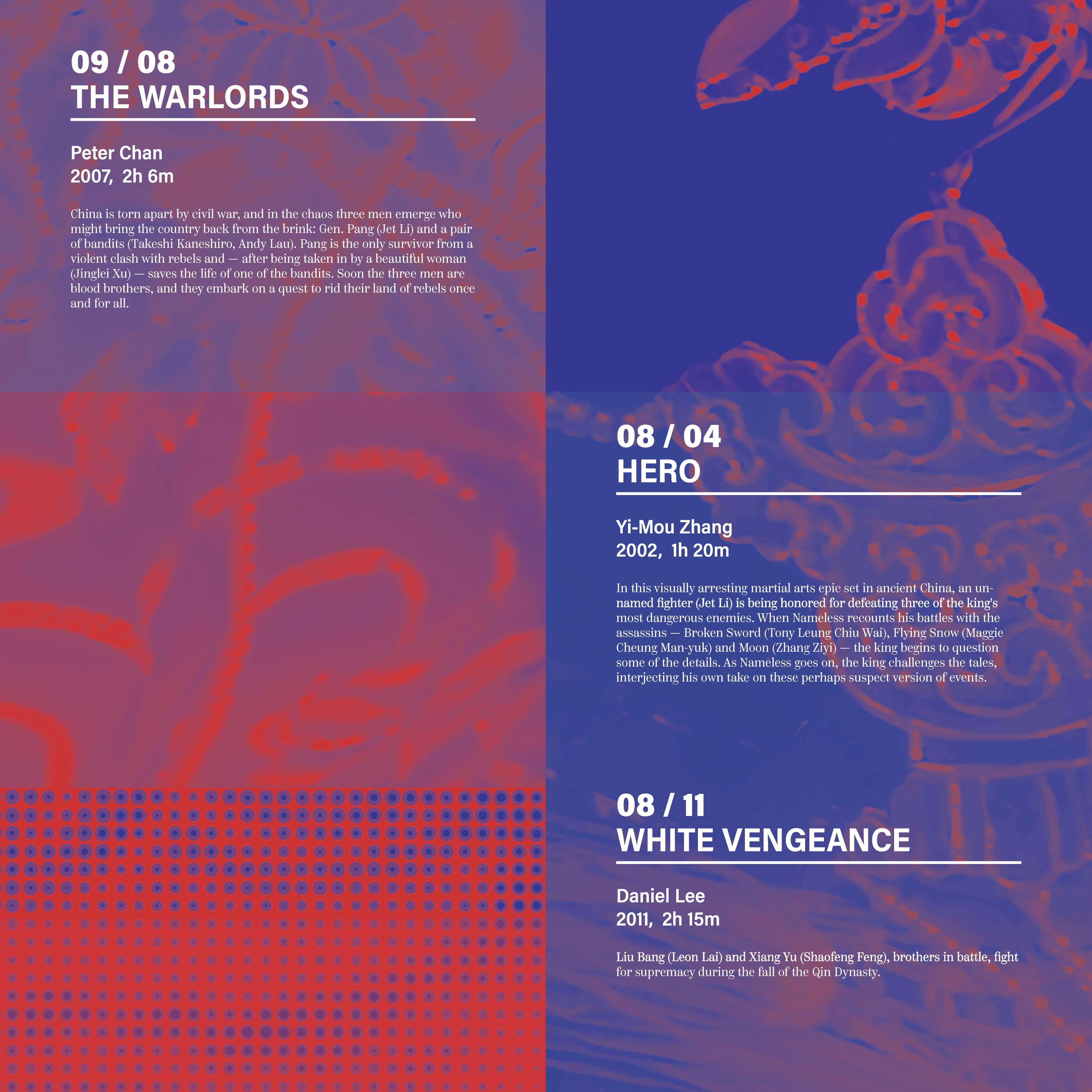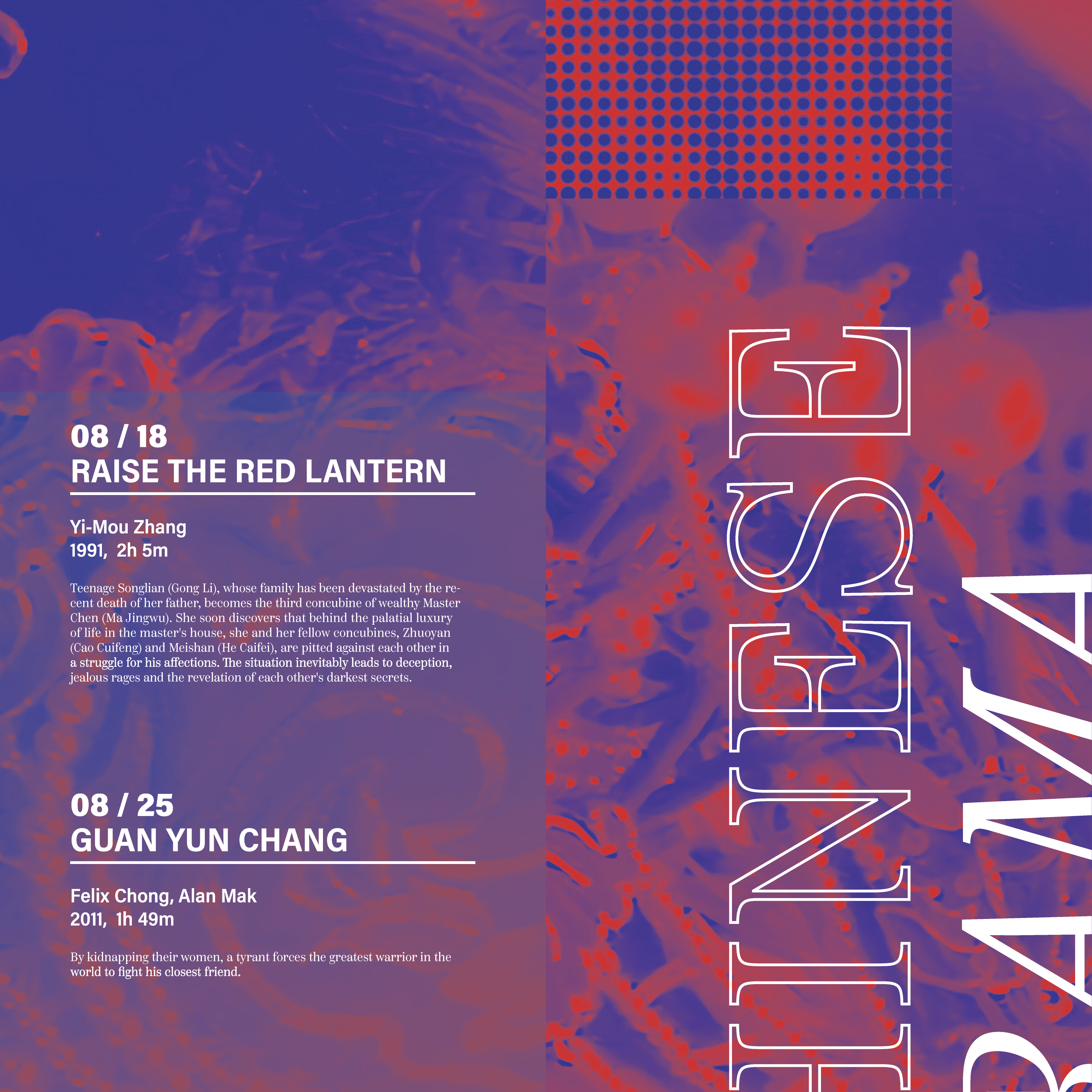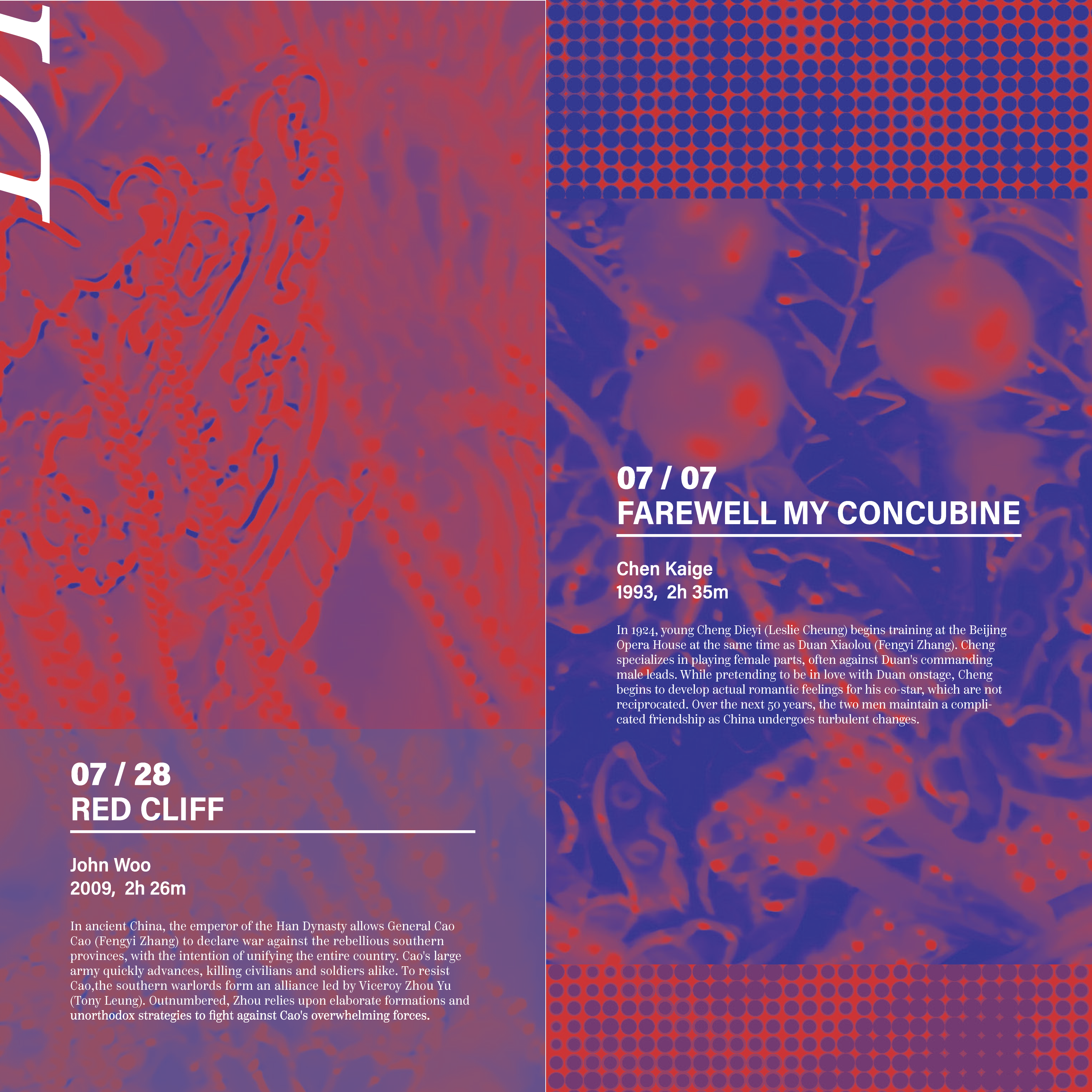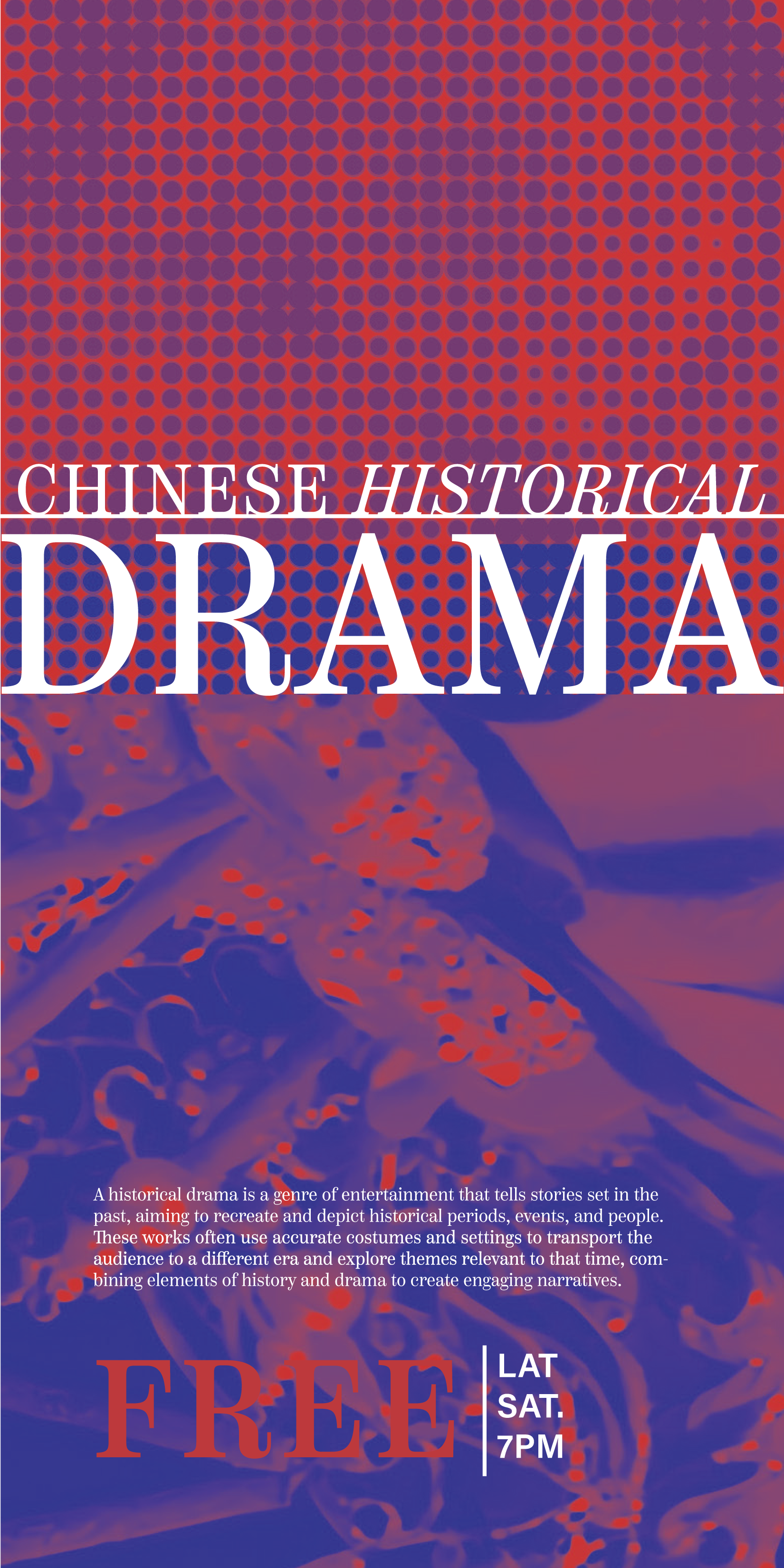 It is a poster and brochure designed for a Chinese historical drama movie series. I only used blue and red as their main colors. The character in the background comes from a Chinese historical drama movie called Farewell to My Concubine.