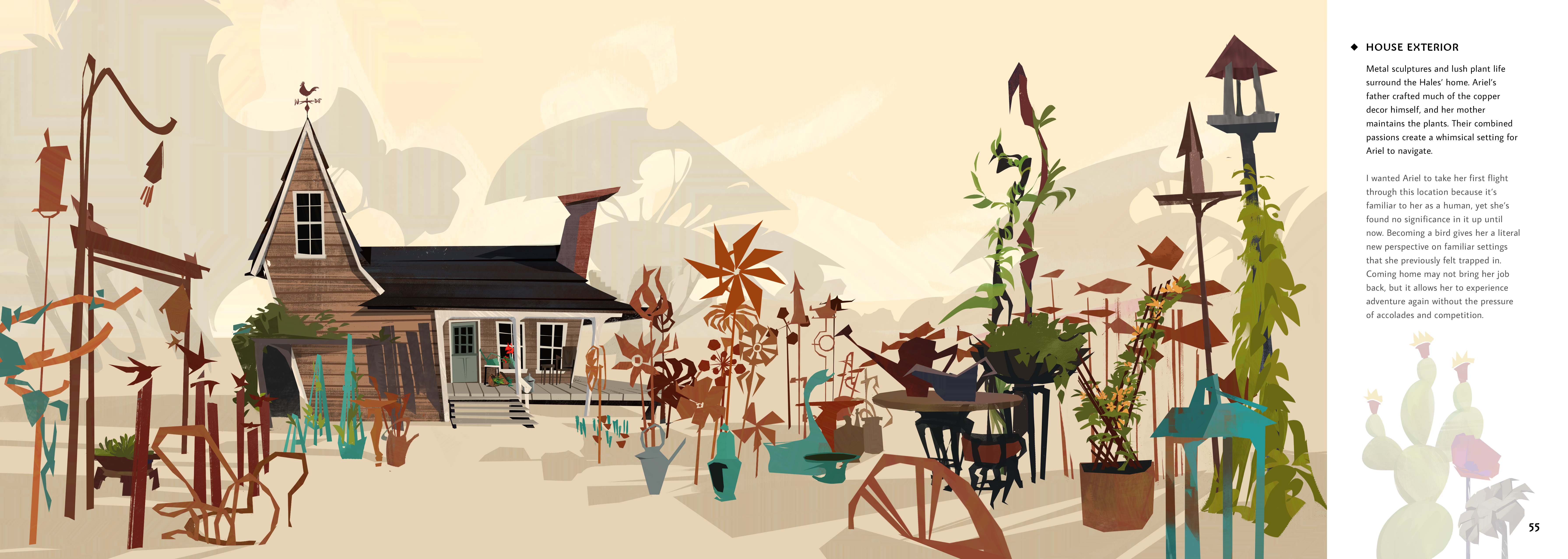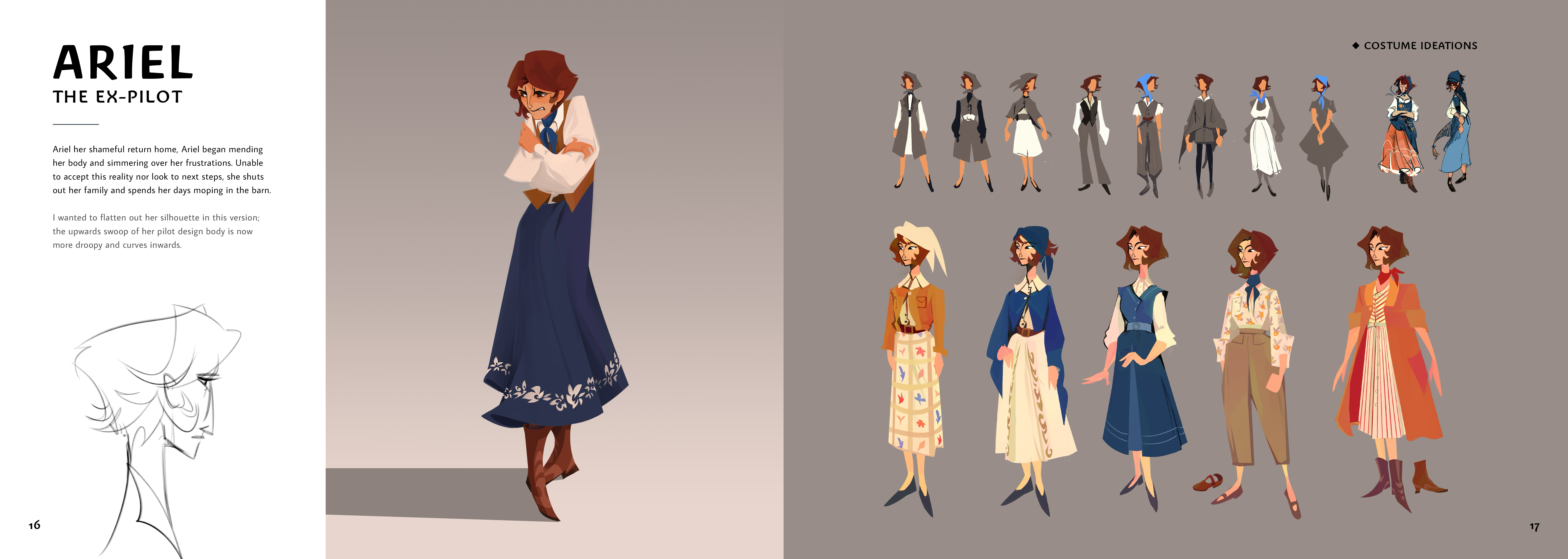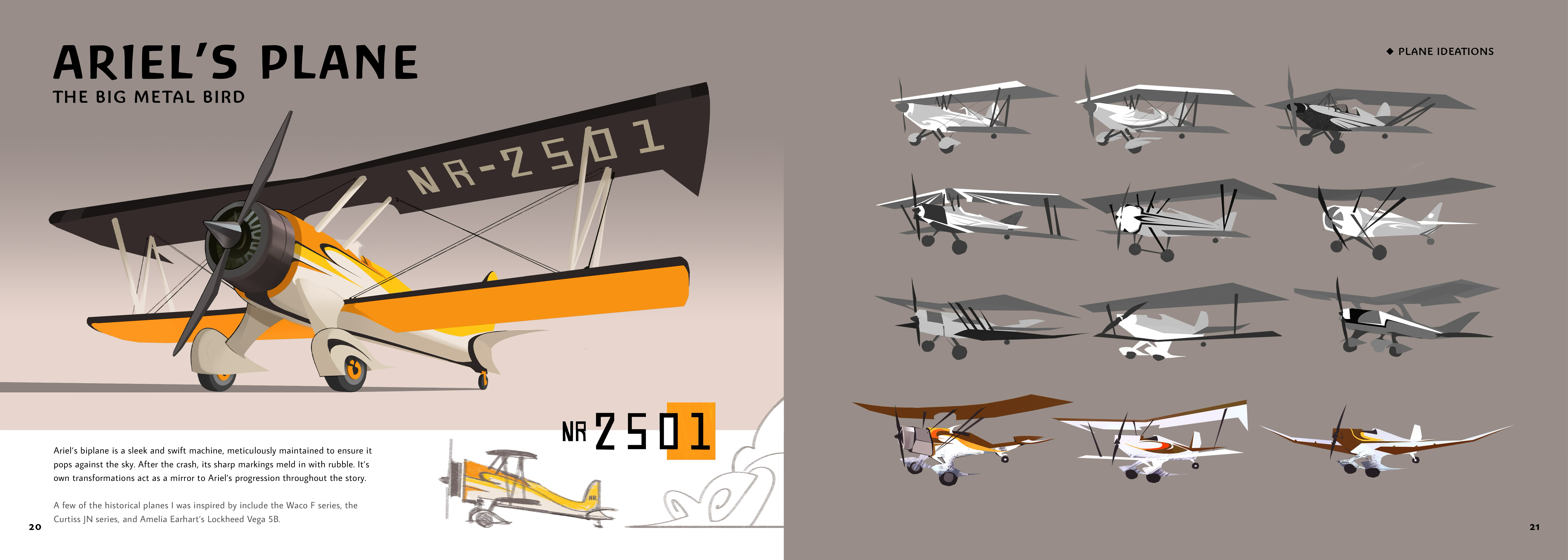 A visual development project about an ex-pilot becoming a bird. The collection of paintings, character designs, prop designs, and set designs have been collected and arranged into an art book.