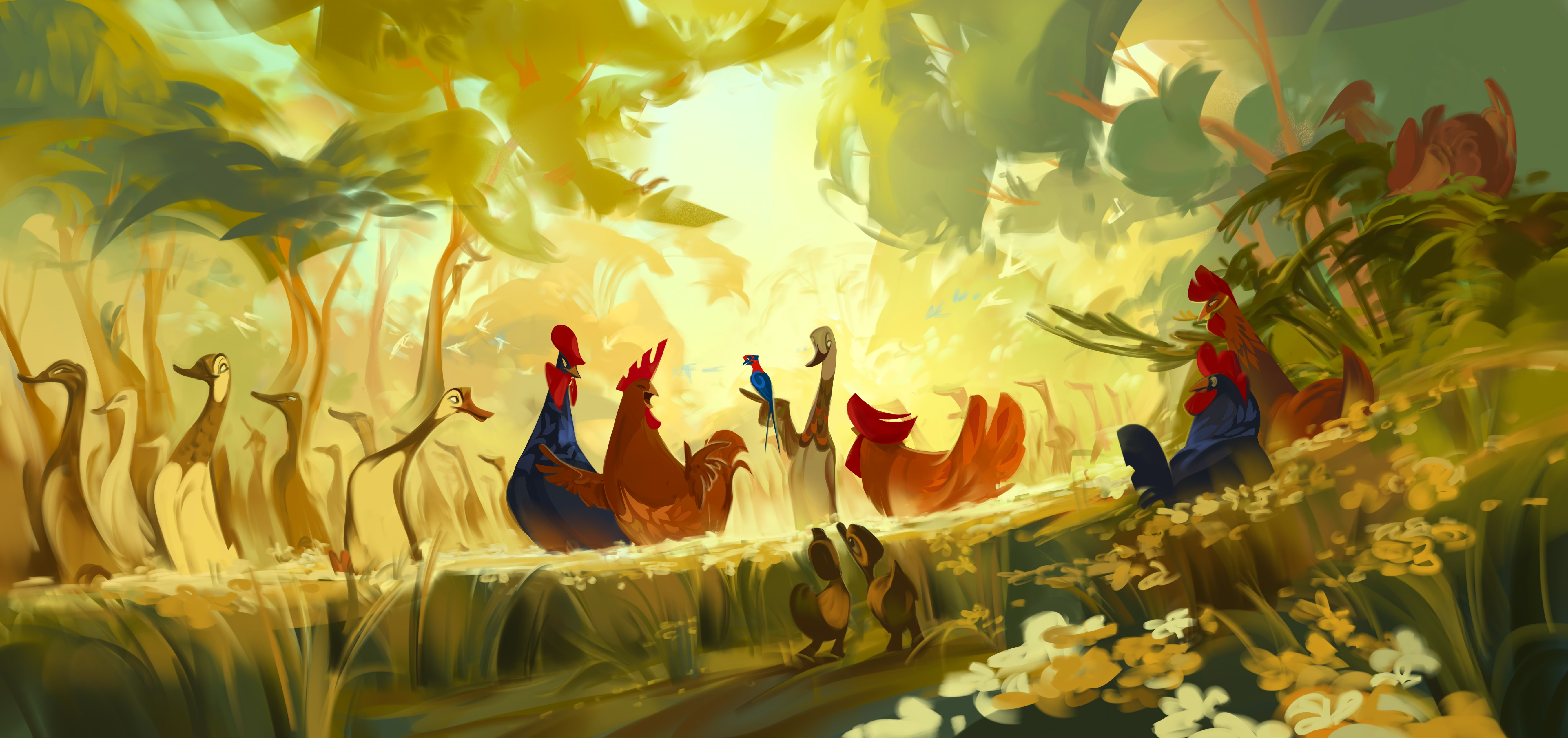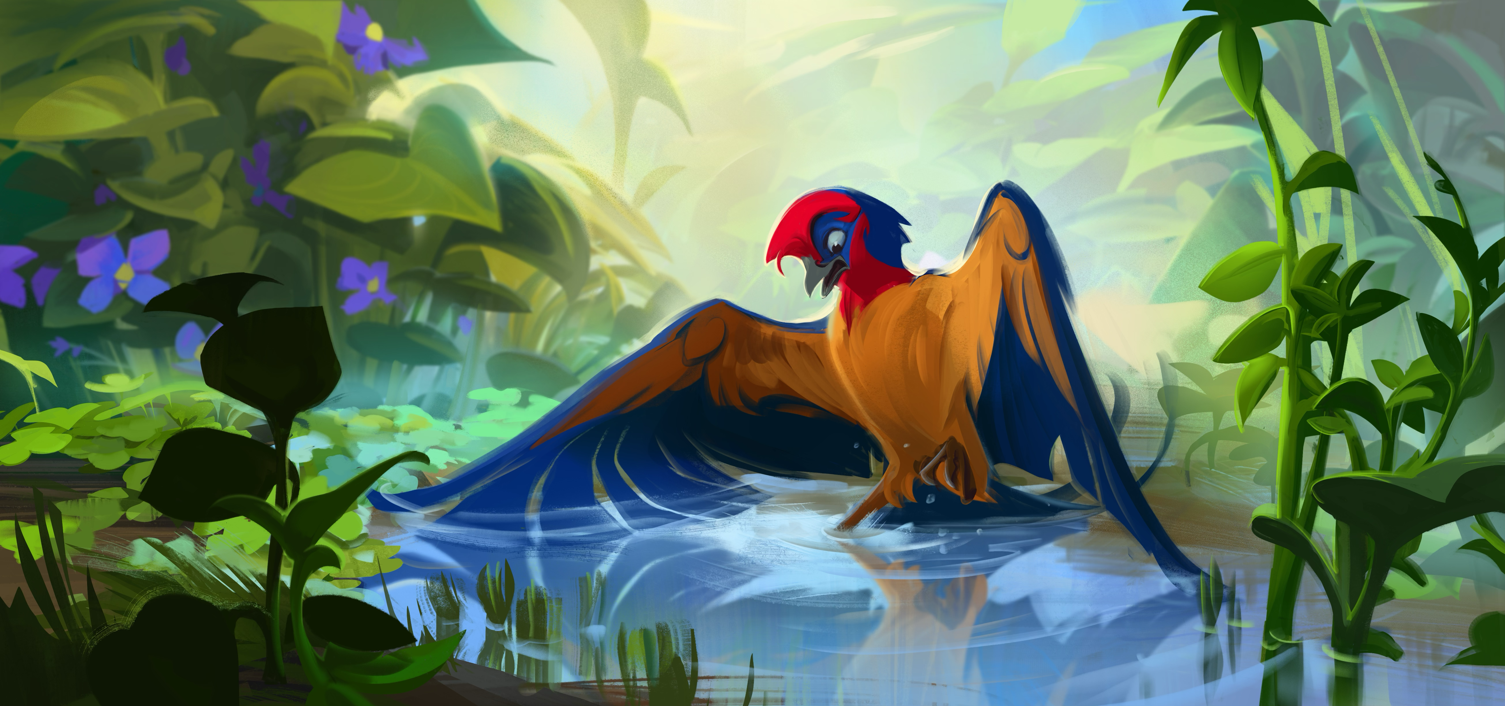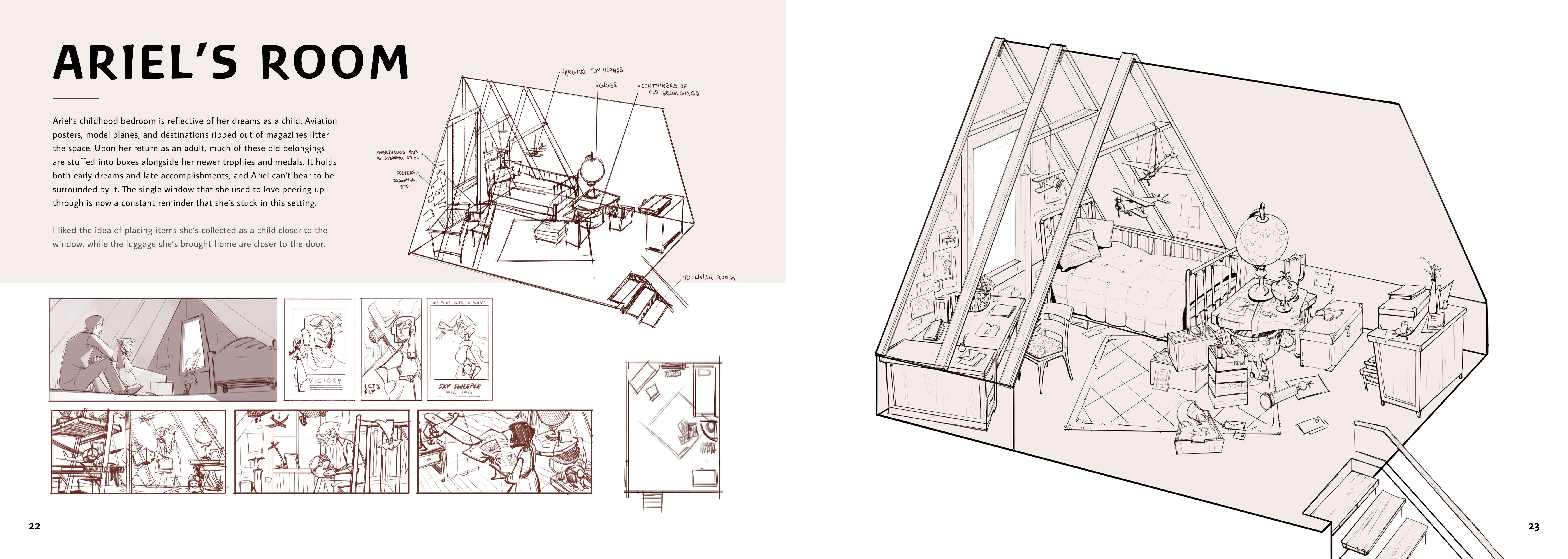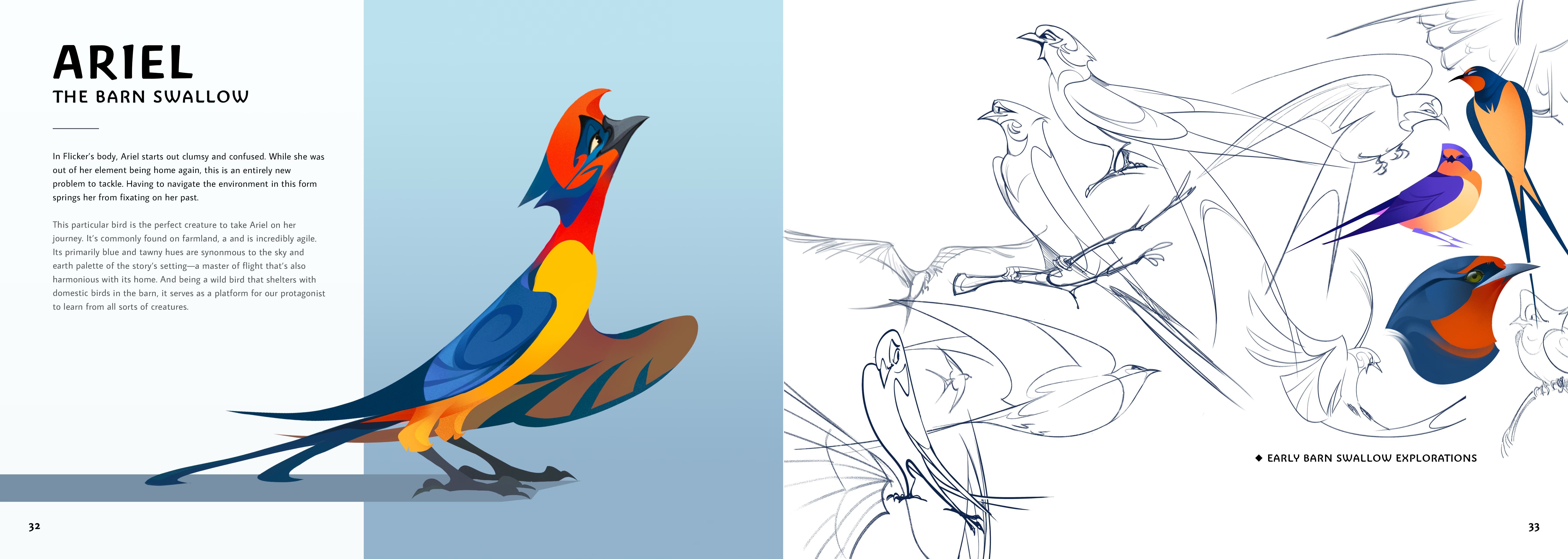 A visual development project about an ex-pilot becoming a bird. The collection of paintings, character designs, prop designs, and set designs have been collected and arranged into an art book.