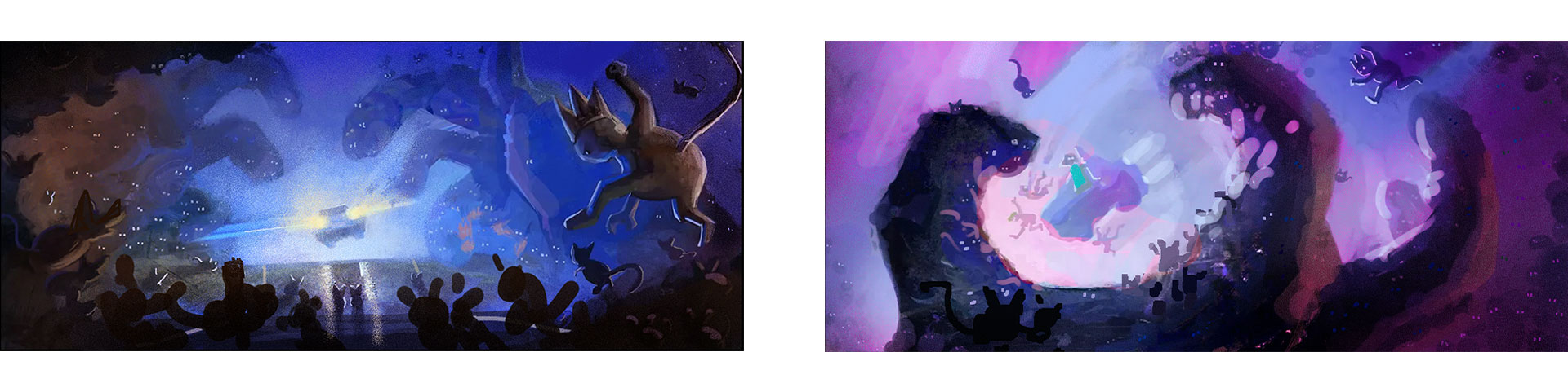 Starting a prior version of this project during my time in visual development with Jim Salvati and morphing this story further into Bill Perkins class -- I learned the foundational pillars of narrative storytelling I would take into my next project. During this project I learned the importance of a visual intensity chart and how to map out a narrative though the visual language.
