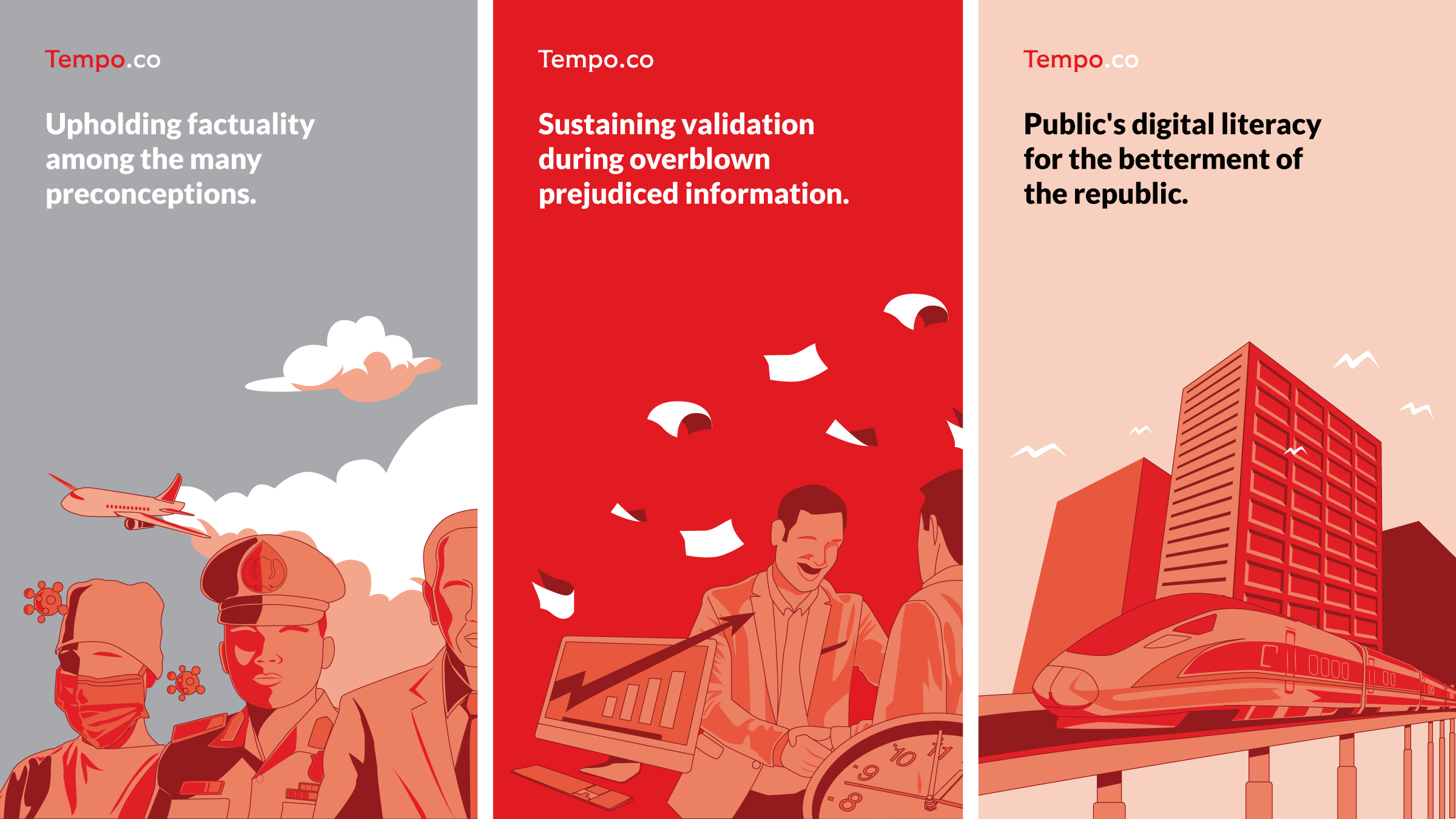 Amid the proliferation of news media in Indonesia, Tempo.co focuses on presenting factual and credible news to its readers. As one of the fragments of Tempo's media group, Tempo.co needs a differentiating factor that can reflect its credibility in providing diverse information according to readers' needs. Therefore, further analysis of their visual identity is required to sort out and select the aspects to maintain the values that carry over time.