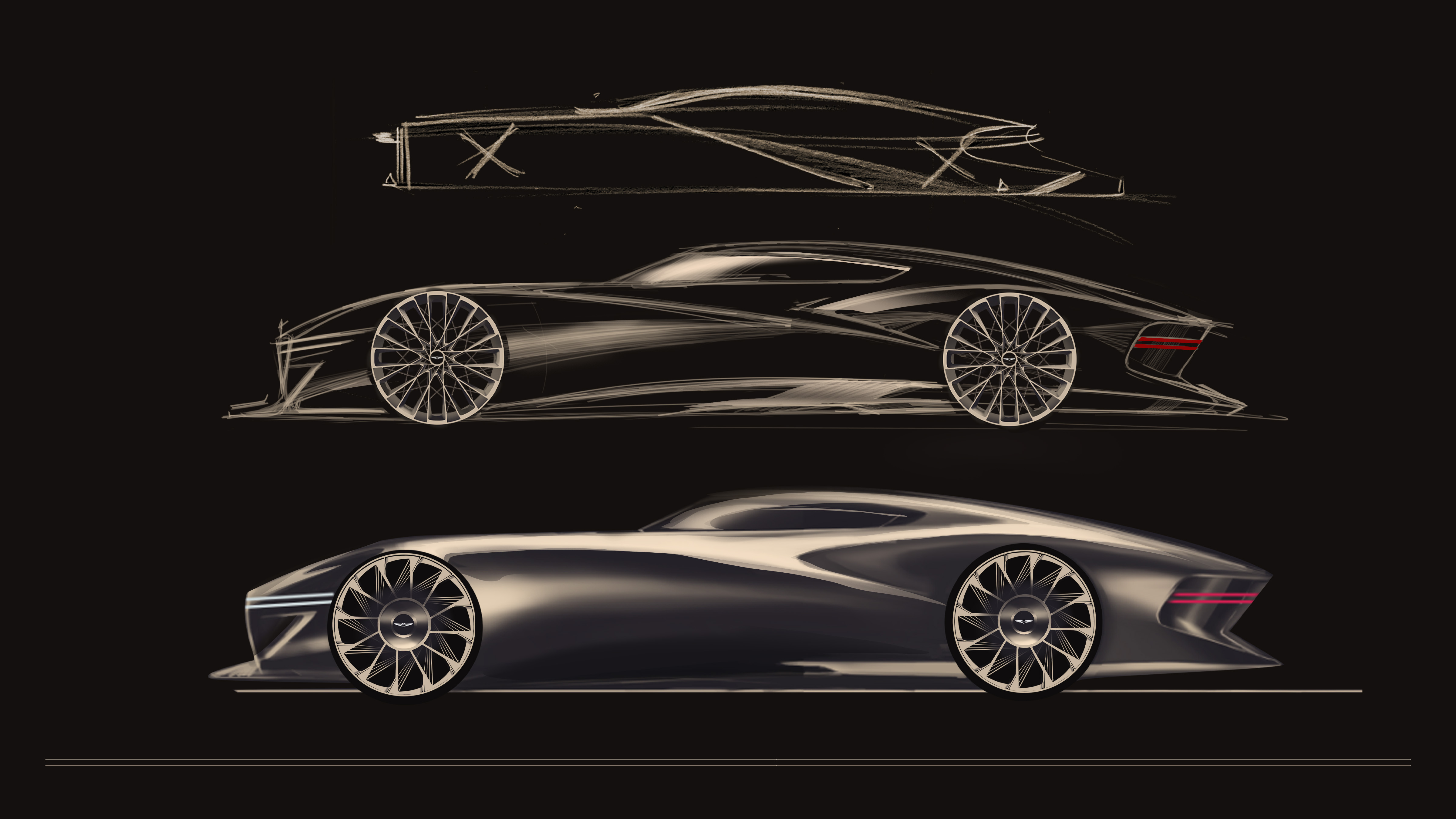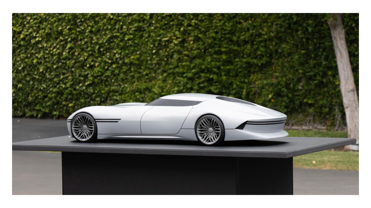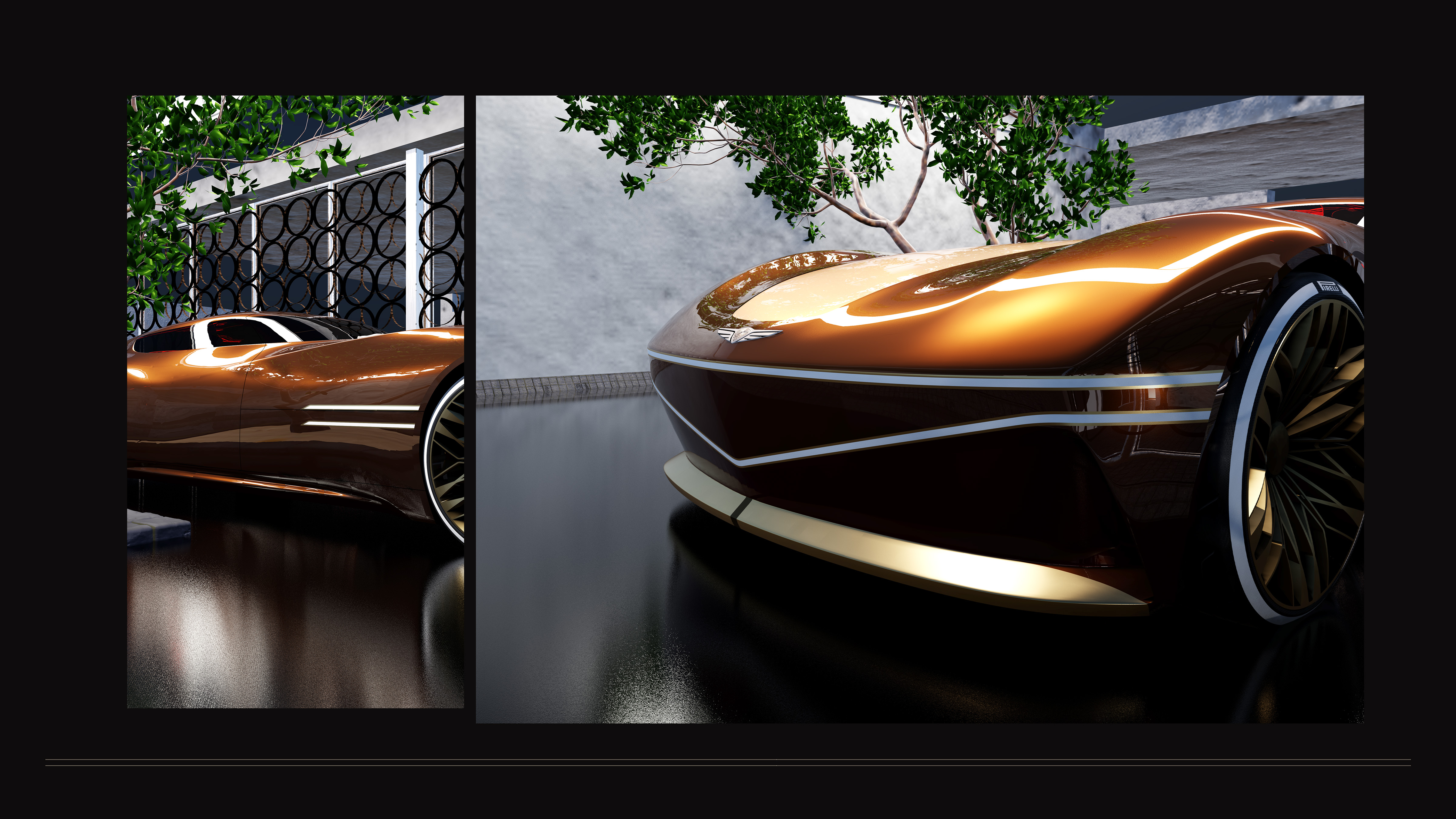 For this process, I went through a rigorous design and sketching session, narrowing five concepts to 1 during studio reviews. Then I got the opportunity to make the vehicle out of clay with the help of Darek Briggs from the Genesis Clay Sculpting Division. With this, I was able to create a 3D model and a clay model, and present them to the Genesis + Hyundai Studio.