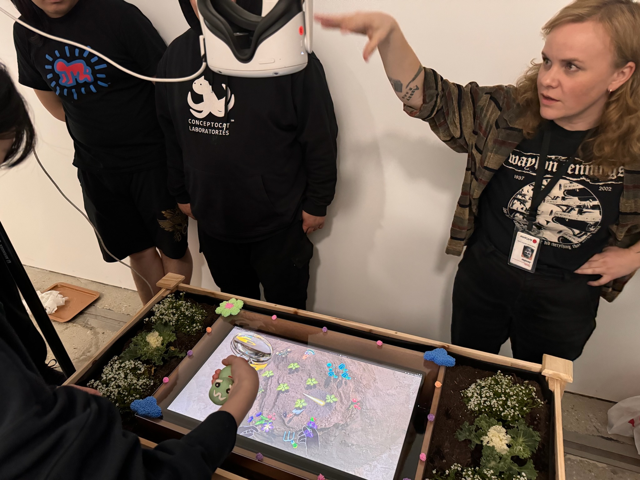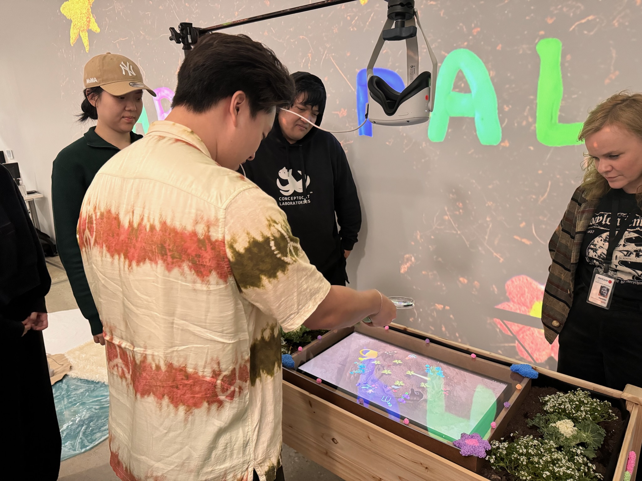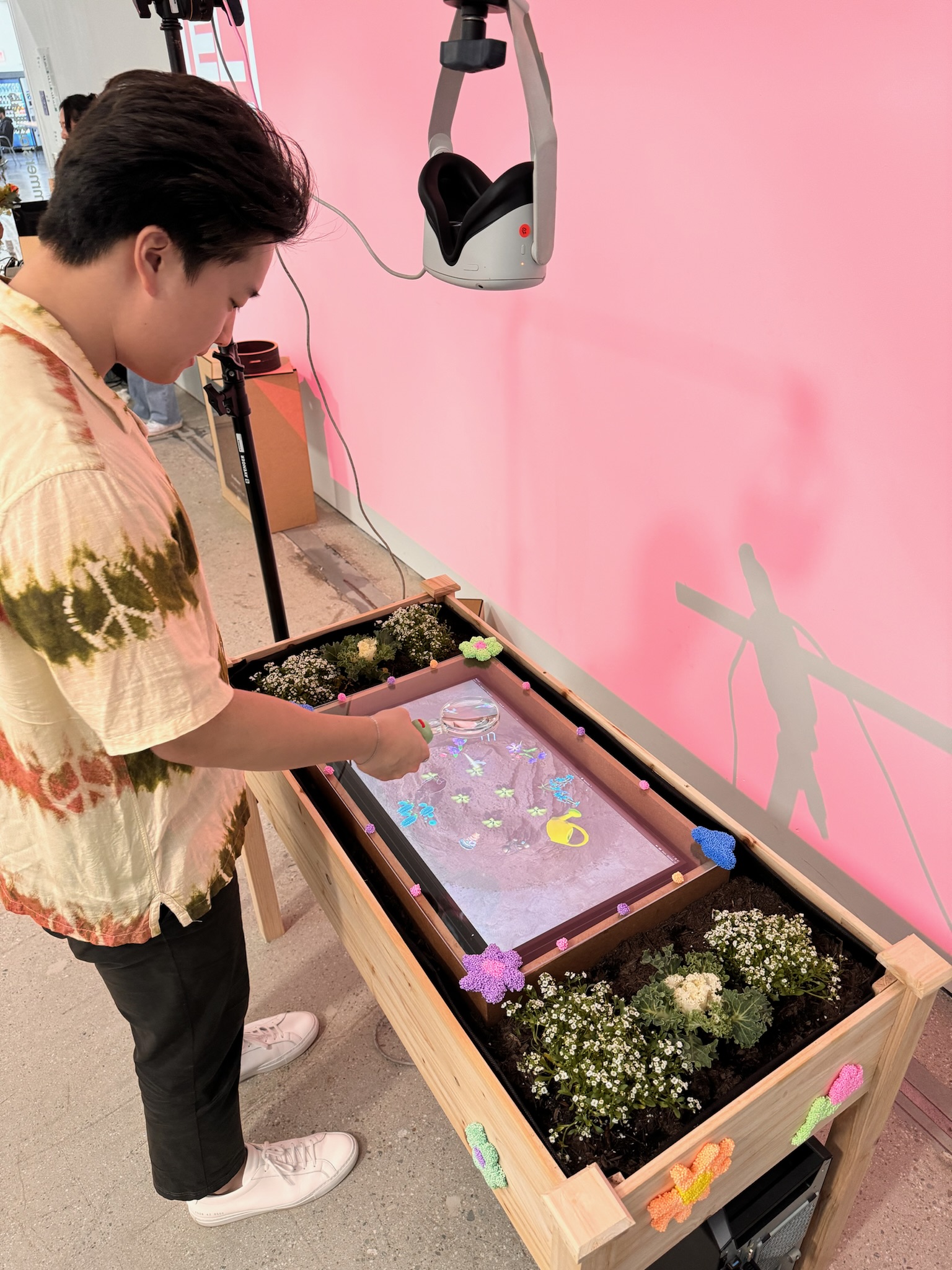 Garden Pal is a mixed reality tabletop game offering a playful experience by juxtaposing a garden space in both the physical and virtual world. Players engage with our environment using a magnifying glass as the game controller. Your goal is to keep your garden pal (ladybug) alive as long as possible from the creepy crawlers roaming around her. Use the magnifying glass in your hand to start a fire in order to eliminate her predators!