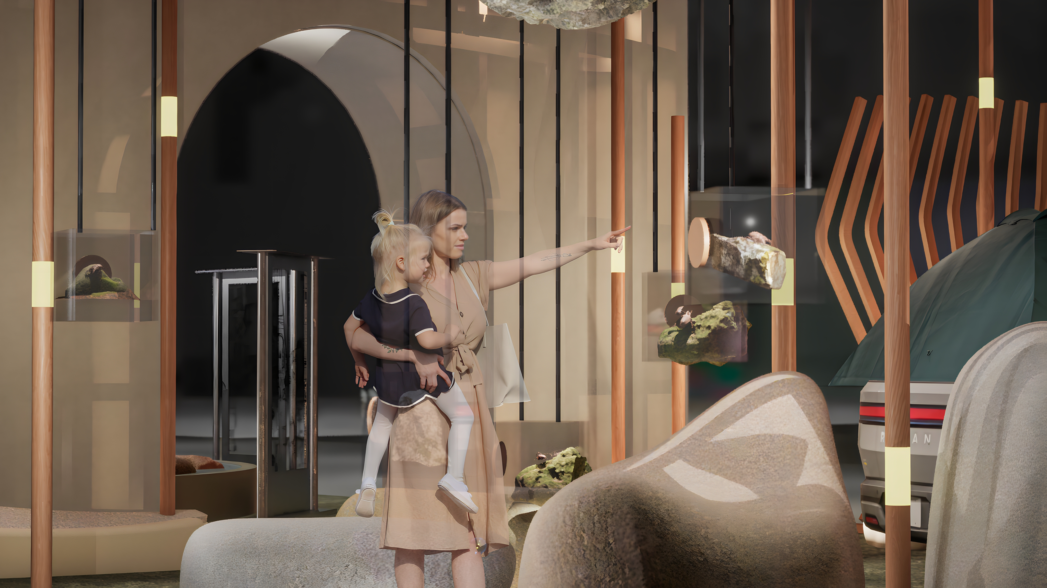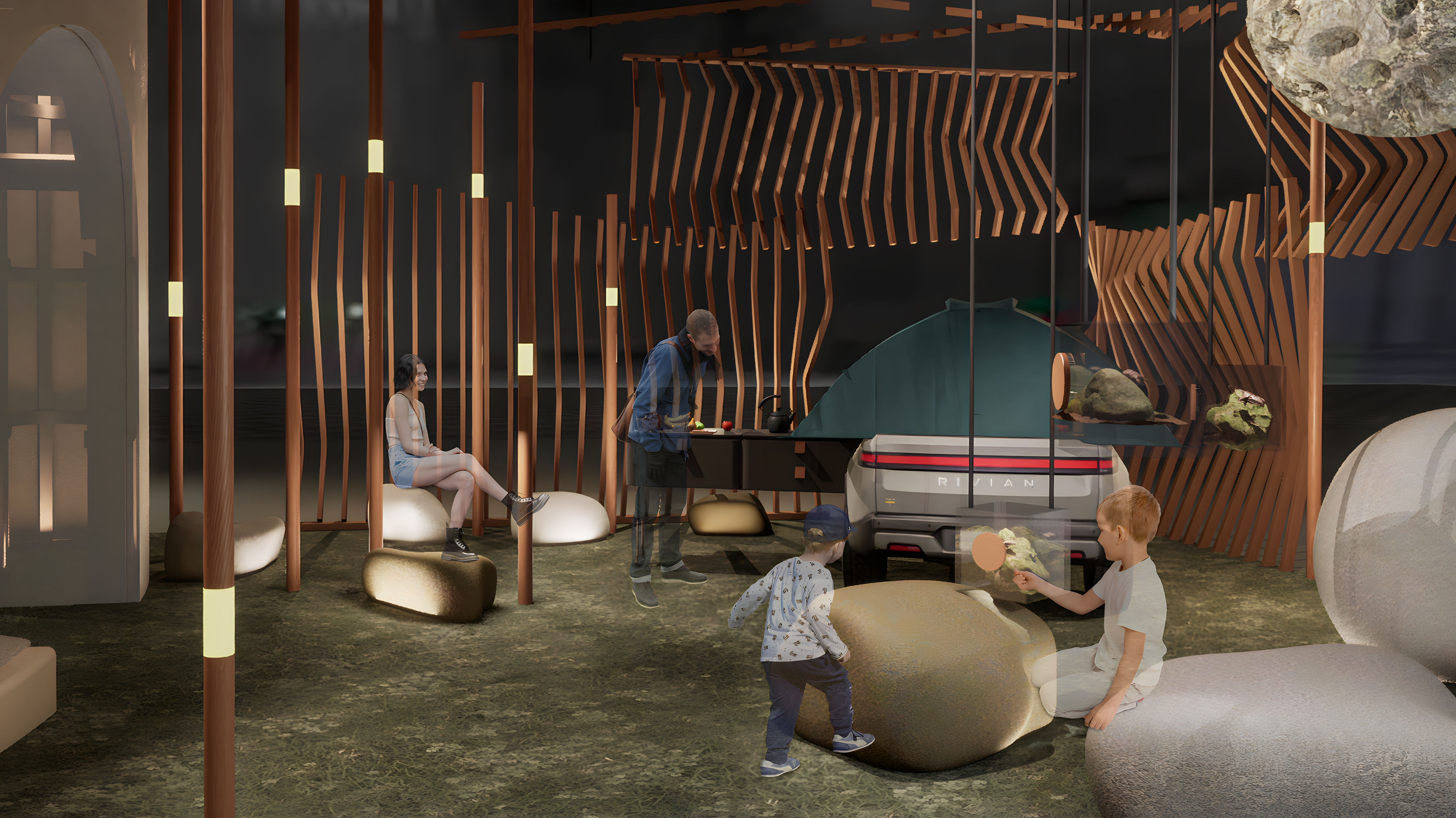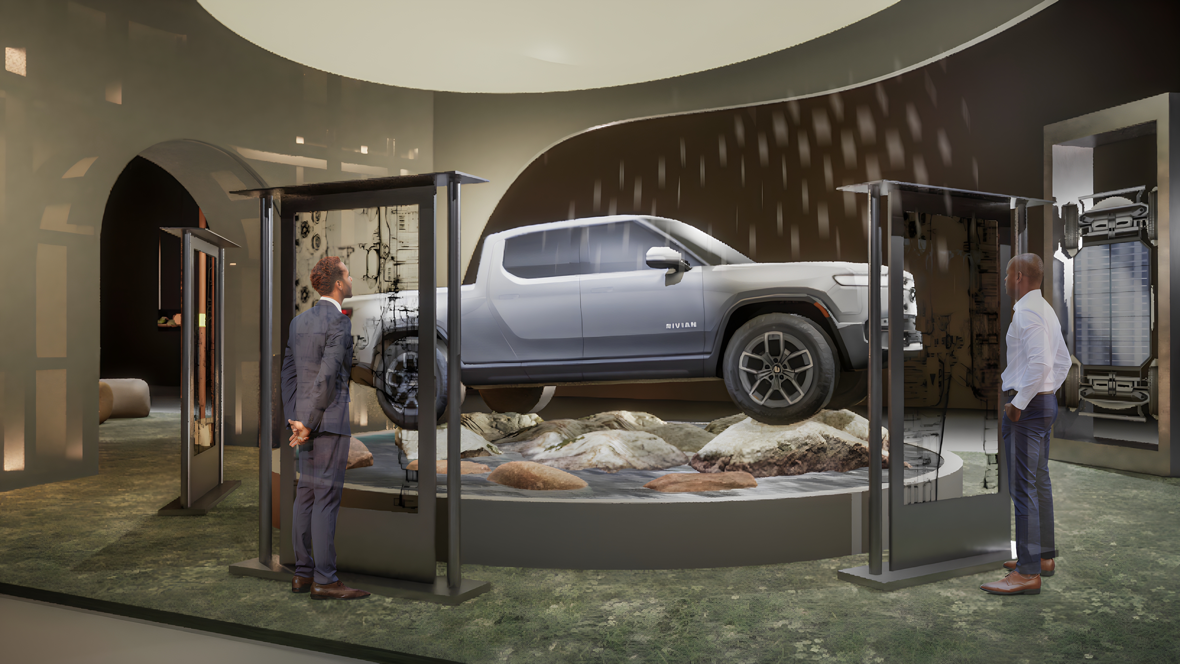 The Rivian auto show will prominently feature Rivian’s lauch vehicles, the R1T and R1S, by targeting both individuals and industries. The overall design incorporated recycled materials, immersive and communal spaces, and engaging displays to create an open, thoughtful, and adventurous experience in line with the brand.