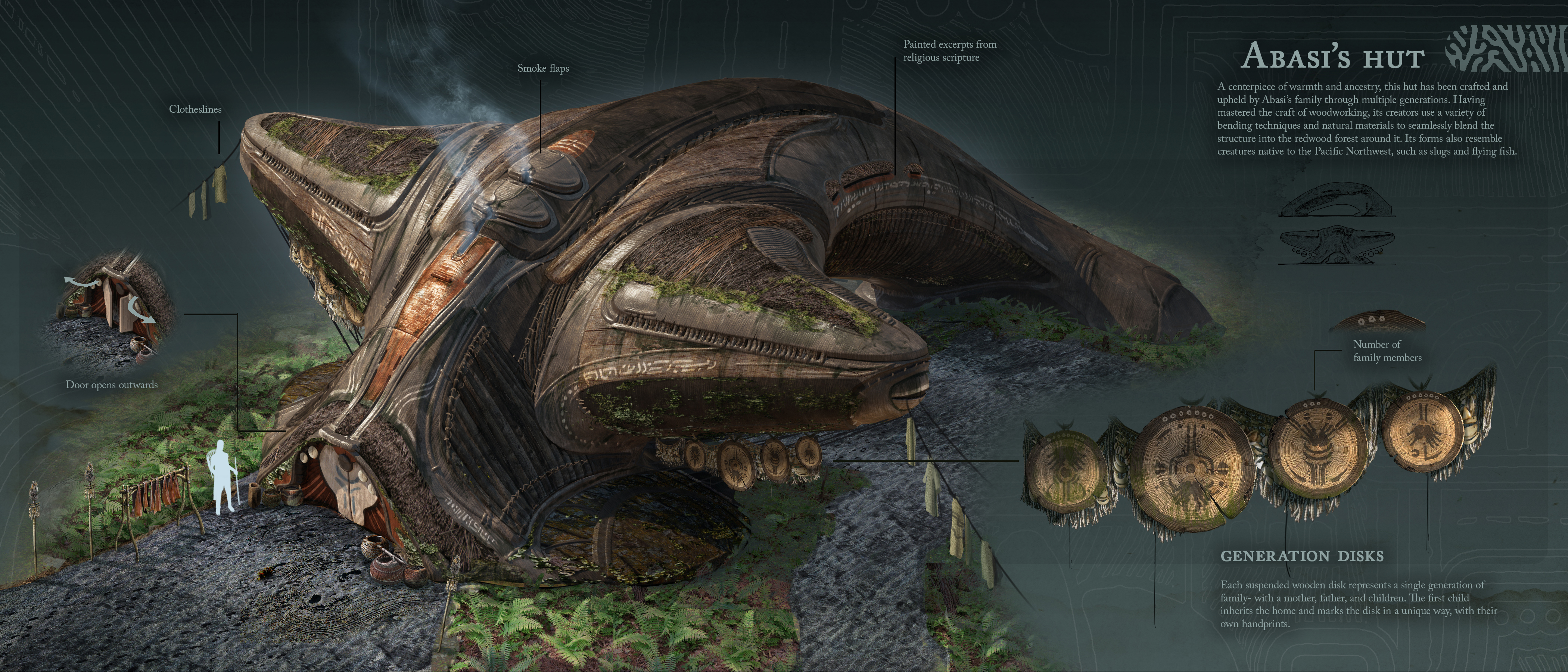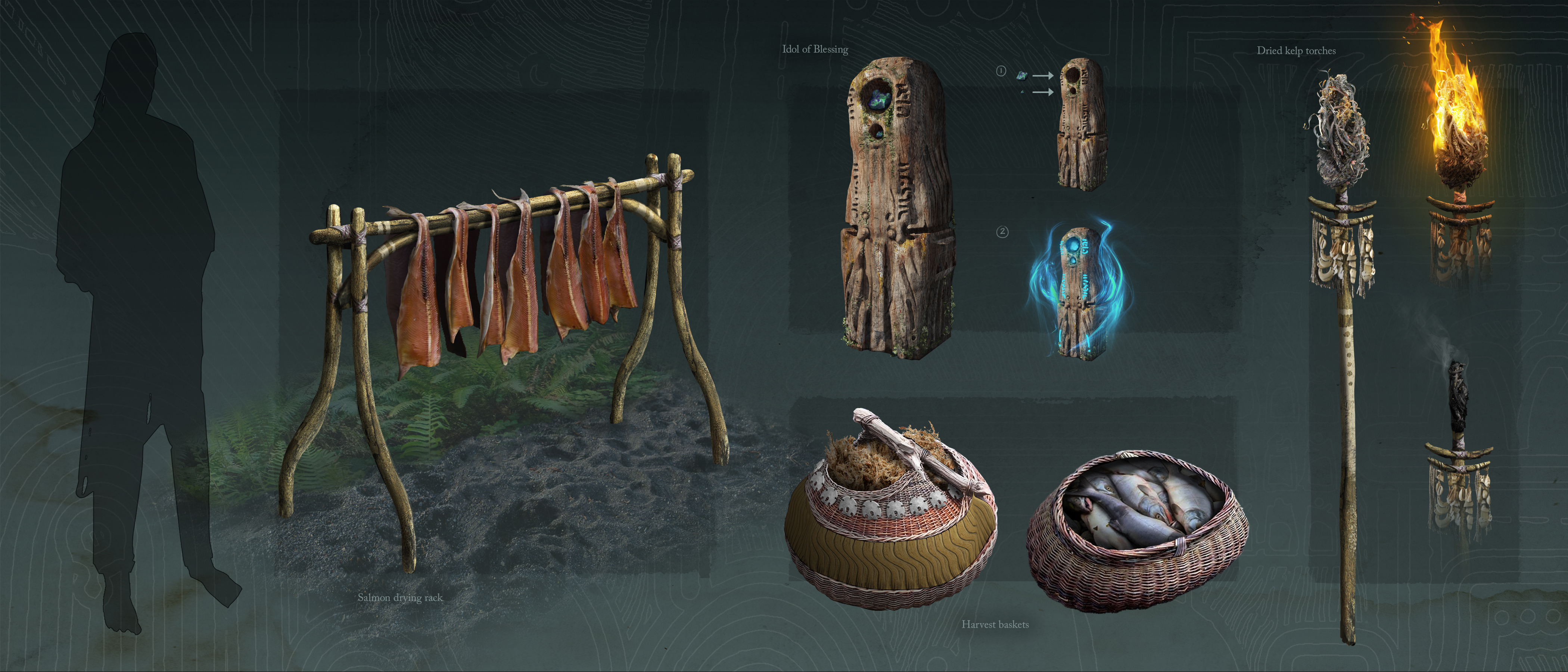 An ancient world that worships a mysterious octopus-like deity named Magra, otherwise known as Cthulu. This first part of the project depicts part of the forest village that the main character of the story, Abasi, lives in.