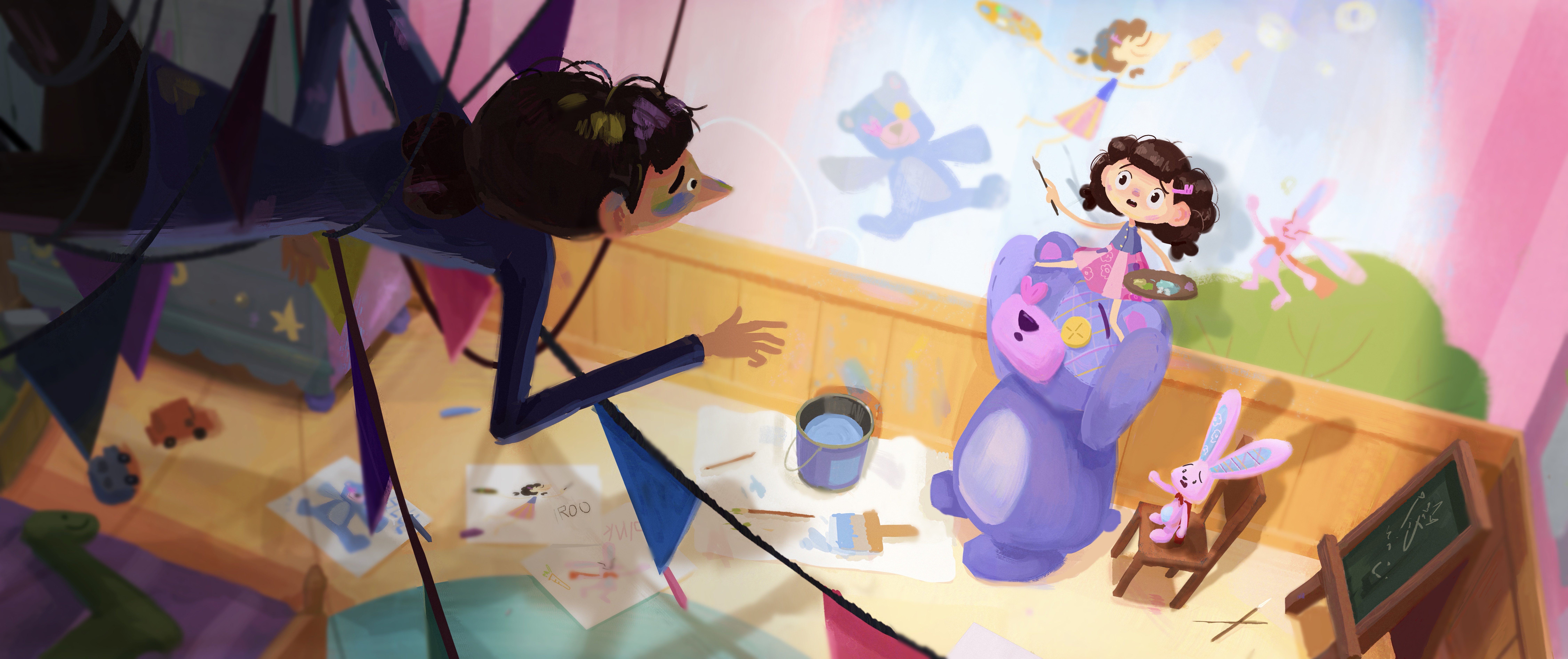 Visual Development project based on my original story, "Painted". A young artist, consumed by anxiety and self-doubt, is drawn into the world of her own painting—where a surreal journey forces her to face her fears and reignite her creative spark.
