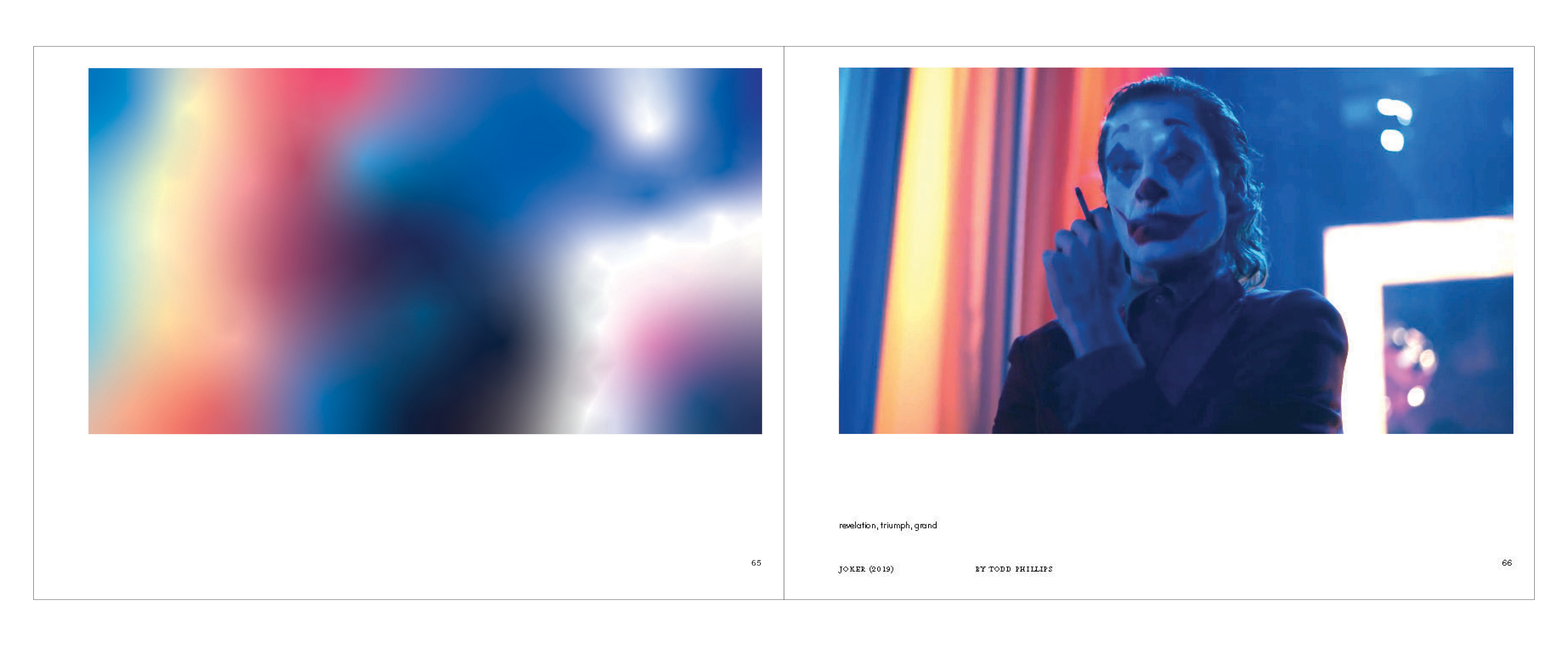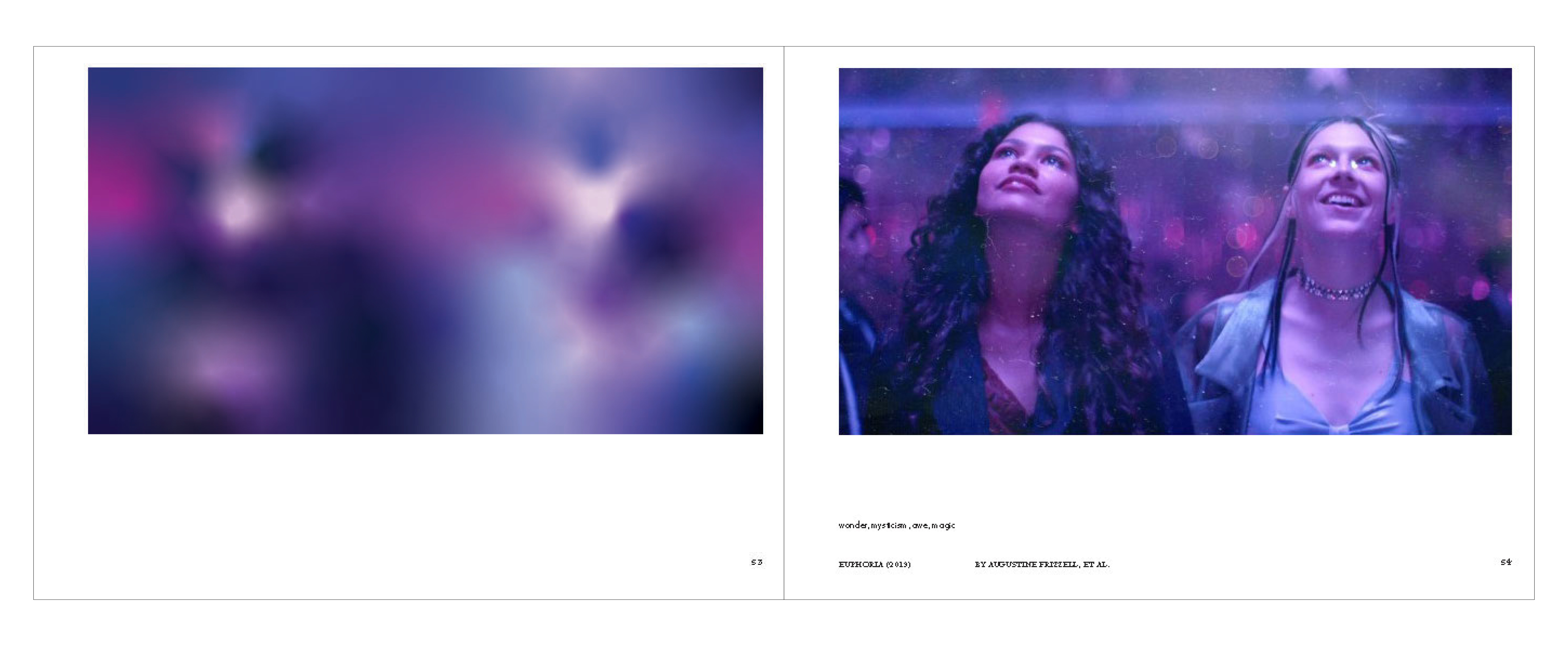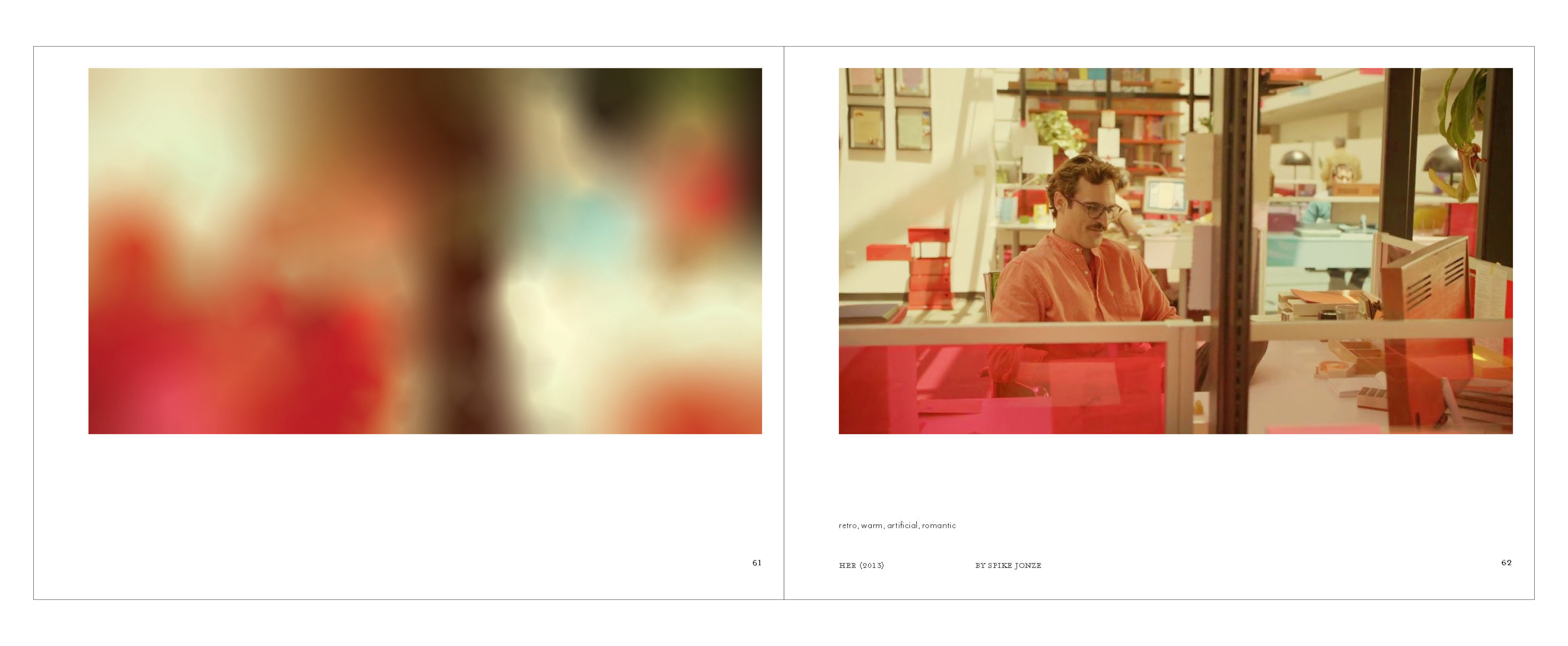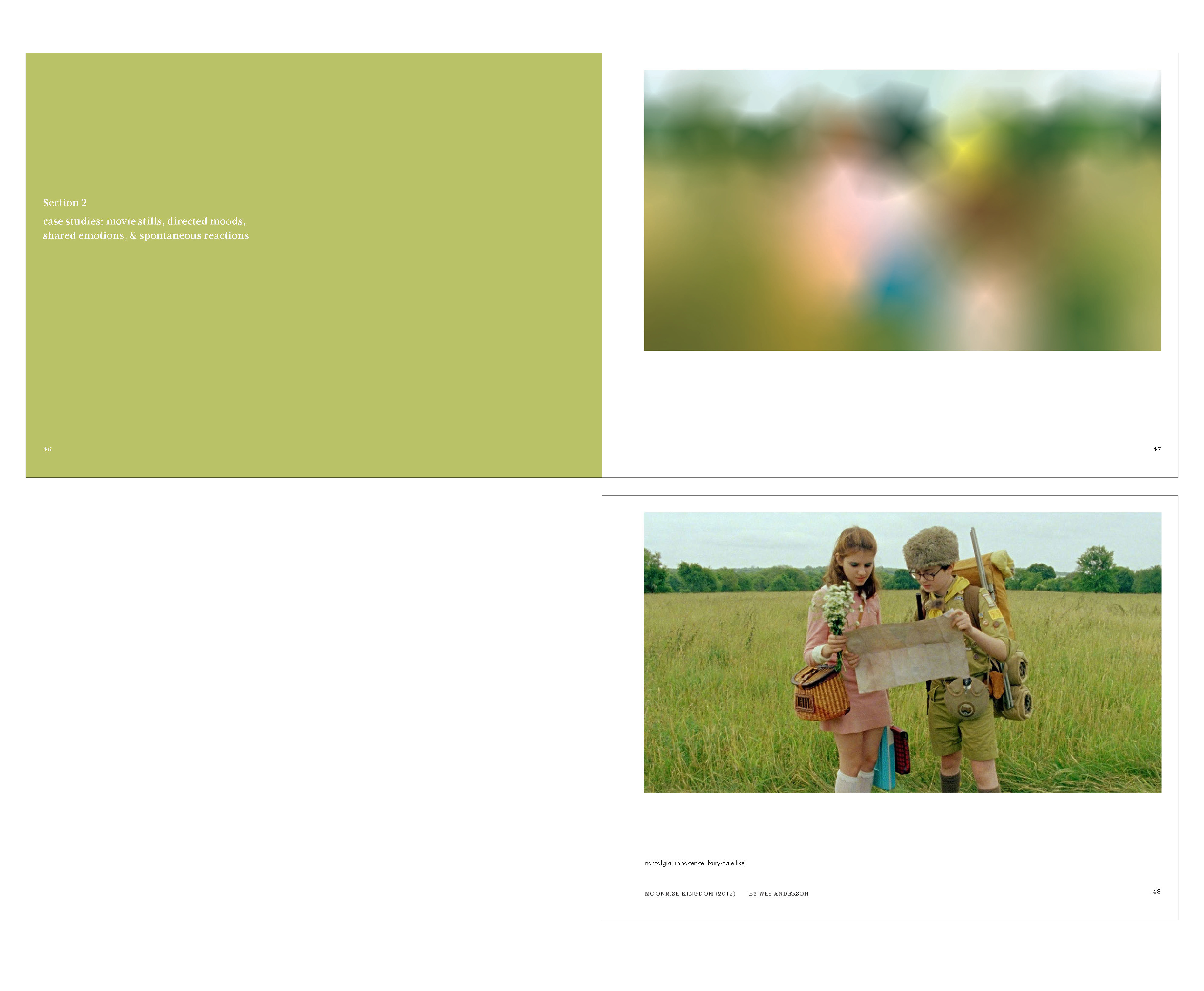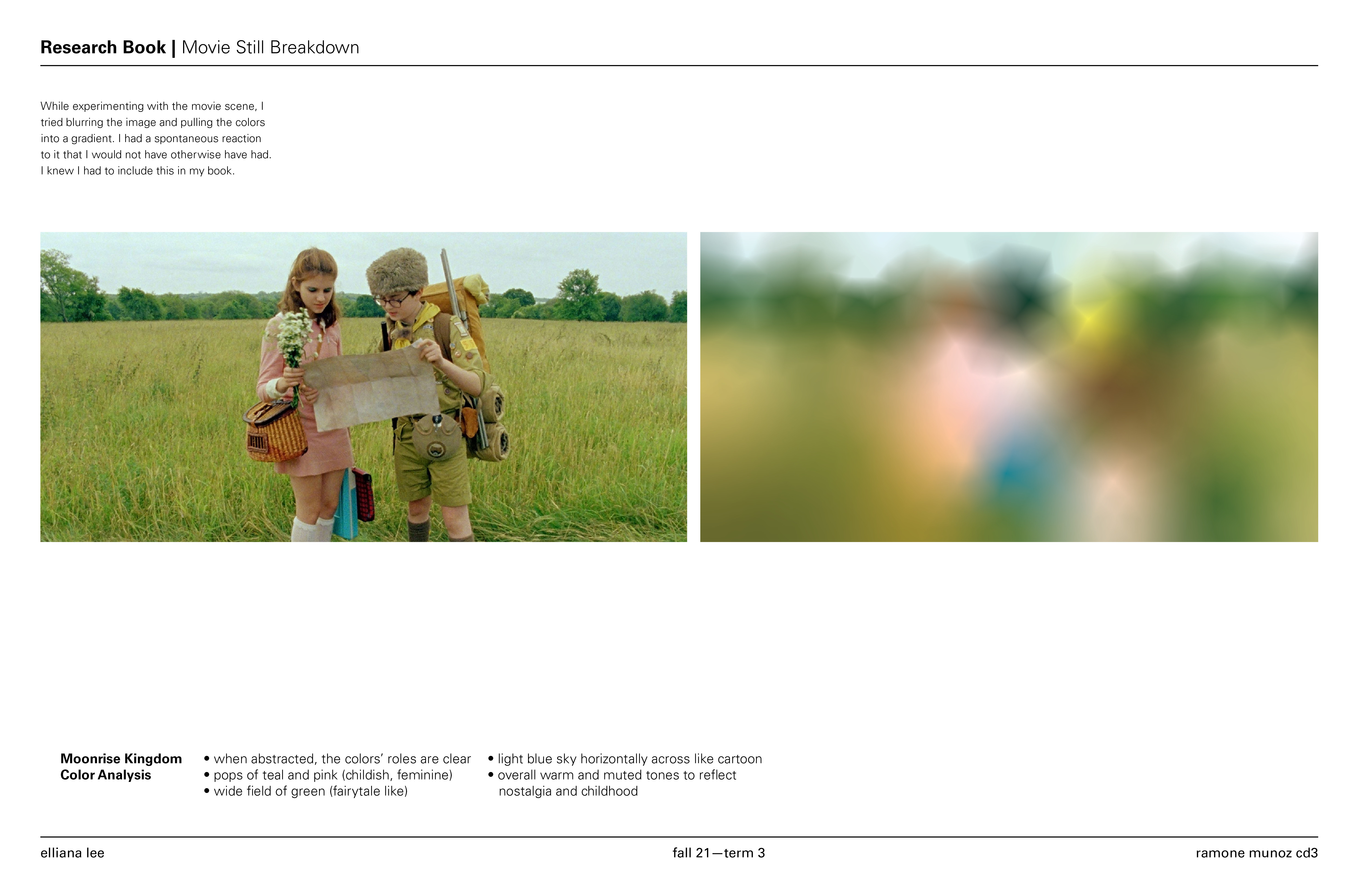 The blurred, gradient color rectangles were printed on vellum sheets. This way, the movie scene would still peek through behind.