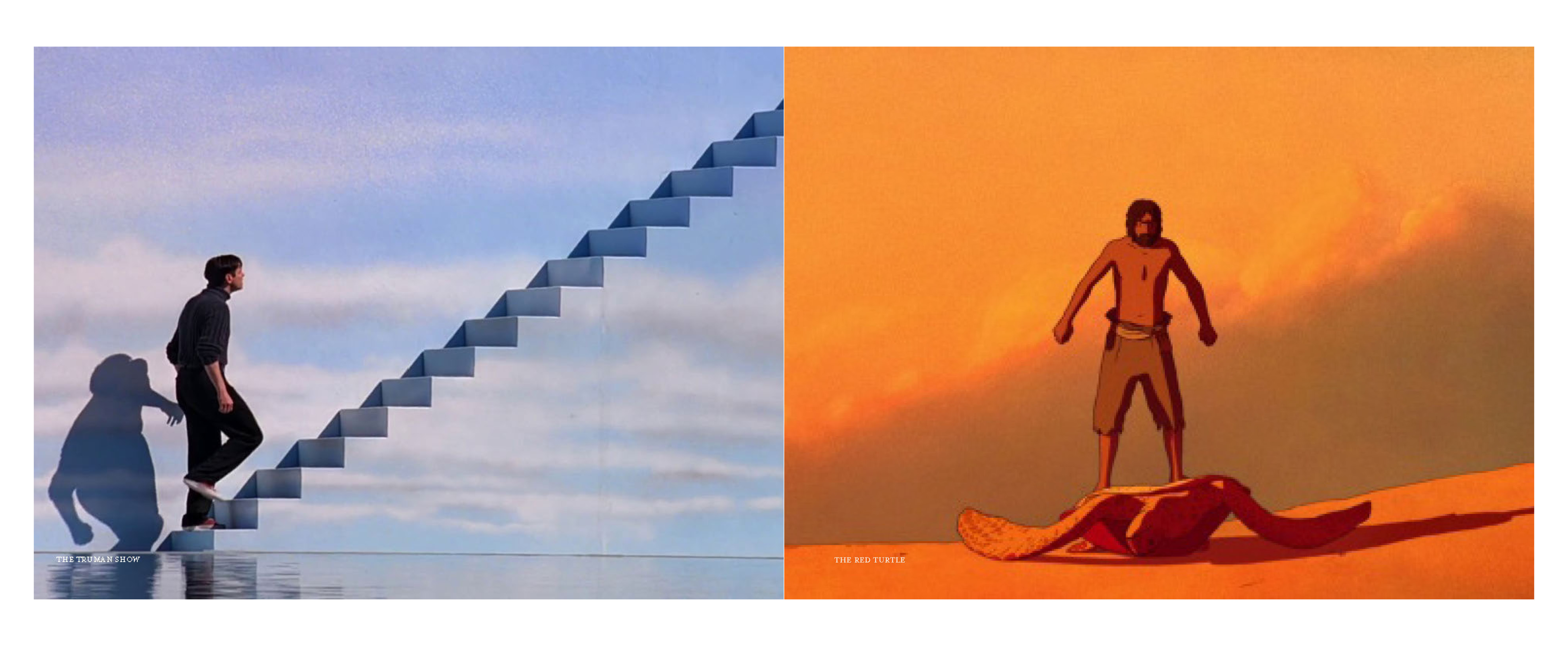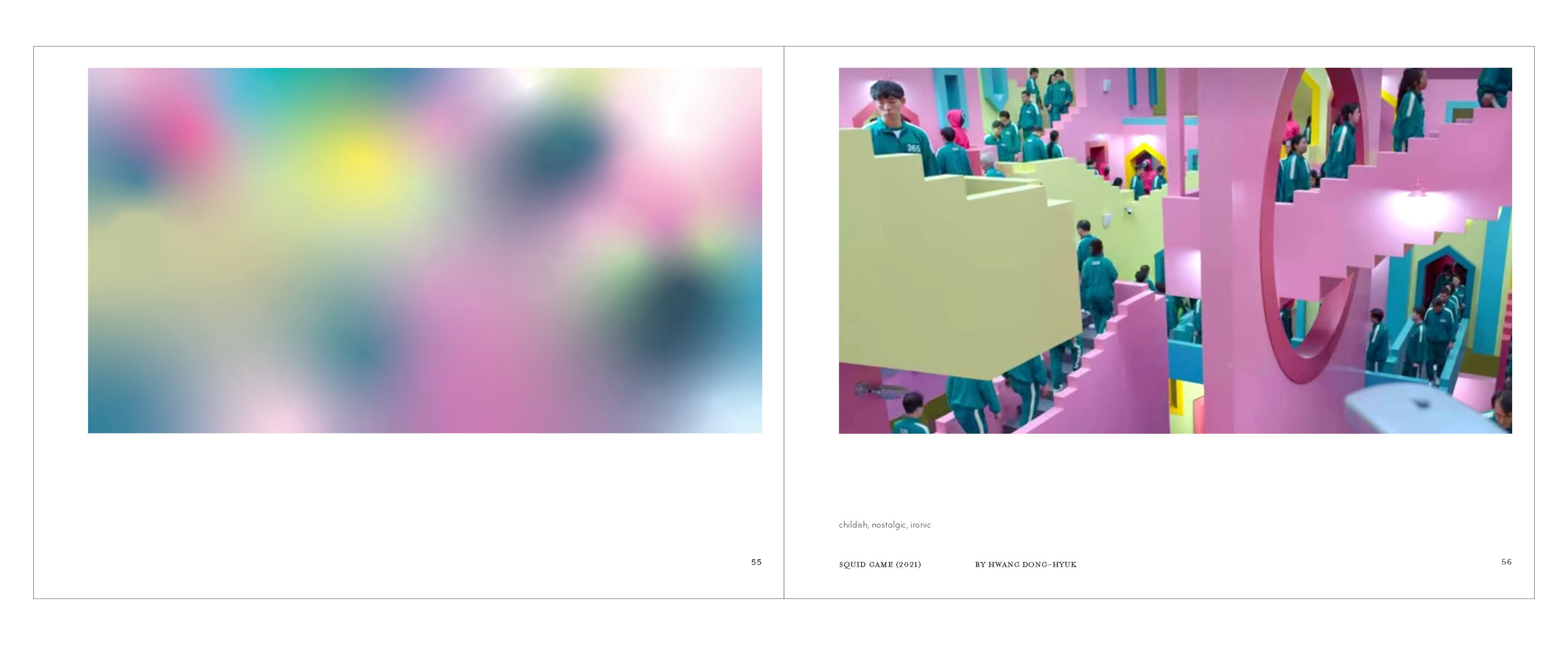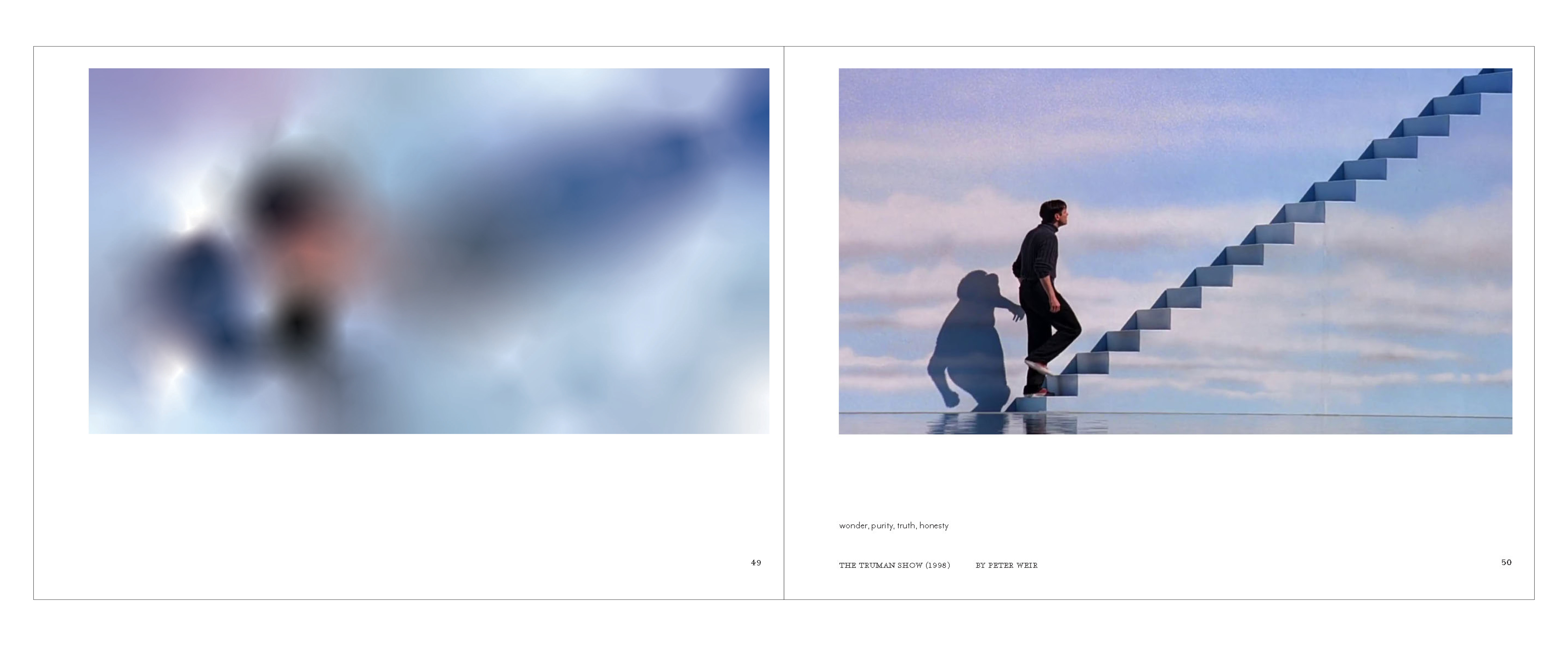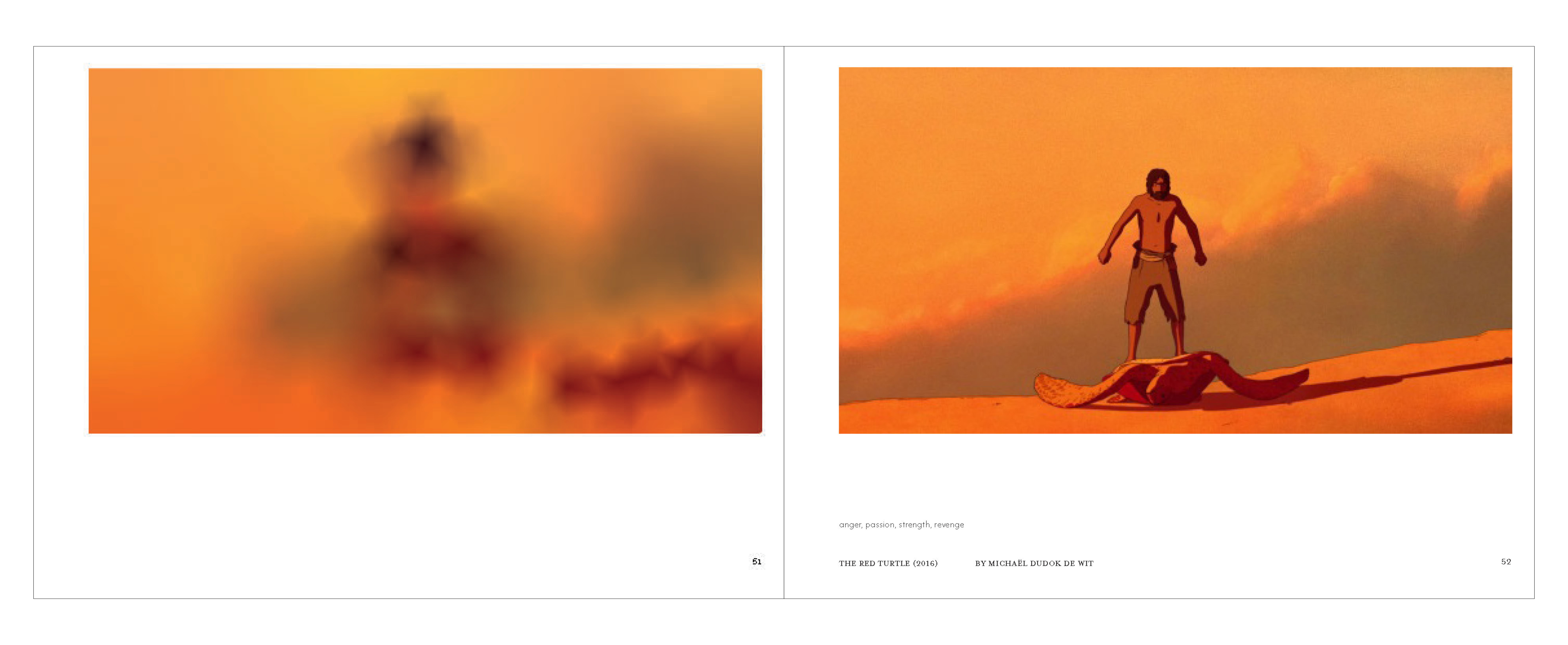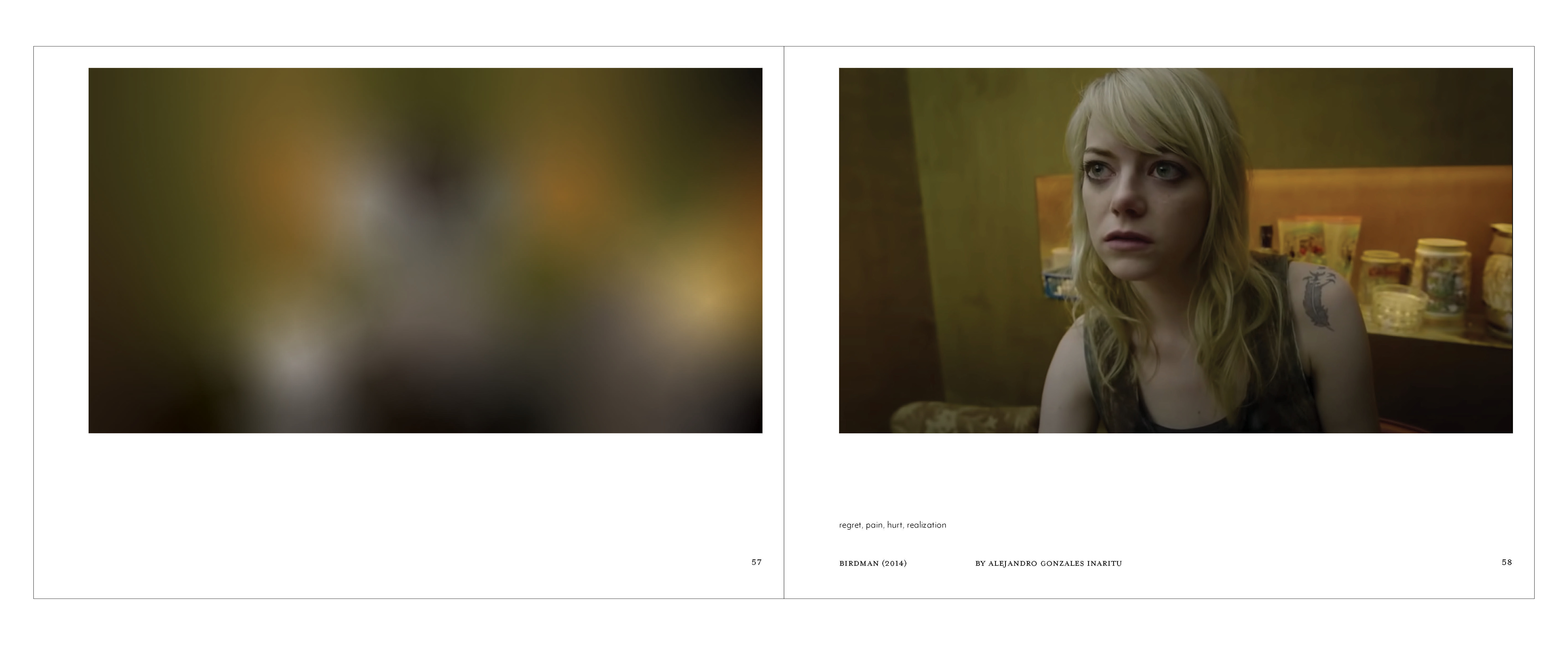 The blurred, gradient color rectangles were printed on vellum sheets. This way, the movie scene would still peek through behind.