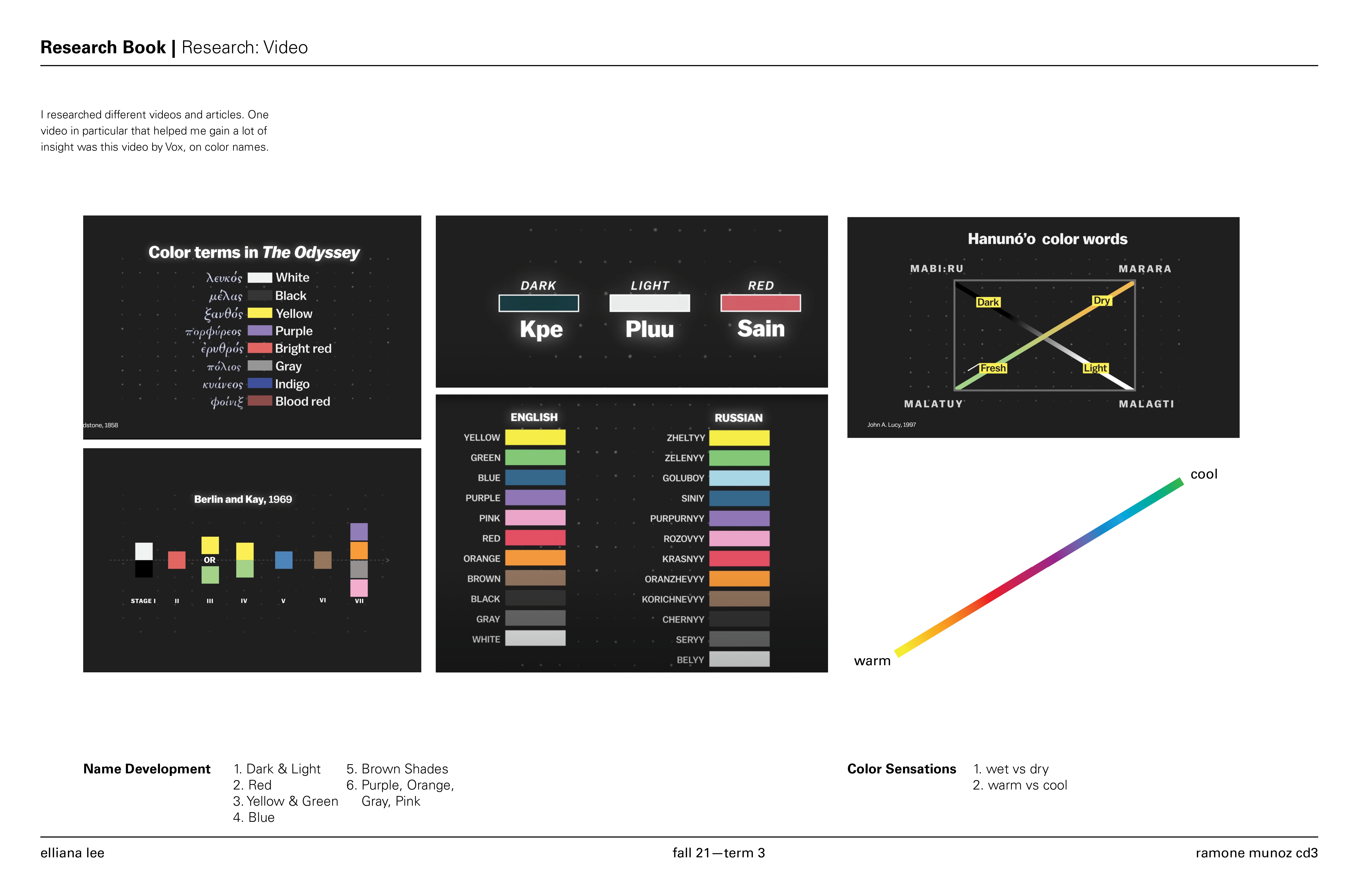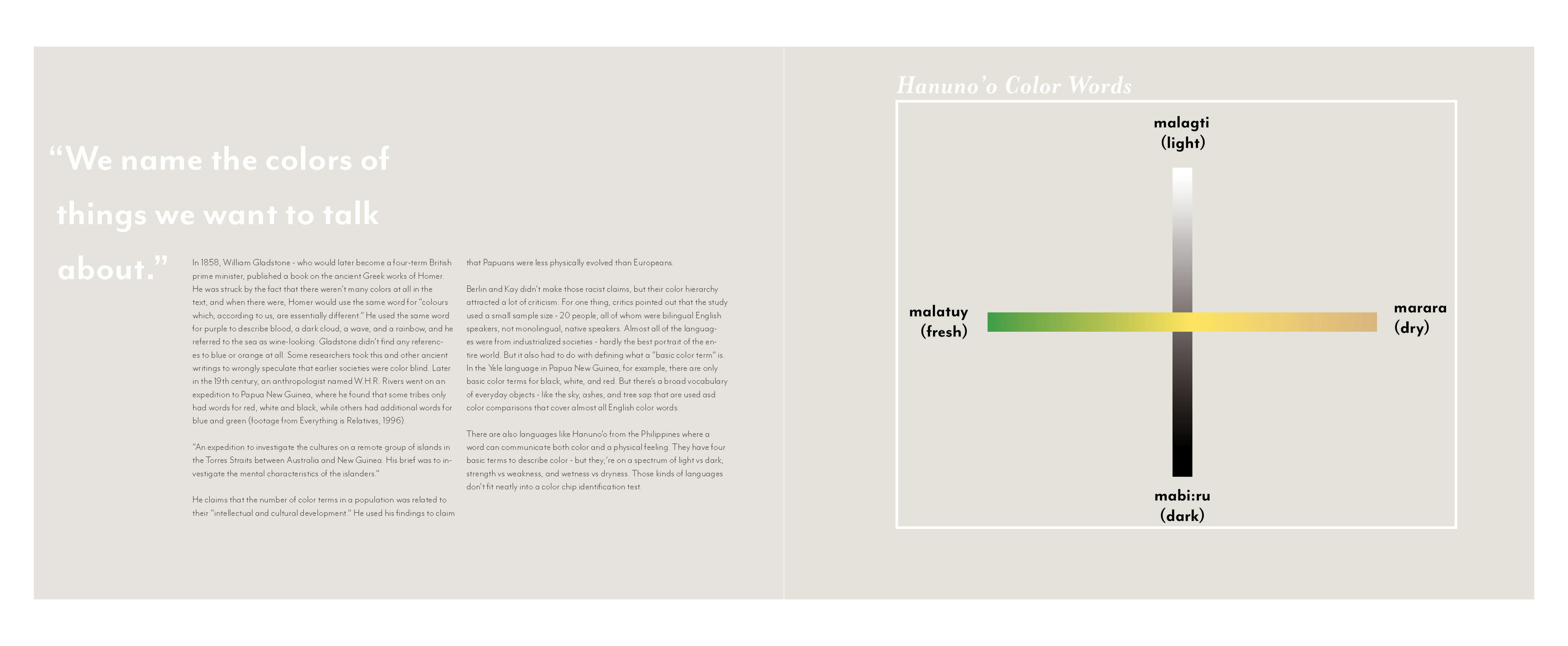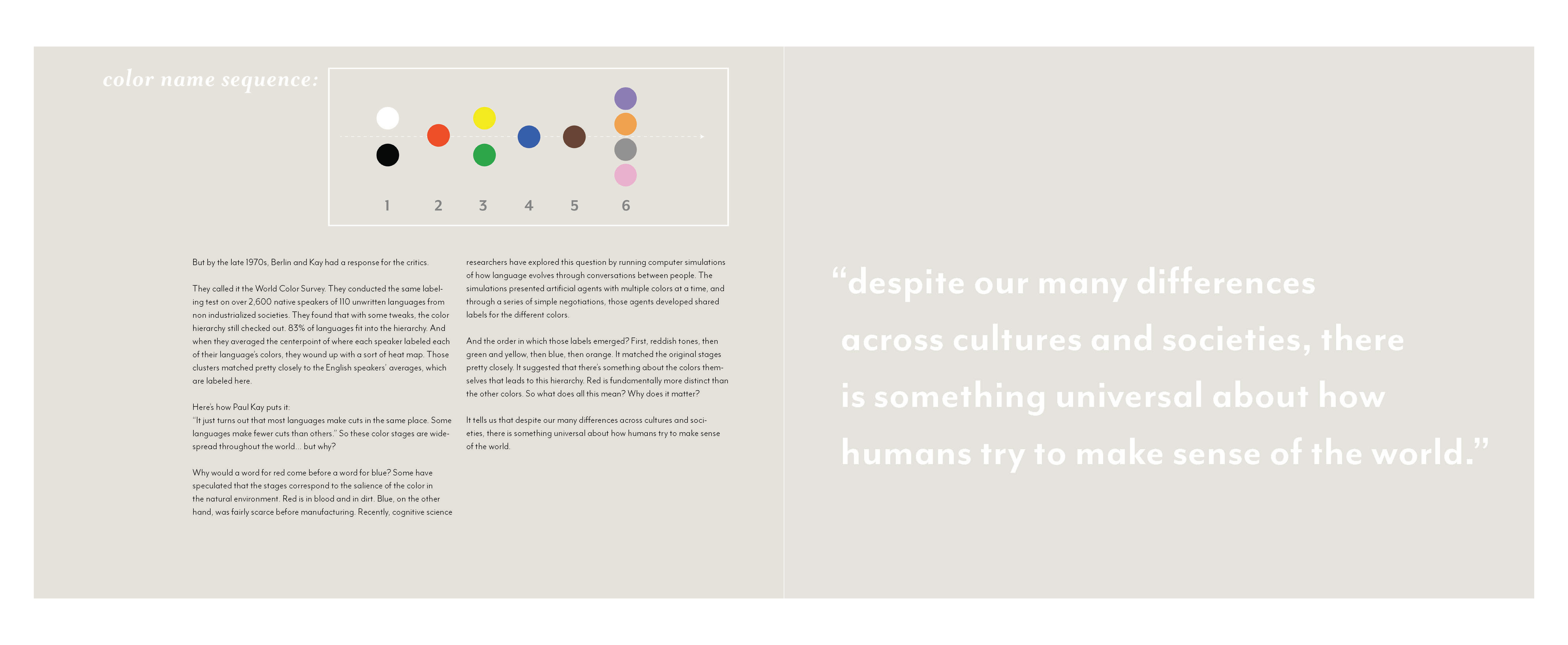 The graph shows what colors get names in languages. For example, the American language does not have a different word for "blue" and "sky blue," even though Russian does.