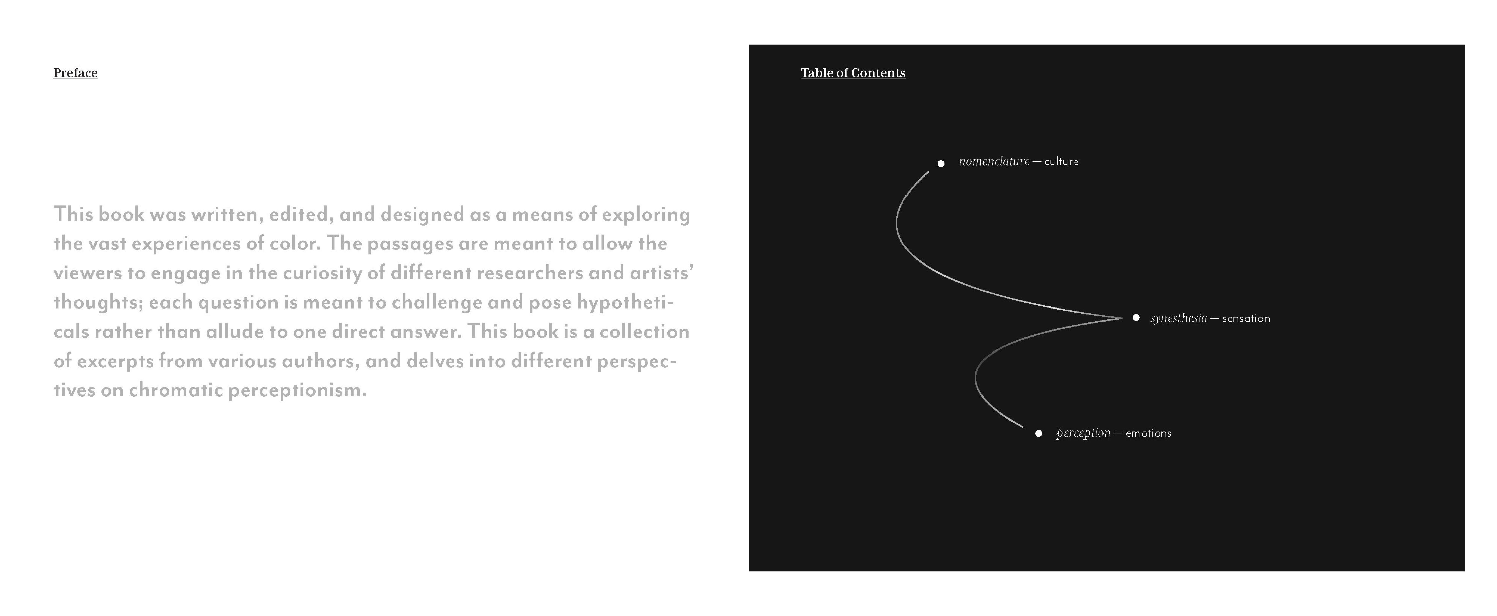 Close up Shots of the book. The cover was printed as a flat sheet, cut, and then folded over chip board. The pages were bound at the school print shop.