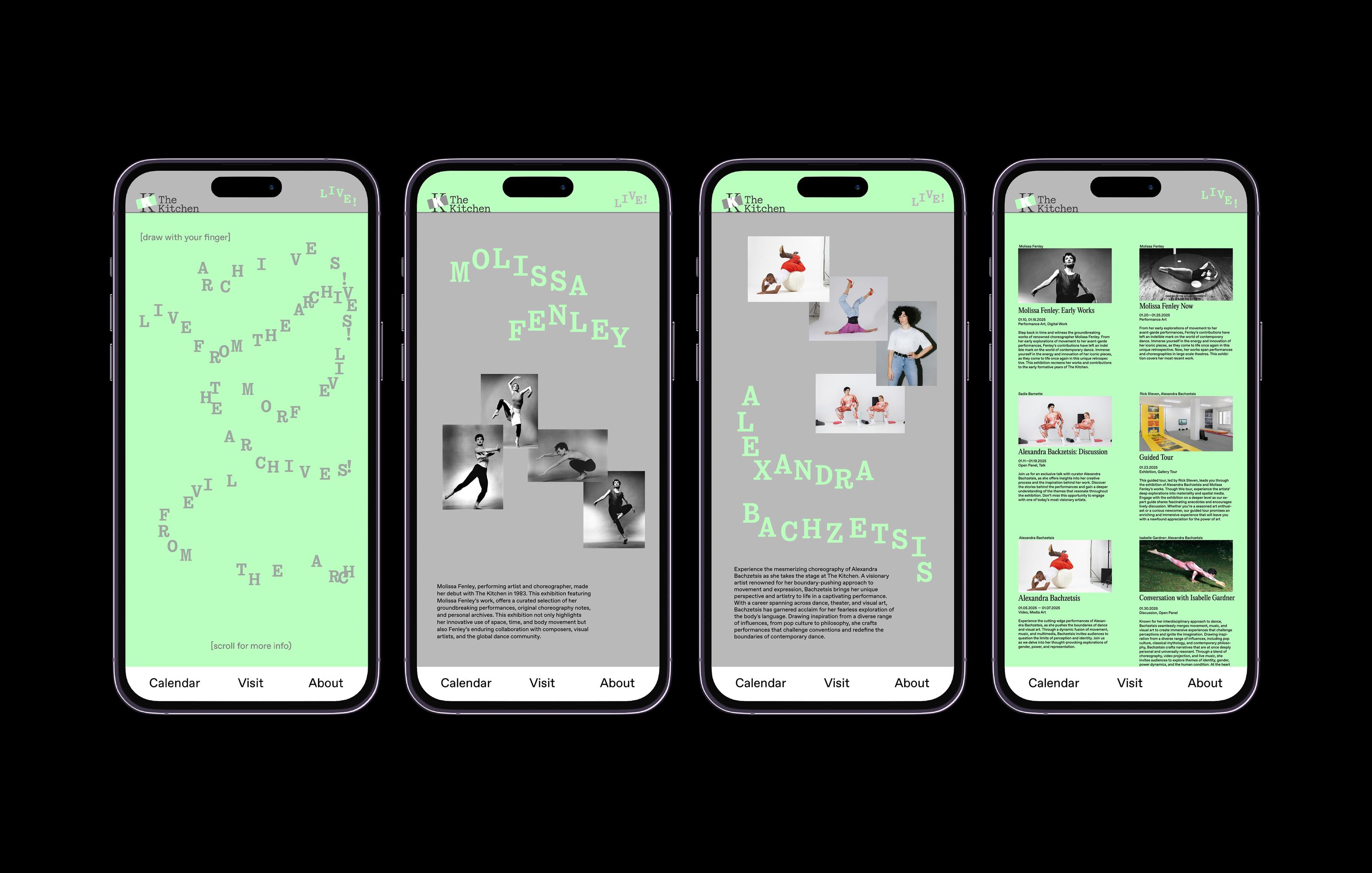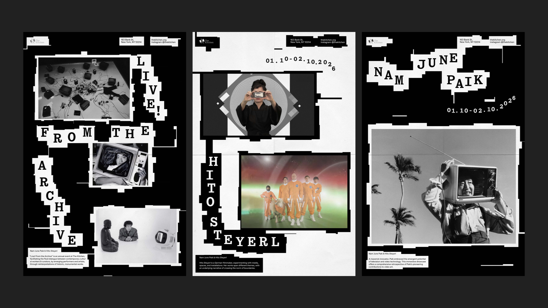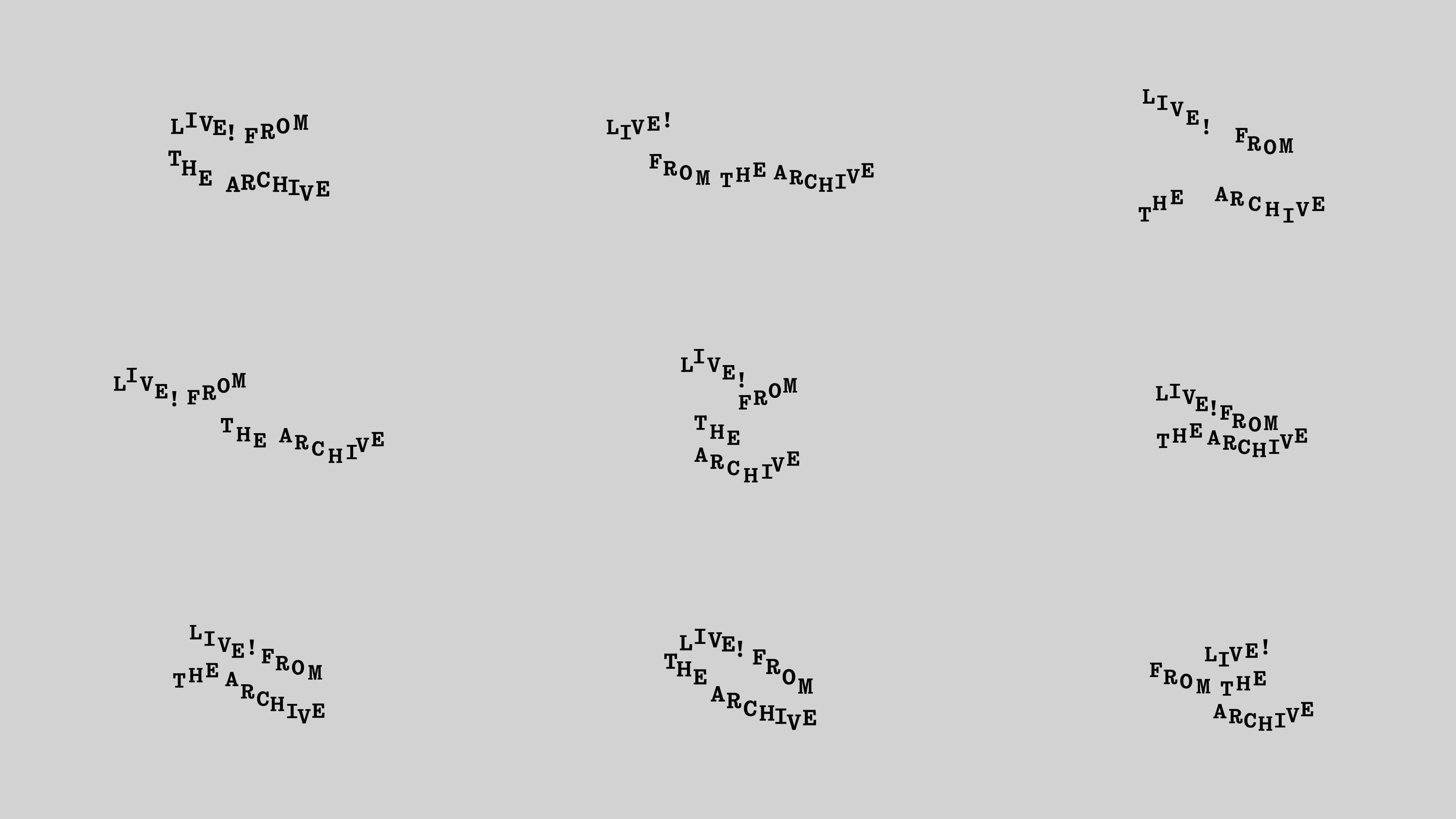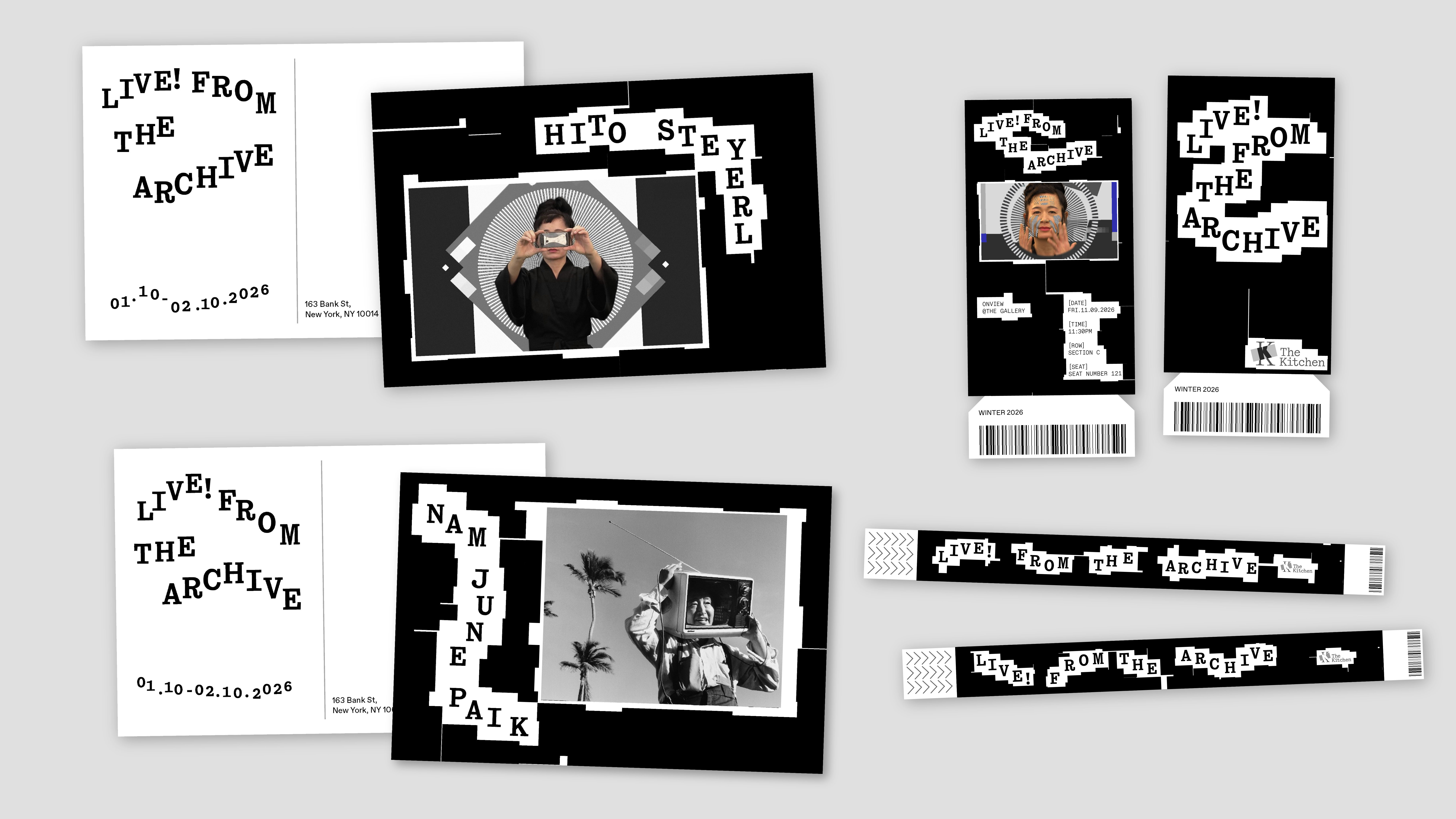 Live! From the Archives is a hypothetical month-long annual event that facilitates dialogue between historical founding artists of The Kitchen and contemporary curators, artists, and critics. The identity for this event is flexible and constantly in flux, symbolizing the constant emergence and growth of the definition of art.