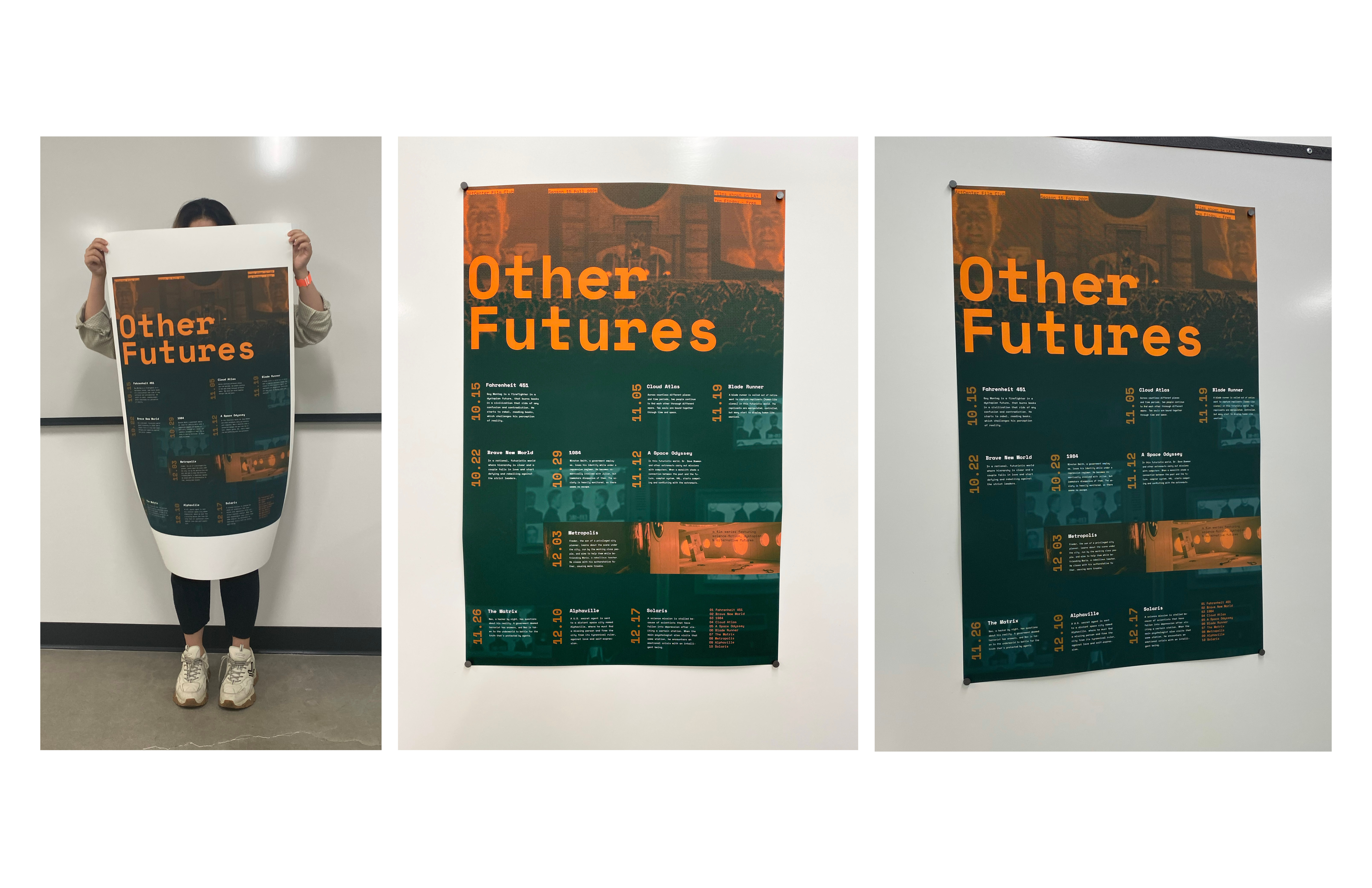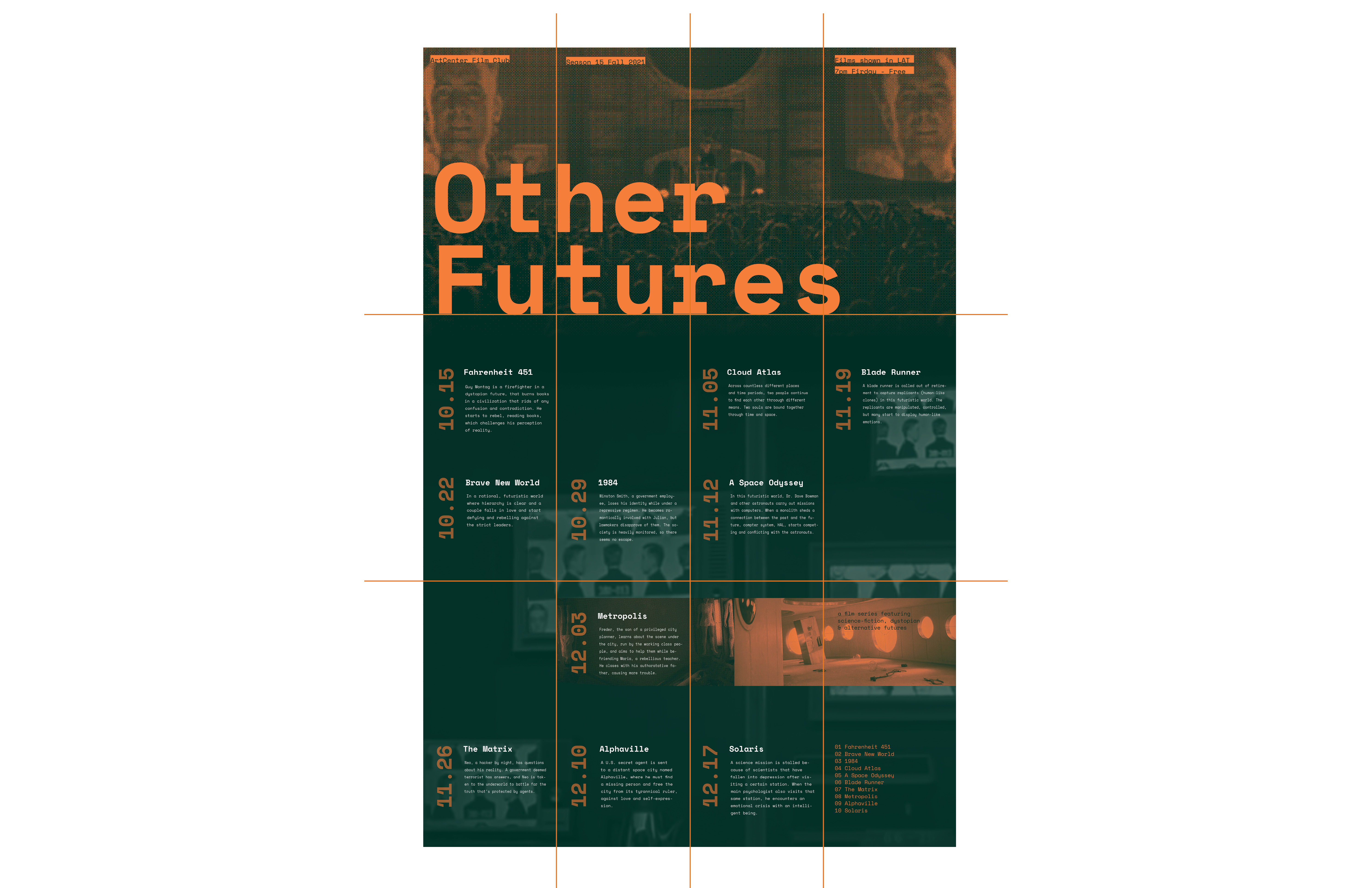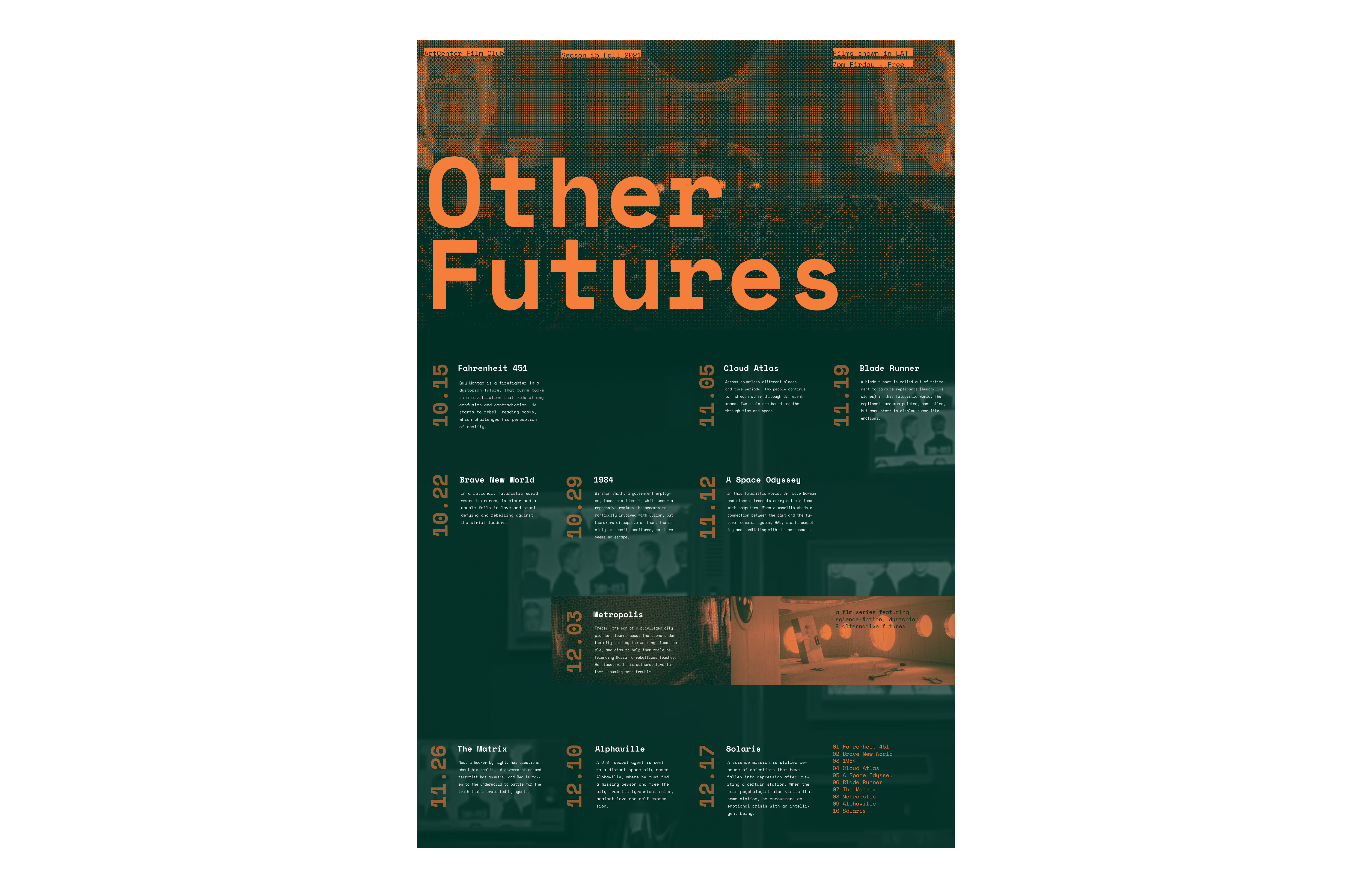 Image treatment exploration. We had to use a 2 color job and pull directly from movies ourselves (lower res,) so the treatment was important.