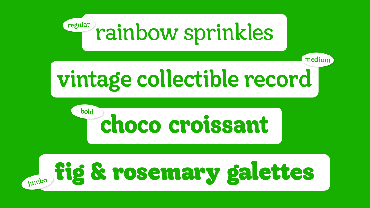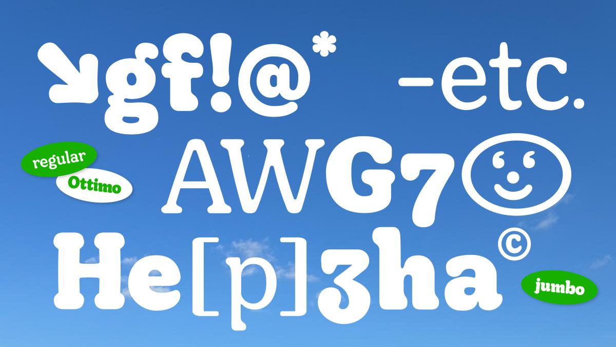 Ottimo is a contemporary font family inspired by warmth and familiarity. The family consists of four weights: regular, medium, bold, and jumbo. Though Ottimo has extremely fun characteristics, it does not lose legibility, or robustness. With rounded curves and contrast that gets increasingly dynamic with the heavier weights, Ottimo flexes four different weights with joy!