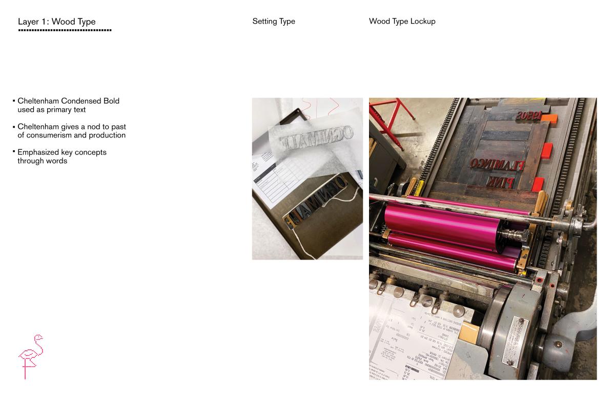 How to relate an essay and its lessons into a more visual and graphic poster. Pulling key concepts and terms into headlines on a poster. This project was my introduction into letterpress, and I navigated this new media. Sorting through type, setting type, and printing each and every edition of a print manually taught me to value the nuances and history of typography.