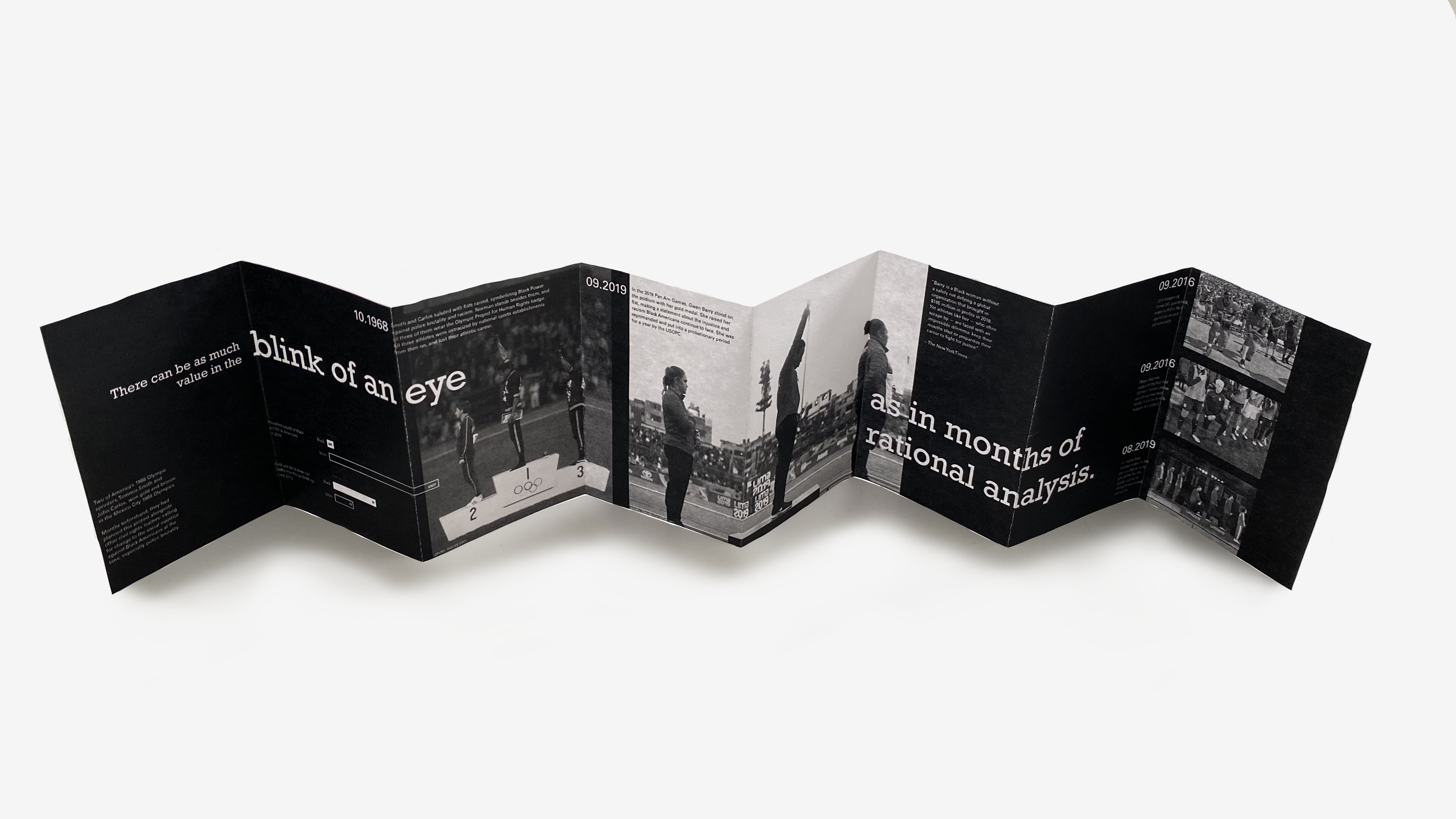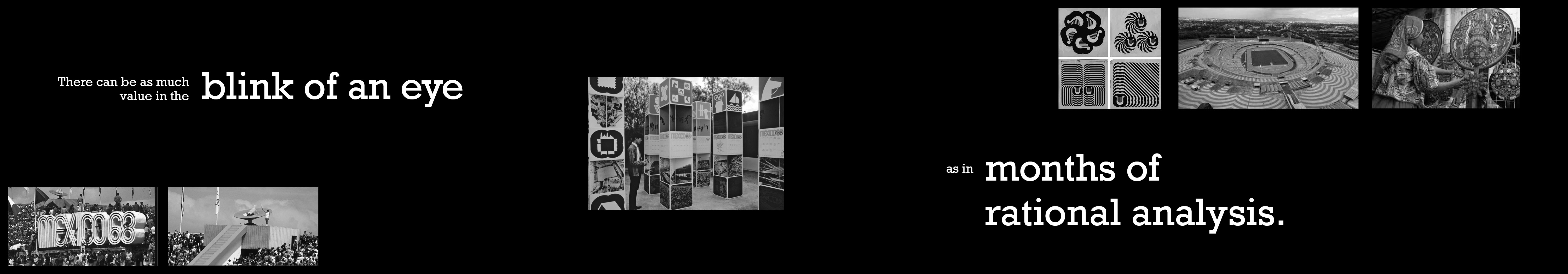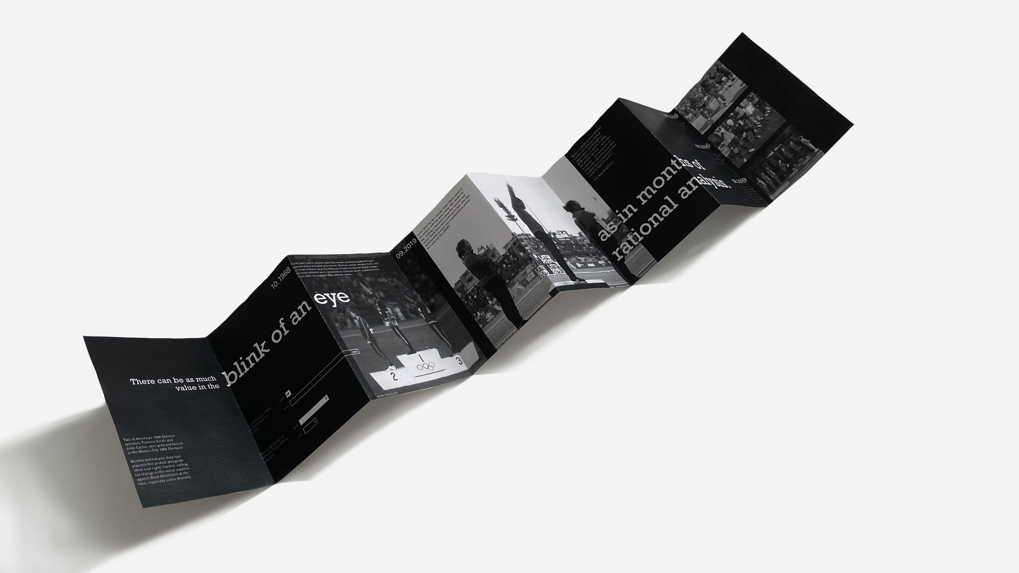Brainstorm: my given topic was the 1968 Olympics. From there, I delved into the Civil Rights Movement, the records set in that year, the branding design of the Olympics, and the podium protests that sparked that year.