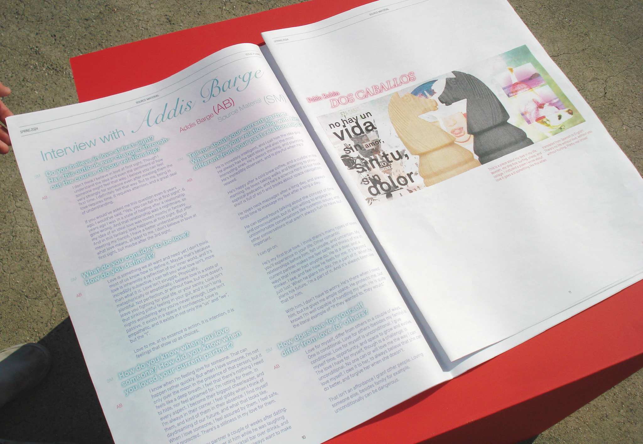 Source Material (SM) is a student-led publication supported by ArtCenter's Writing Center. SM is dedicated to publishing work that celebrates collaboration and challenges traditional, institutionalized design. Each issue encourages students and alumni to come together,