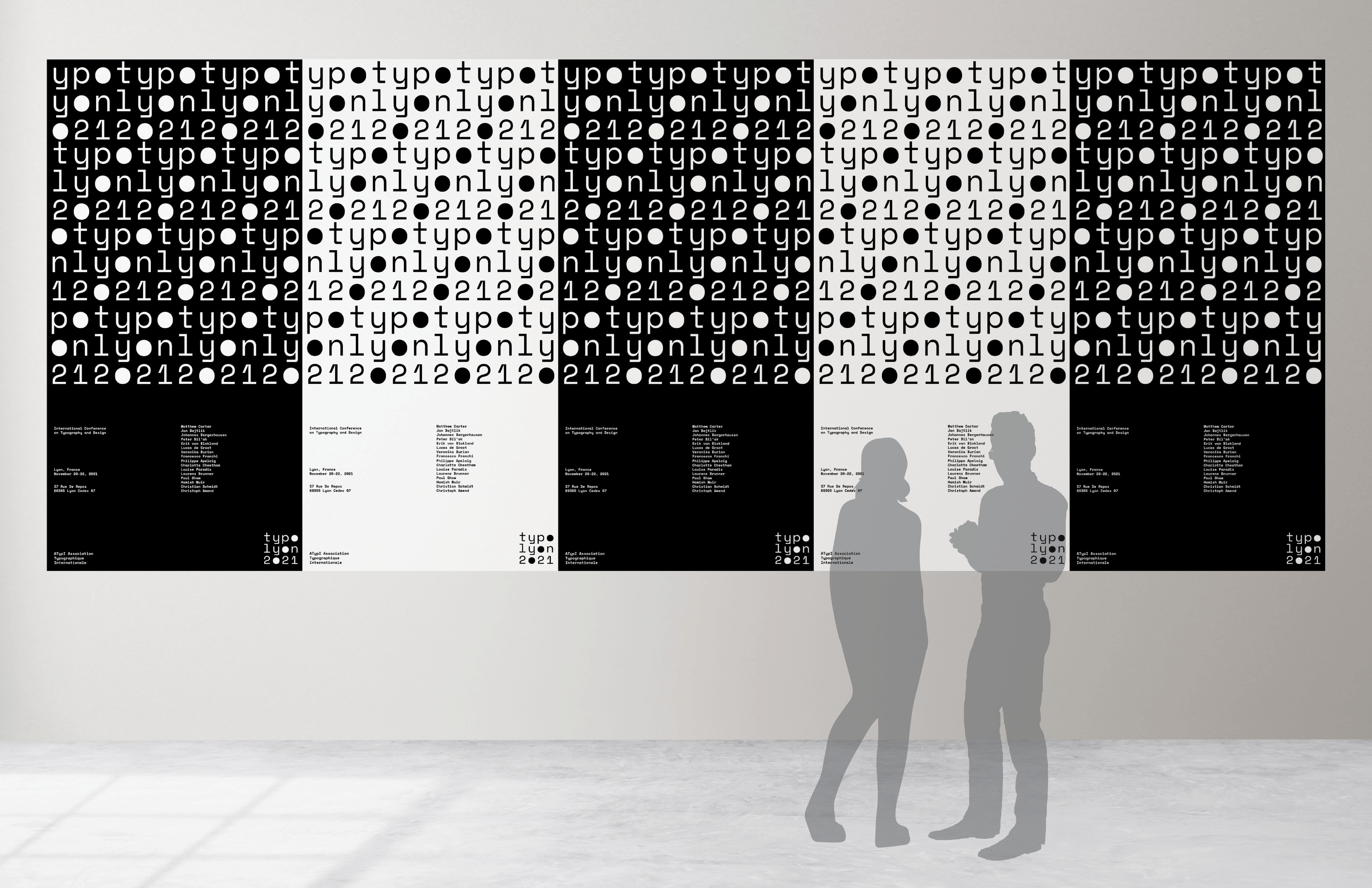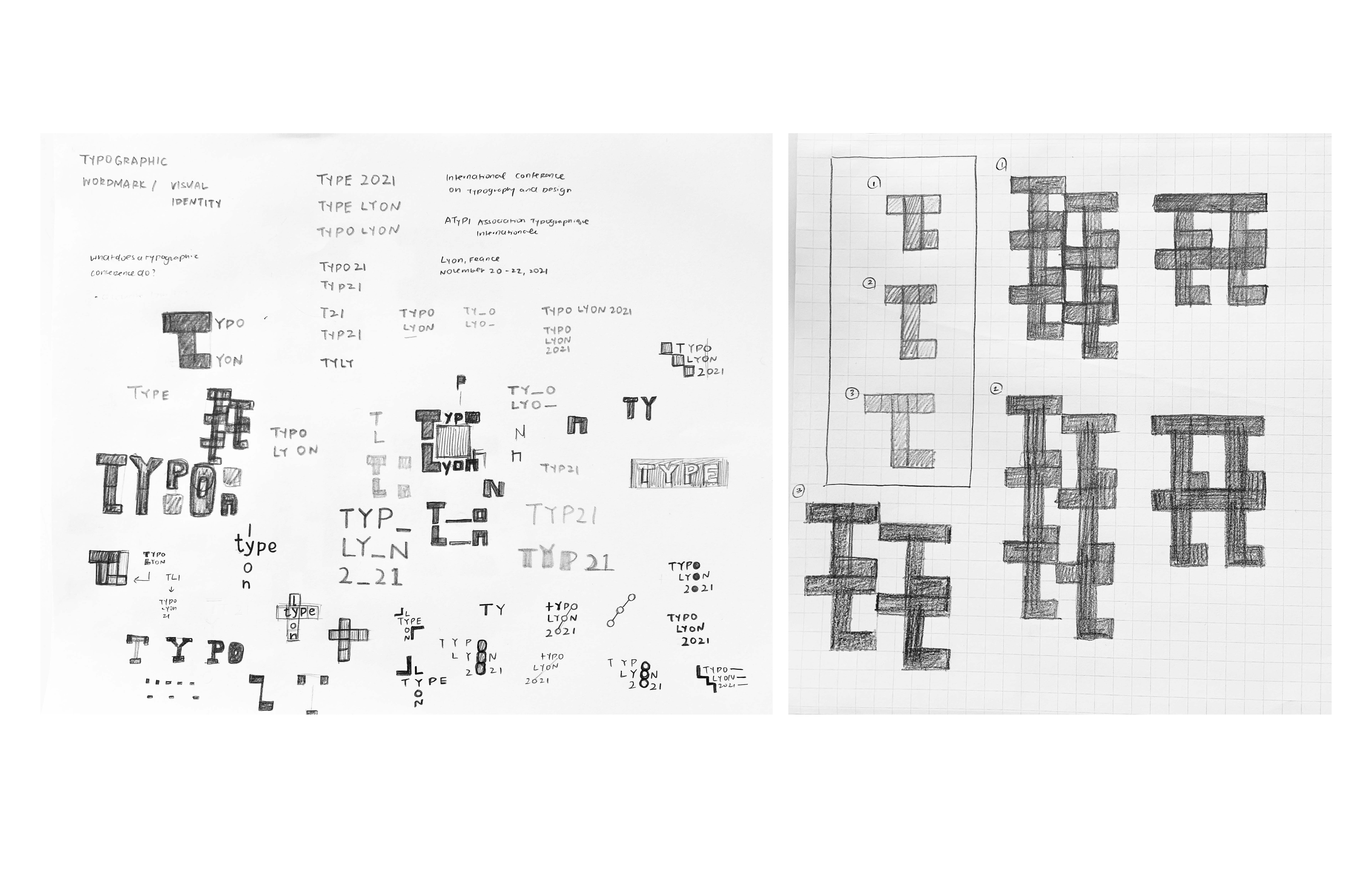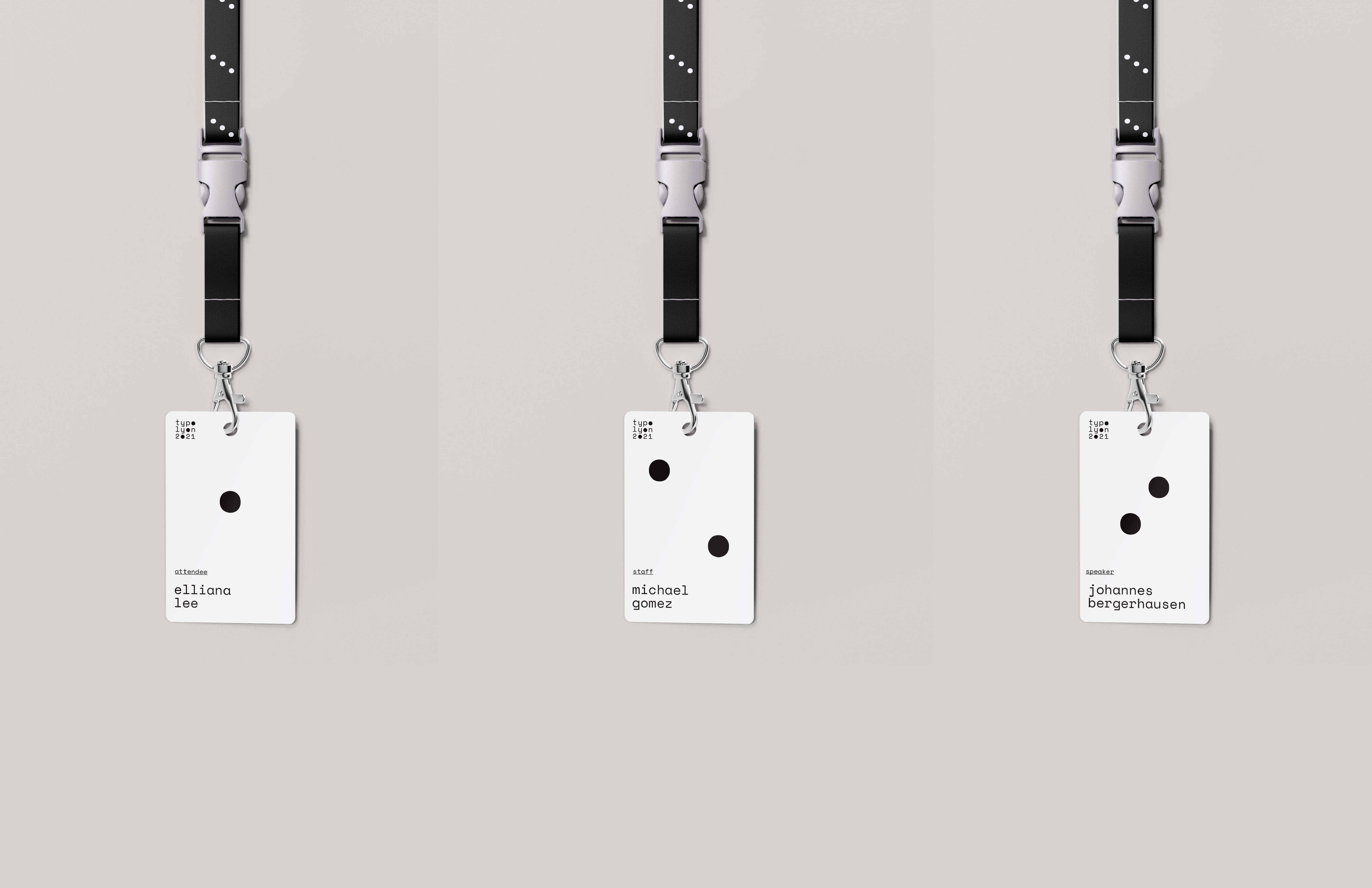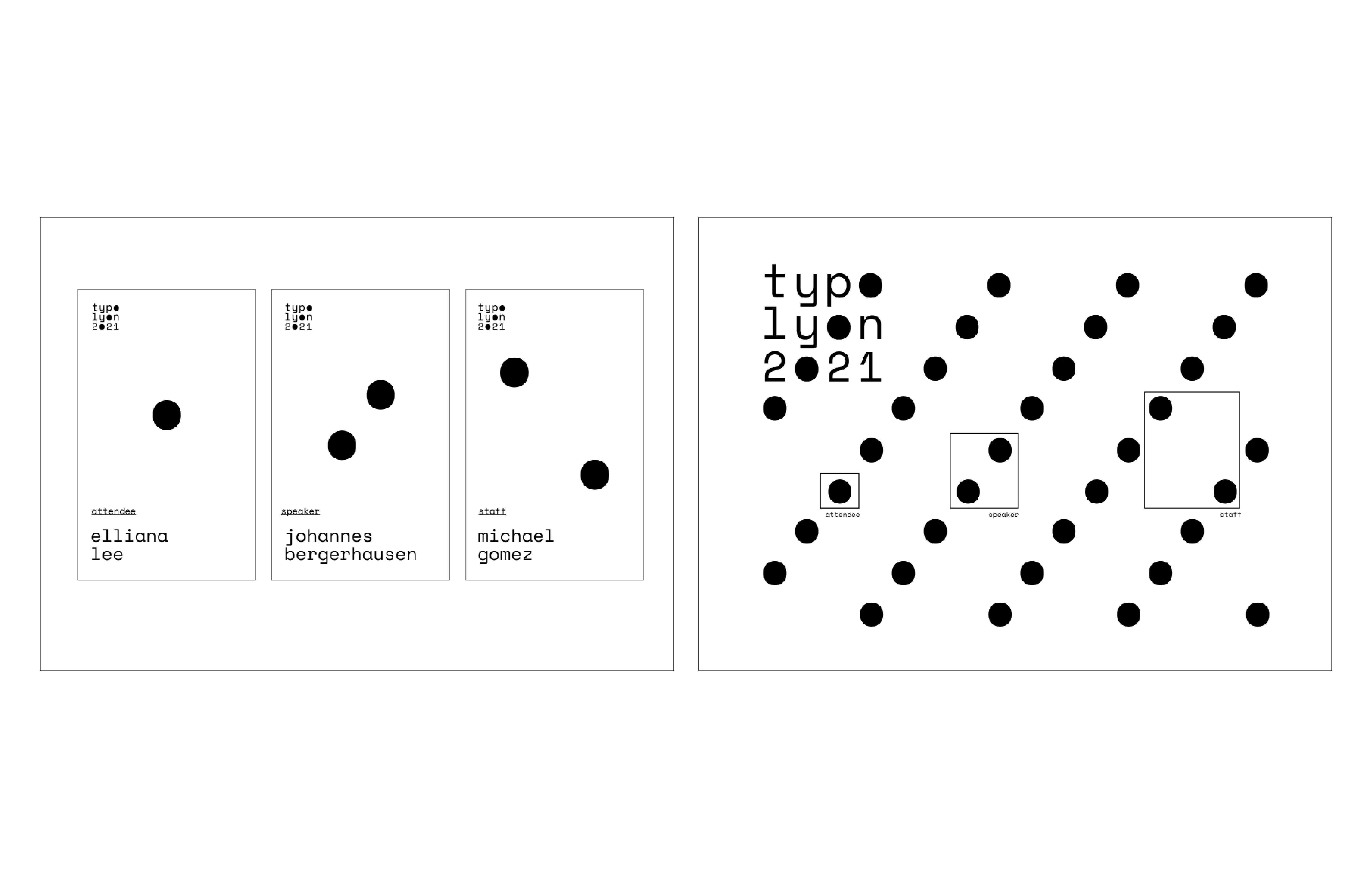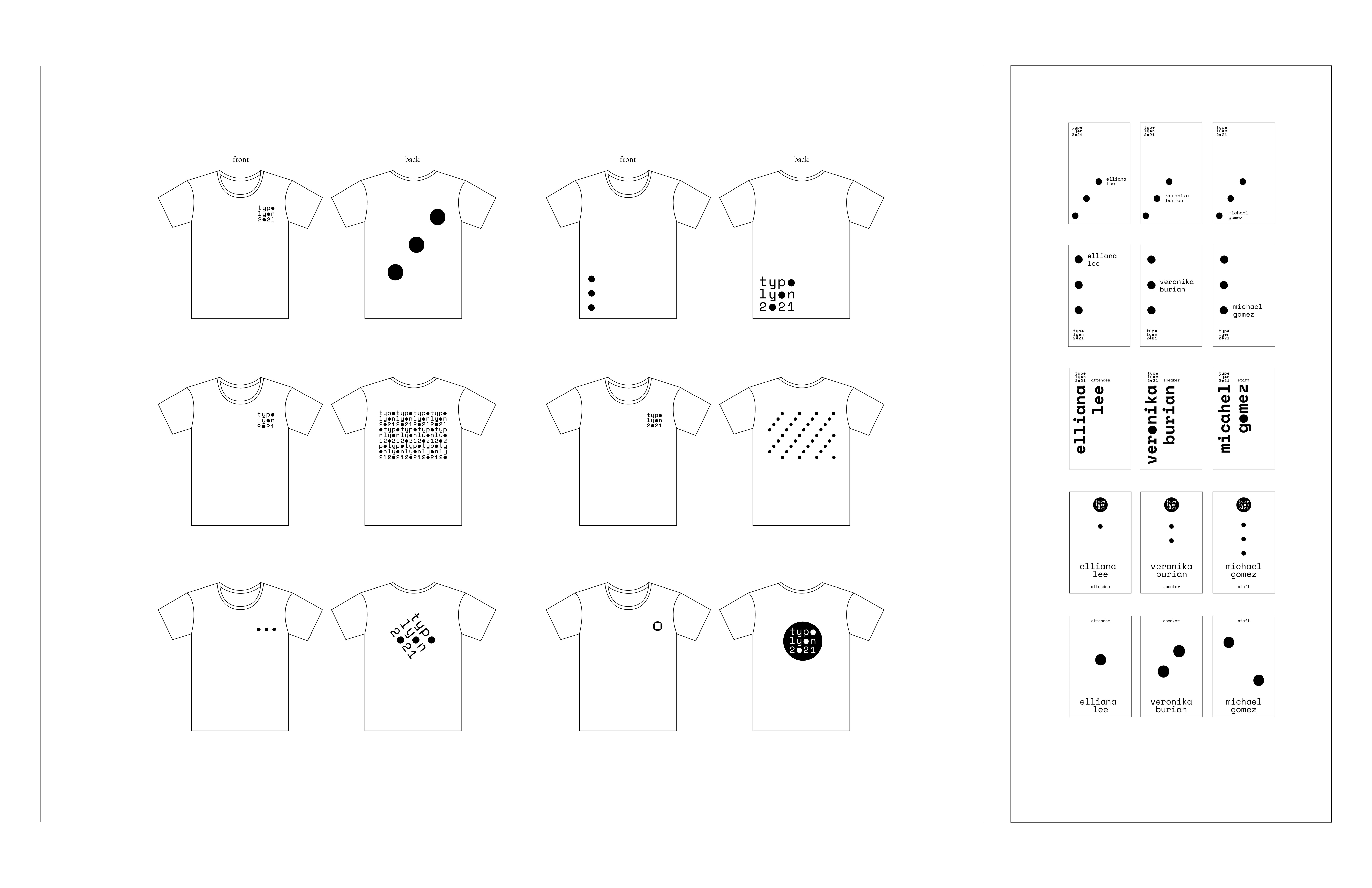 (TASK—typographic wordmark + visual identity for type design conference. Identity applied to 3’x 6’ posters, tees, and attendee badges) I approached this project by evaluating the role of typography, to imagine what a type design conference would be celebrating. In one iteration of the logo, I had three repeating circles, and this reflected themes of equivalence, timelessness, and wholeness. In a larger sense, typography is also about its impact and mission.