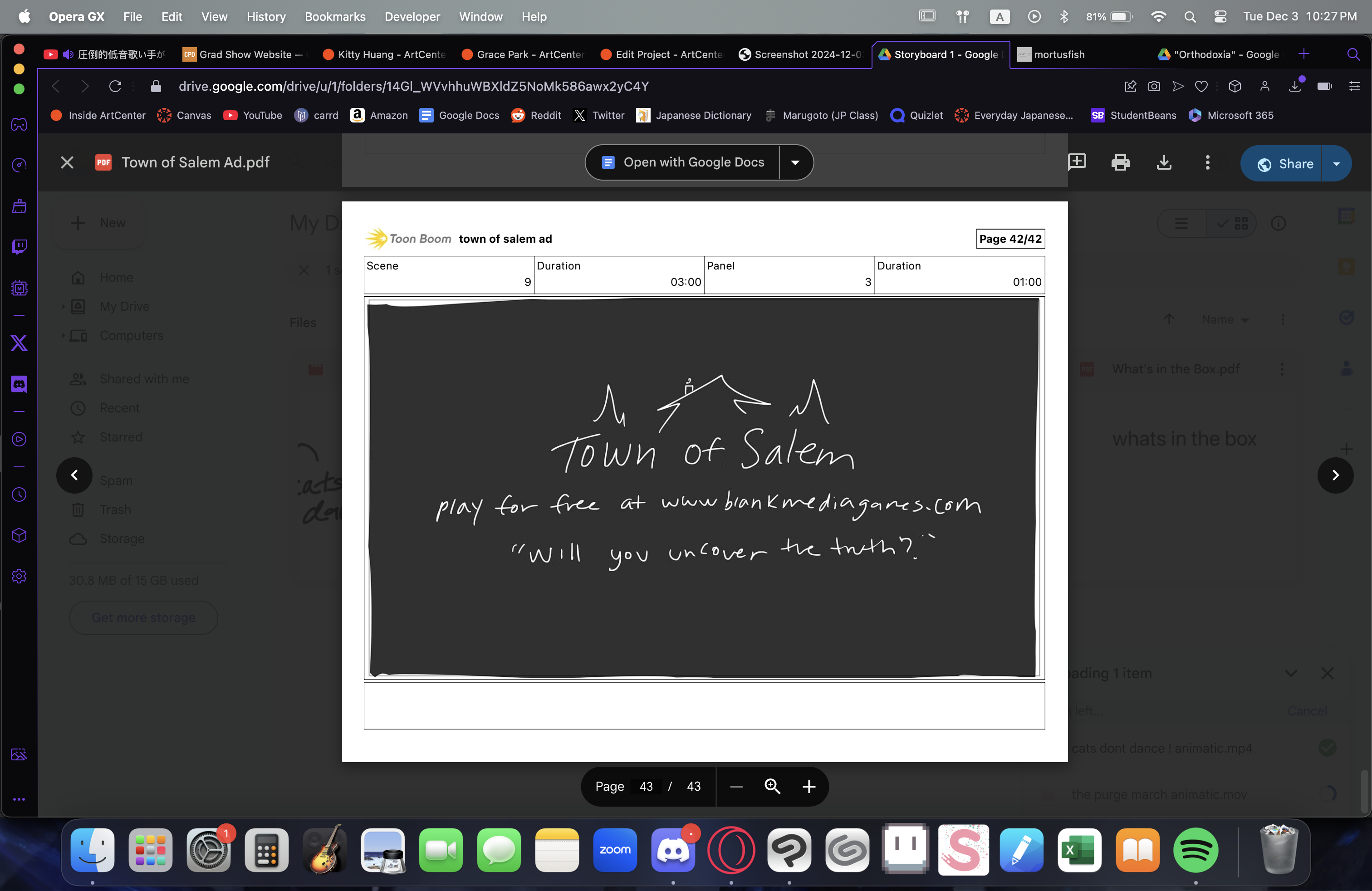 A collection of storyboards. Includes: "Cat's Don't Dance"-- Board and Audio Remake, "The Purge March"-- Original Story ft. 'The Purge March' song by Deco*27, What's In the Box, "Town of Salem" the Game Advertisement, and "Hoodwinked"-- Board and Audio Remake.