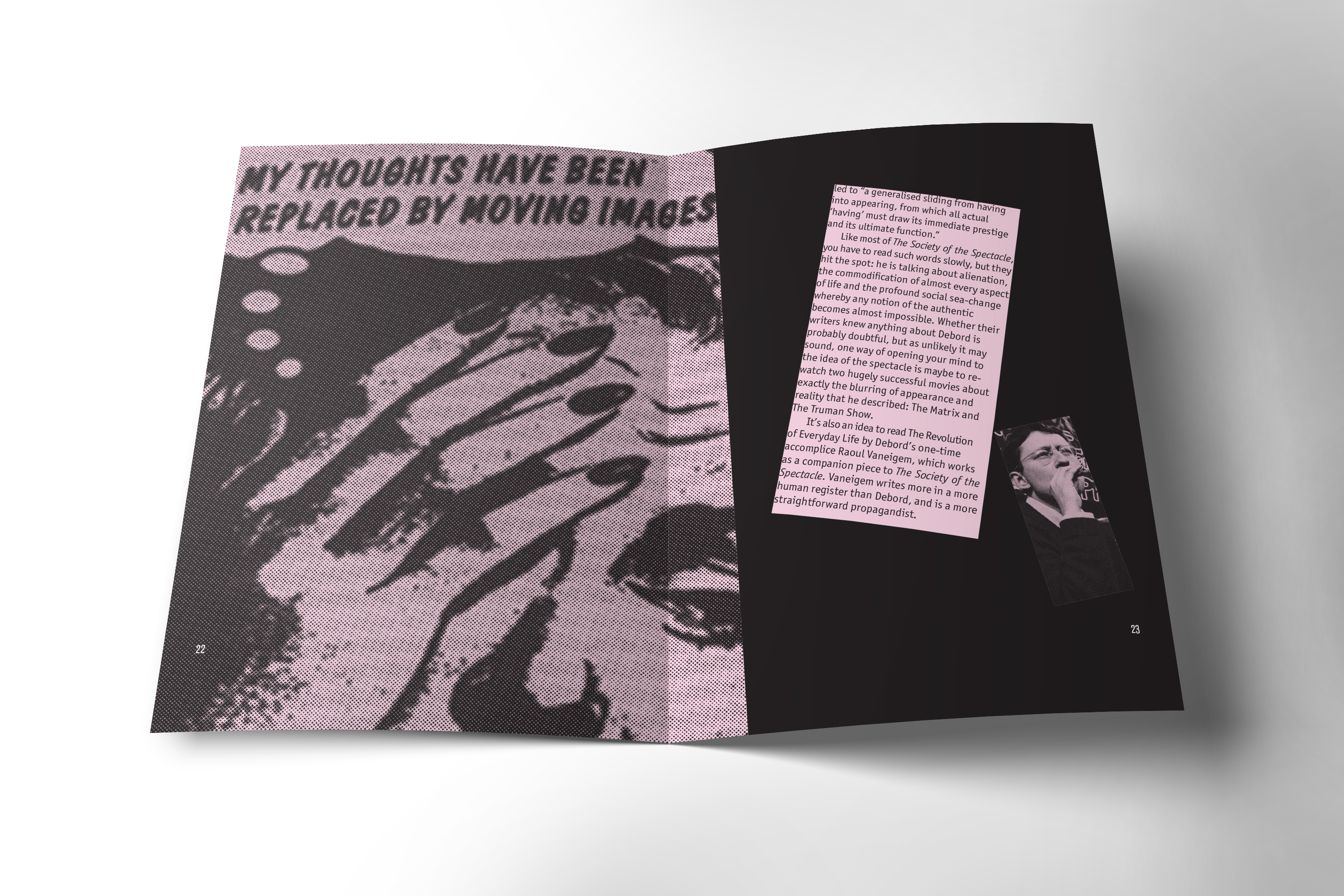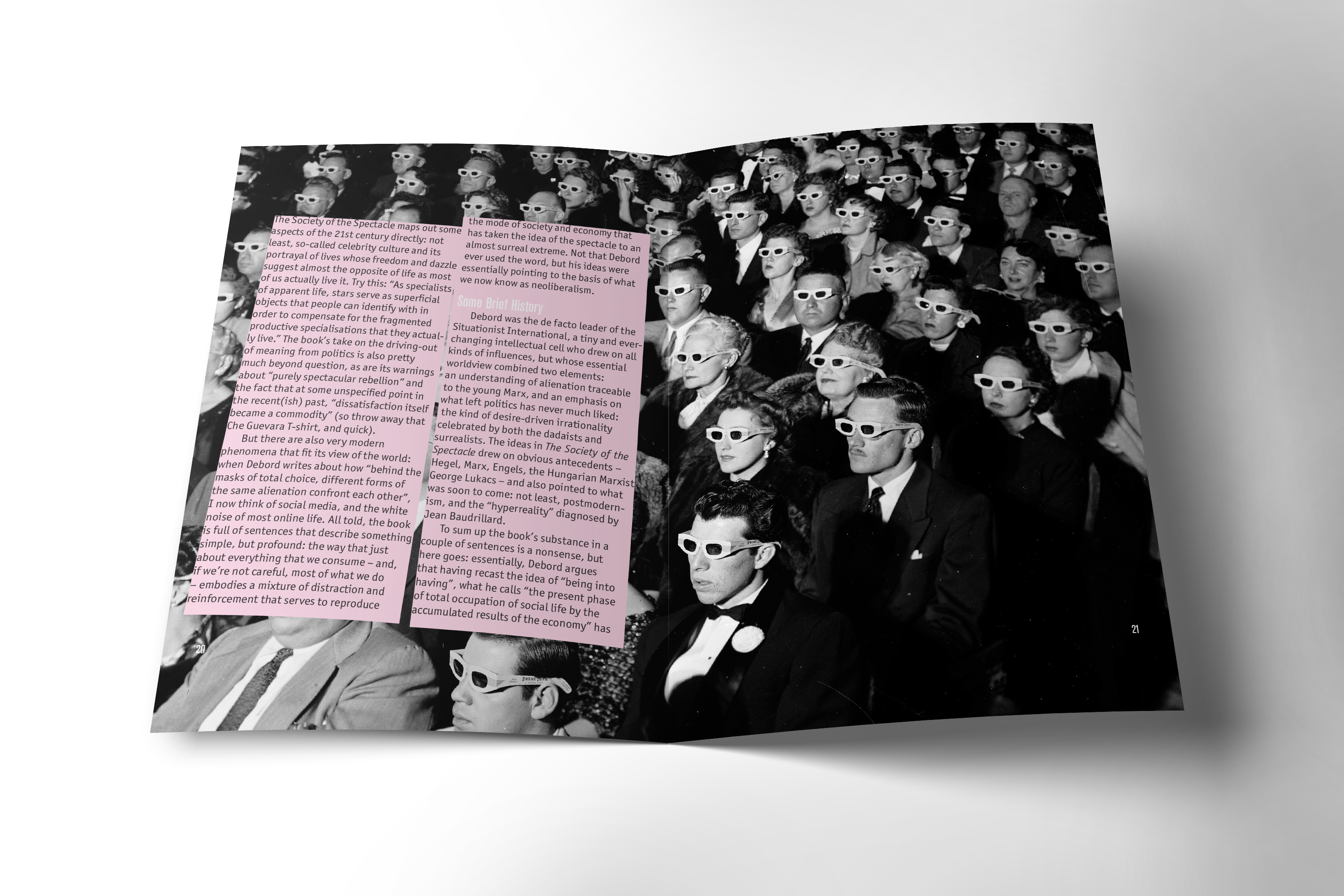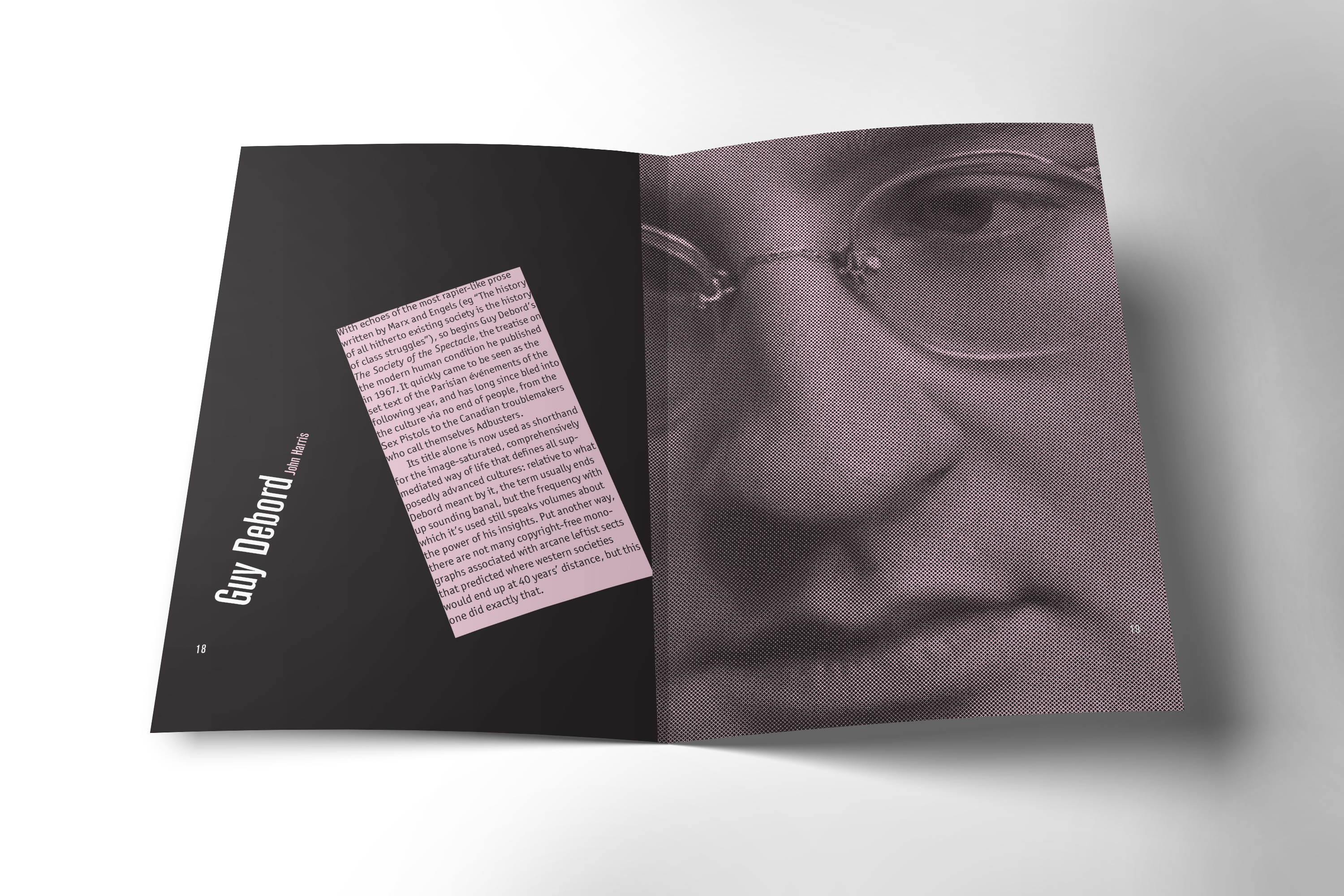 Anti-Social Followers is a concept zine (art magazine). It's content focuses on avant-garde theorists and a contrasting idea on big tech companies. The editorial piece has separate rhythm and pacing art directions that divide the two subjects; The avant-garde theorist articles carry a design sensibility focused on playful tension in it's typography, whereas the tech company articles are graphically styled in the "Archigram" fashion of the 1960's.