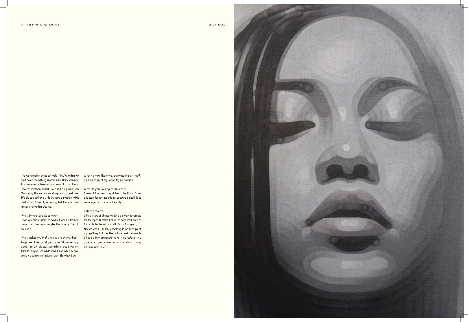 *This is currently a work in progress. I am designing an art book for hypothetical exhibition where I have curated the artists. The artists chosen are contemporary muralists and the theme they share is symbolism in the portraiture of their work. Additionally, my book features rarely shown indoor artwork by these selected artists whom are otherwise known for their large scale outdoor projects. Again, it's not done, but my goal here is to show some of my ideation and reiteration process.