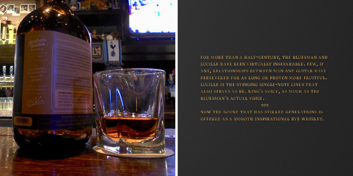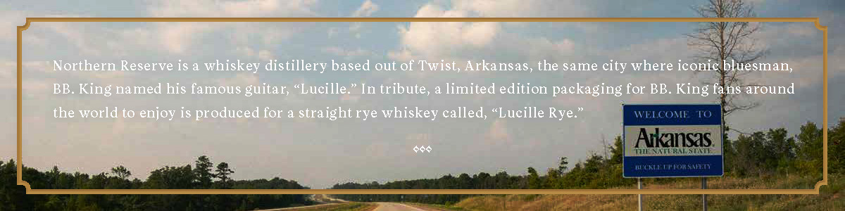 Northern Reserve is a whiskey distillery based out of Twist, Arkansas, the same city where iconic bluesman, BB. King named his famous guitar, “Lucille.” In tribute, a limited edition packaging for BB. King fans around the world to enjoy is produced for a straight rye whiskey called, “Lucille Rye.”