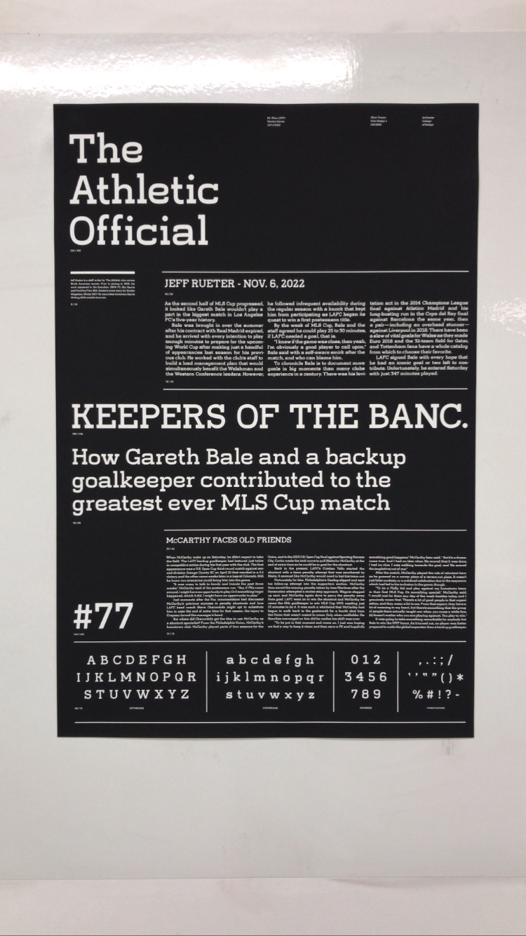 Mr. Elton, is a Slab Serif typeface designed by and named after myself. It is inspired by sports typography. Originally it was inspired by the letterforms of the Los Angeles Dodgers hat insignia. As research progressed the custom typeface created for The Athletic, an online sports website, served as the foundation for this font. The typeface is featured in a bold weight.