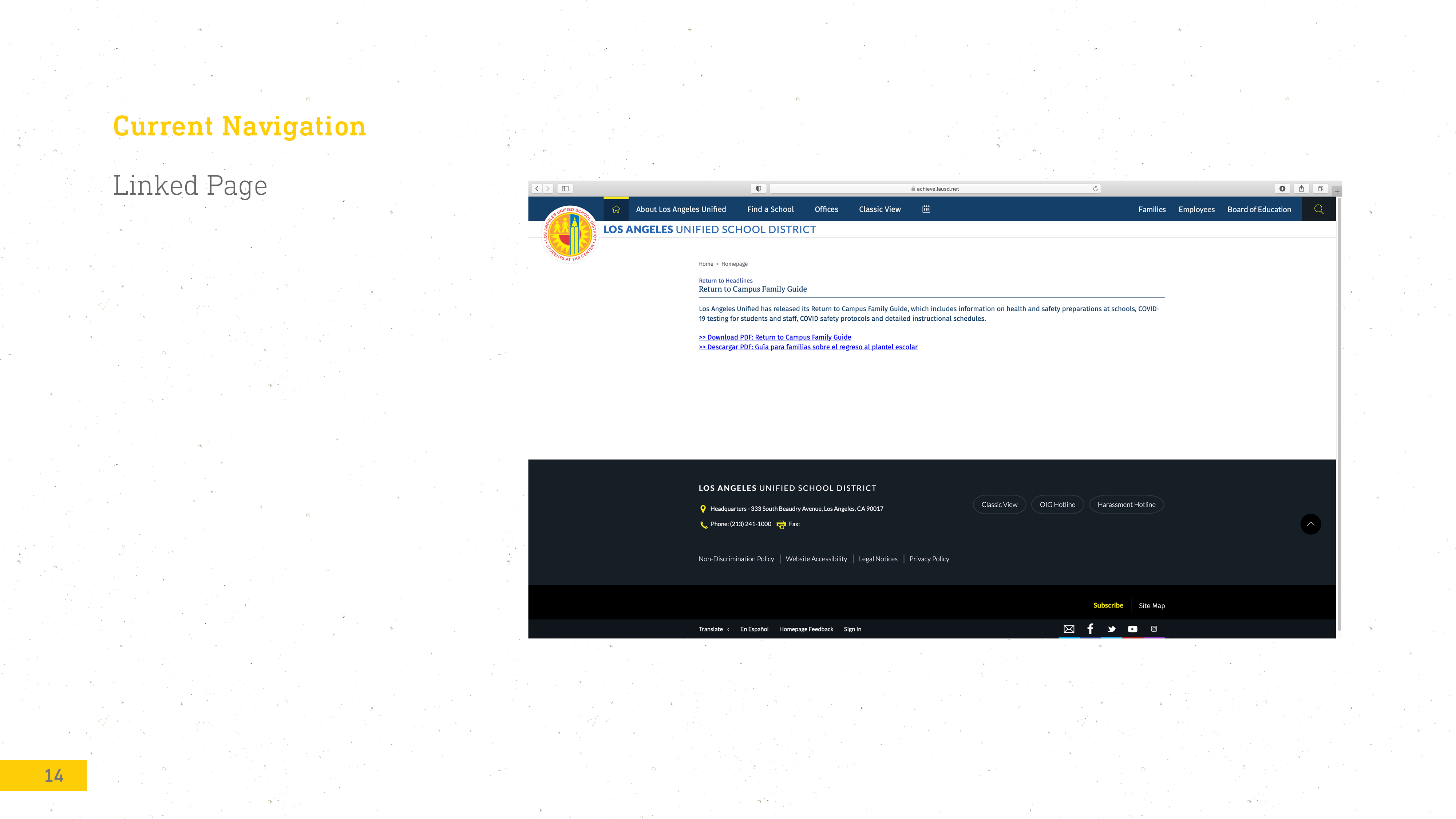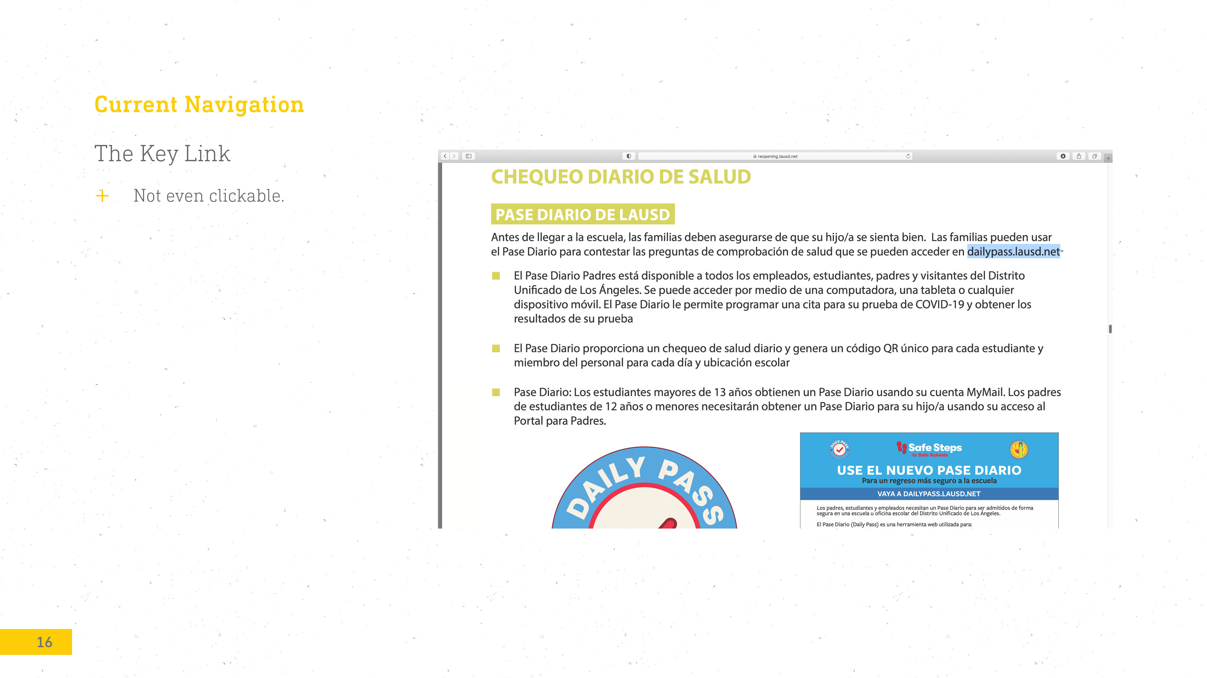 Art of research is a class focused on finding solutions to problems we are yet to face. Our final project would be about the research, not necessarily design aesthetics. My project led me to the discovery of an urgent issue related to Covid-19, that many schools within the LAUSD would soon deal with. The problem was language barriers and site navigation lacking for Spanish speaking parents regarding new guidelines post Covid. My solution was translation hub to better serve this community.