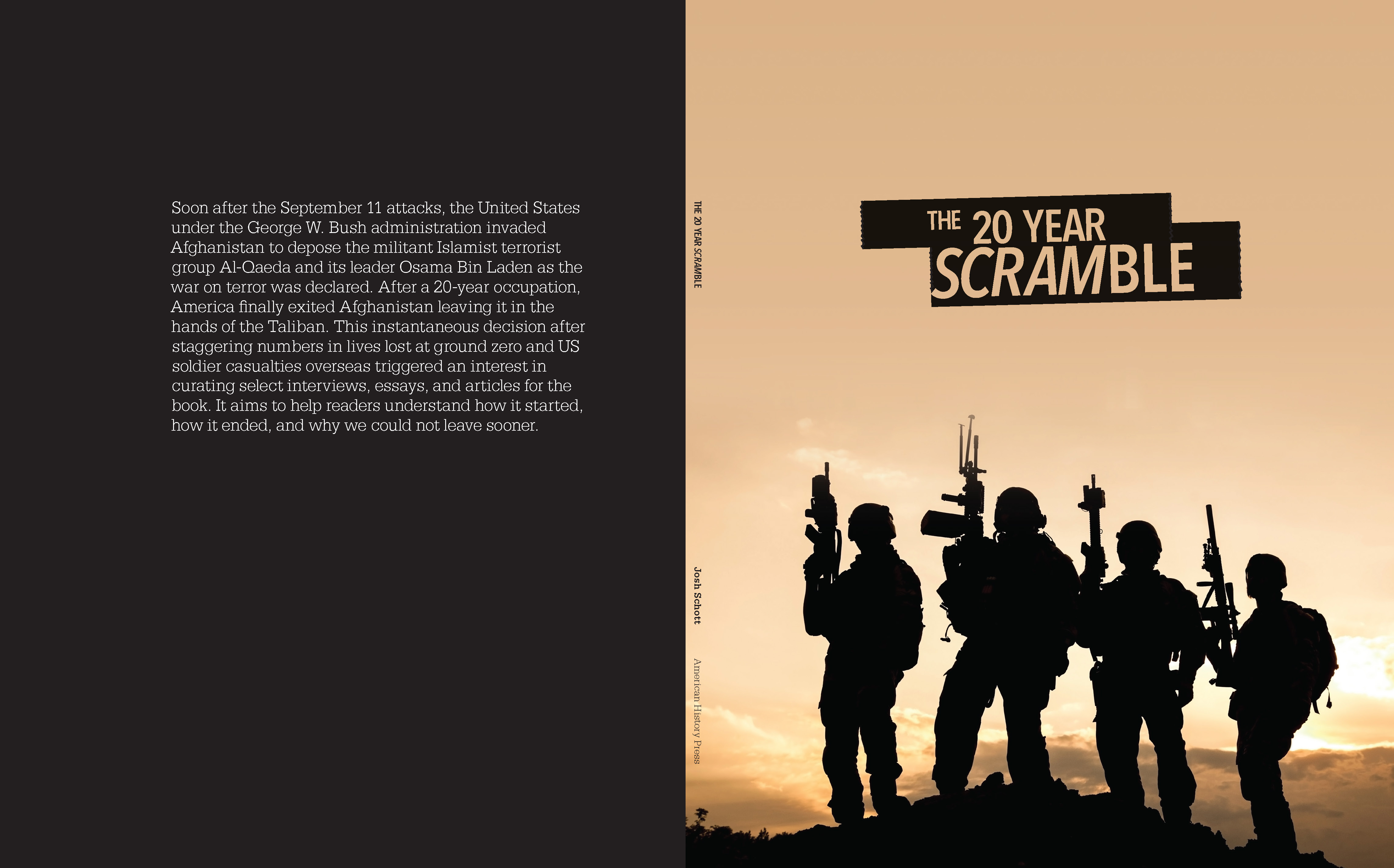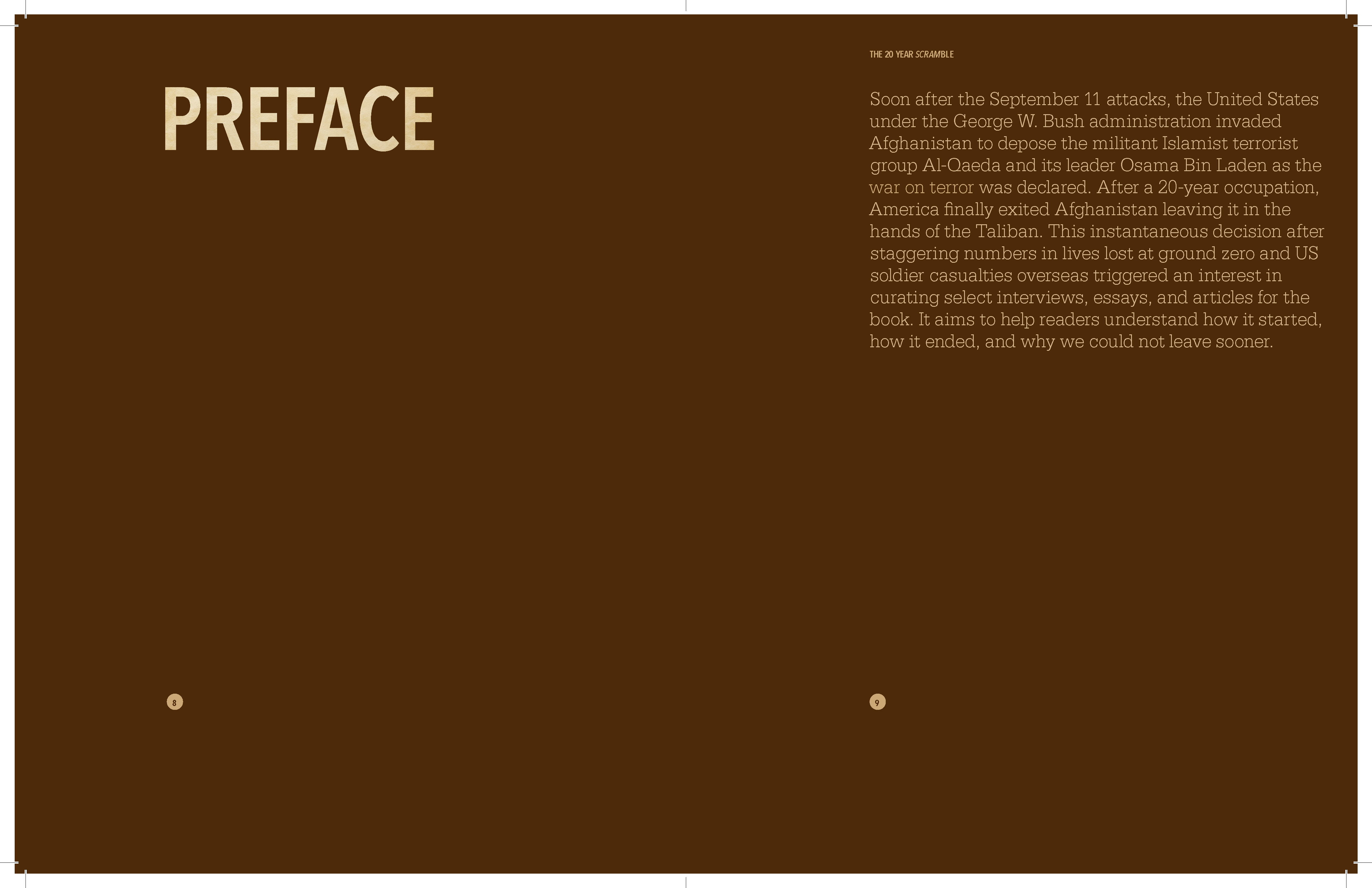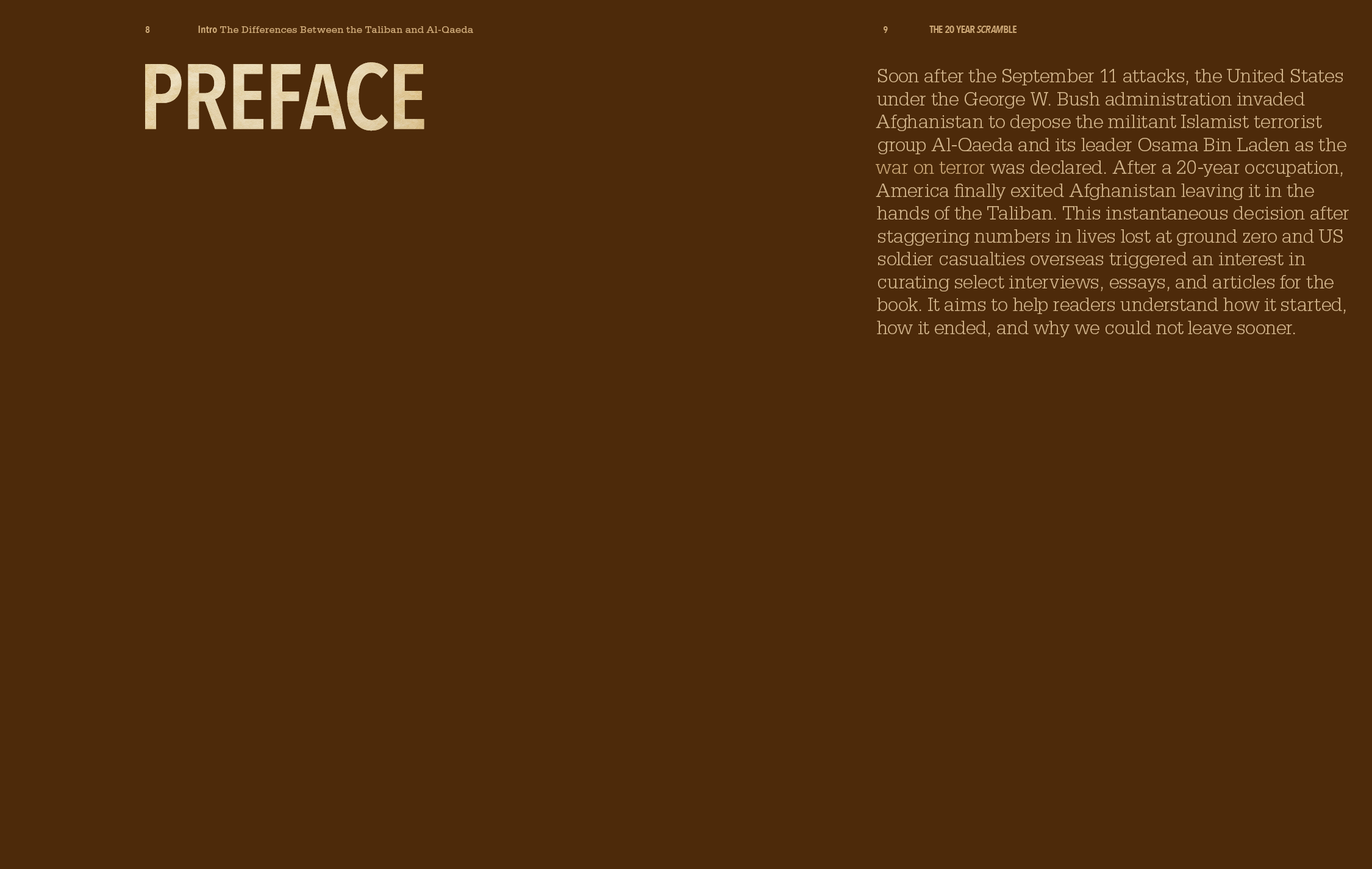 *Currently a work in Progress. Our assignment was to pick an 'ism to design a narrative book around. I chose militarism specifically focusing on the US occupation in Afghanistan. With the news of a sudden departure of US forces and refugee evacuations after nearly 20 year of occupation, I thought this would make a relevant topic for my narrative project. It is still in the works, but I wanted to share my process and iterations for stylized initial spreads, section dividers, and covers.