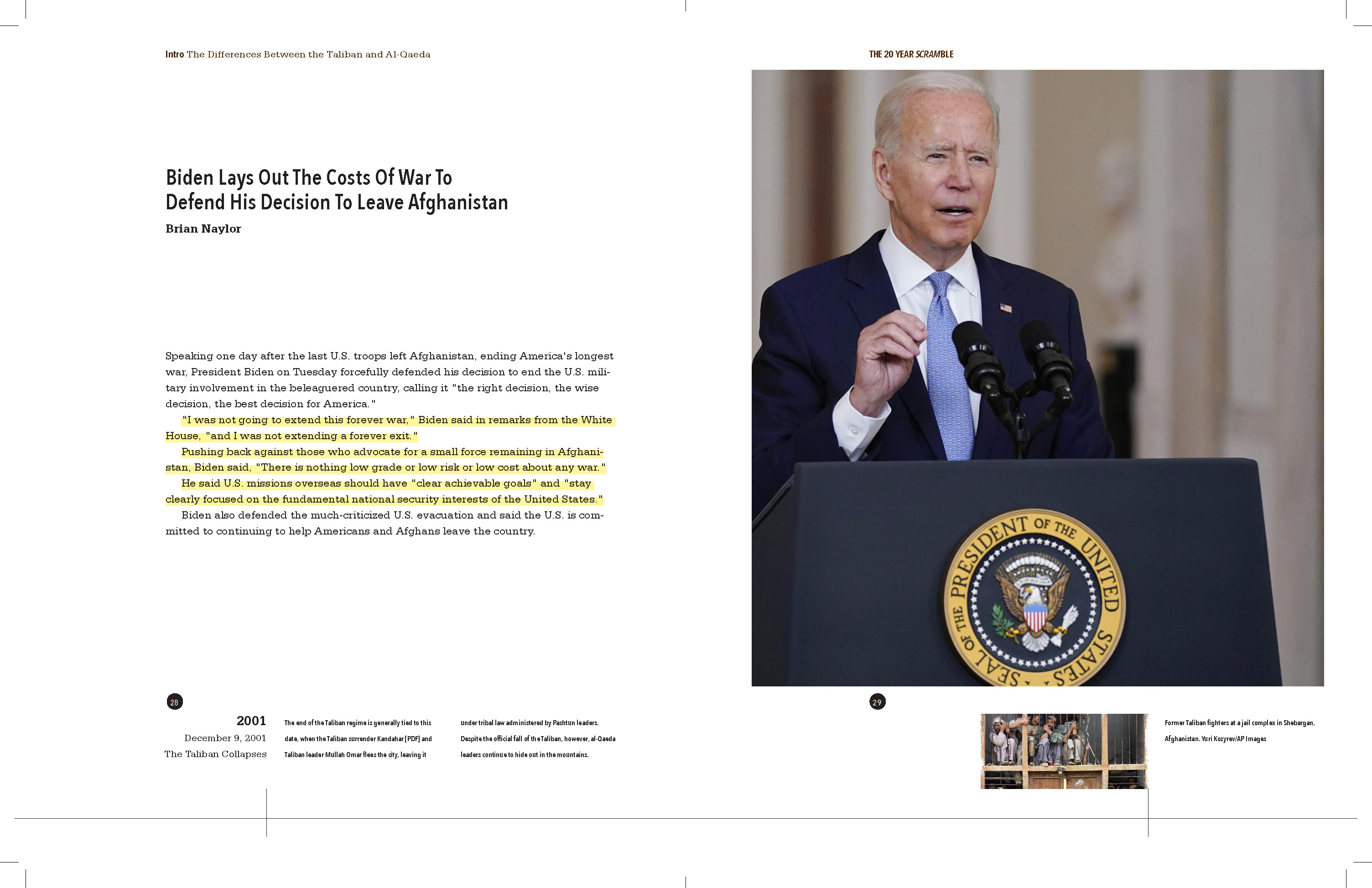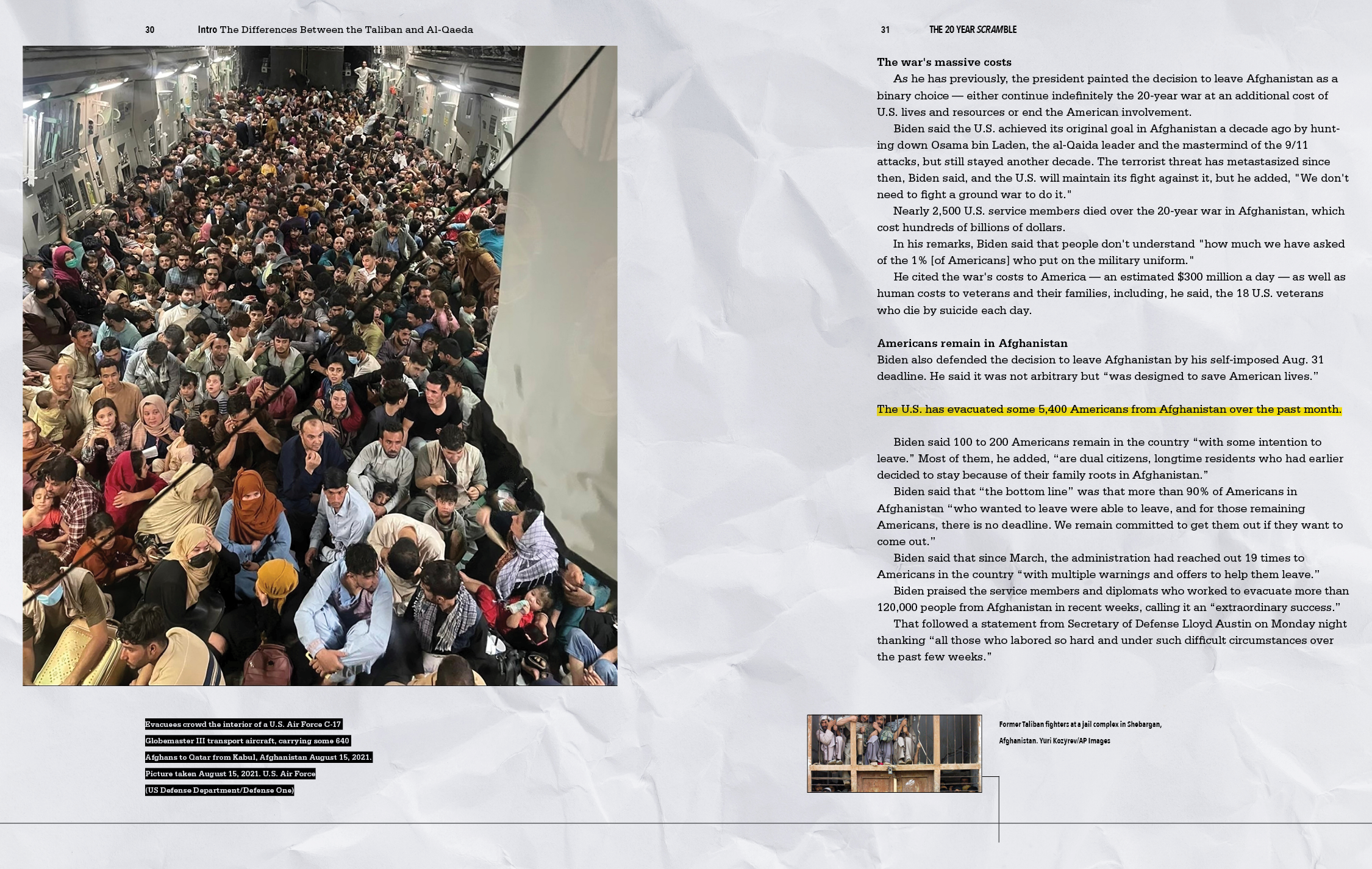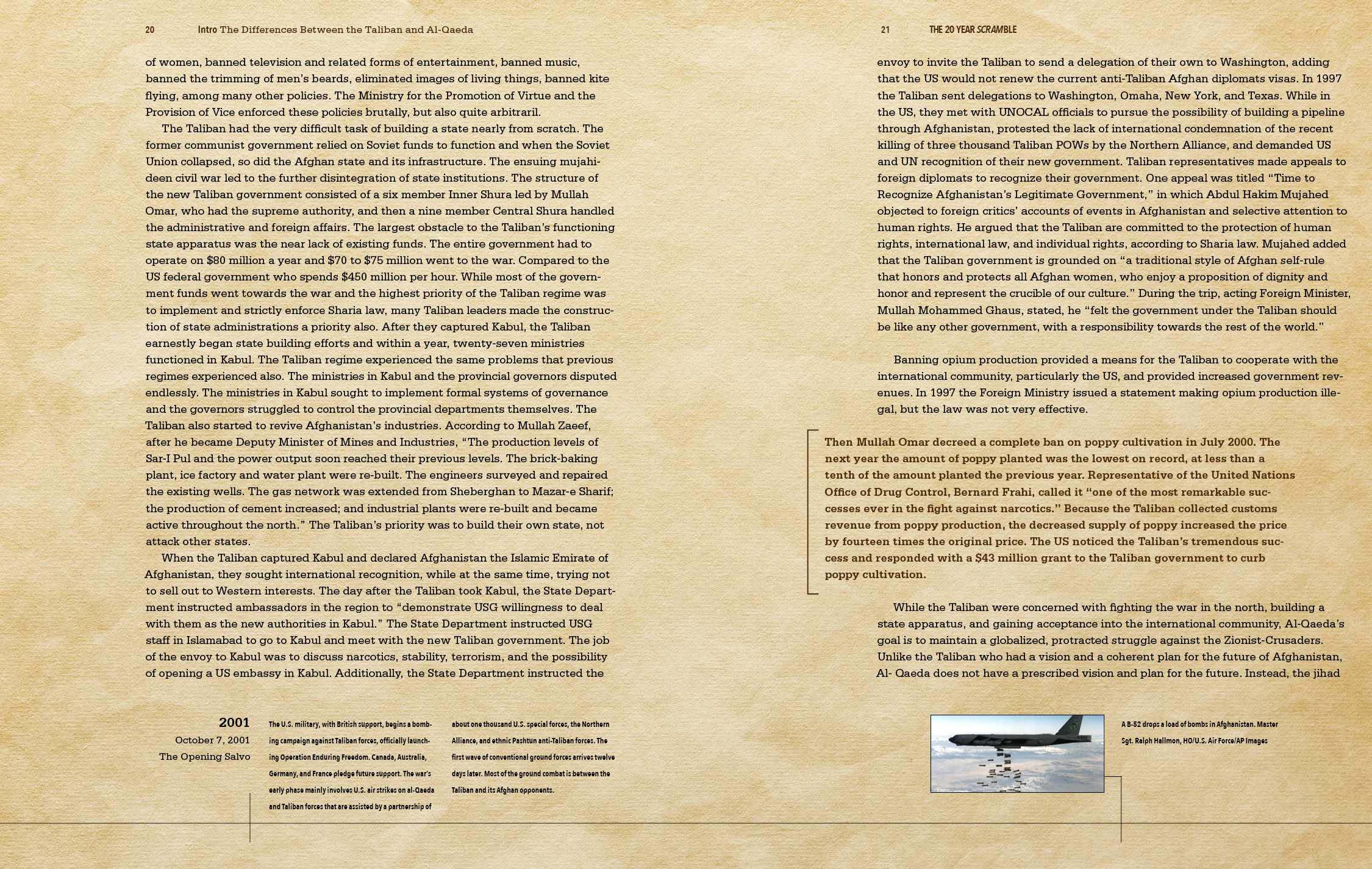 *Currently a work in Progress. Our assignment was to pick an 'ism to design a narrative book around. I chose militarism specifically focusing on the US occupation in Afghanistan. With the news of a sudden departure of US forces and refugee evacuations after nearly 20 year of occupation, I thought this would make a relevant topic for my narrative project. It is still in the works, but I wanted to share my process and iterations for stylized initial spreads, section dividers, and covers.