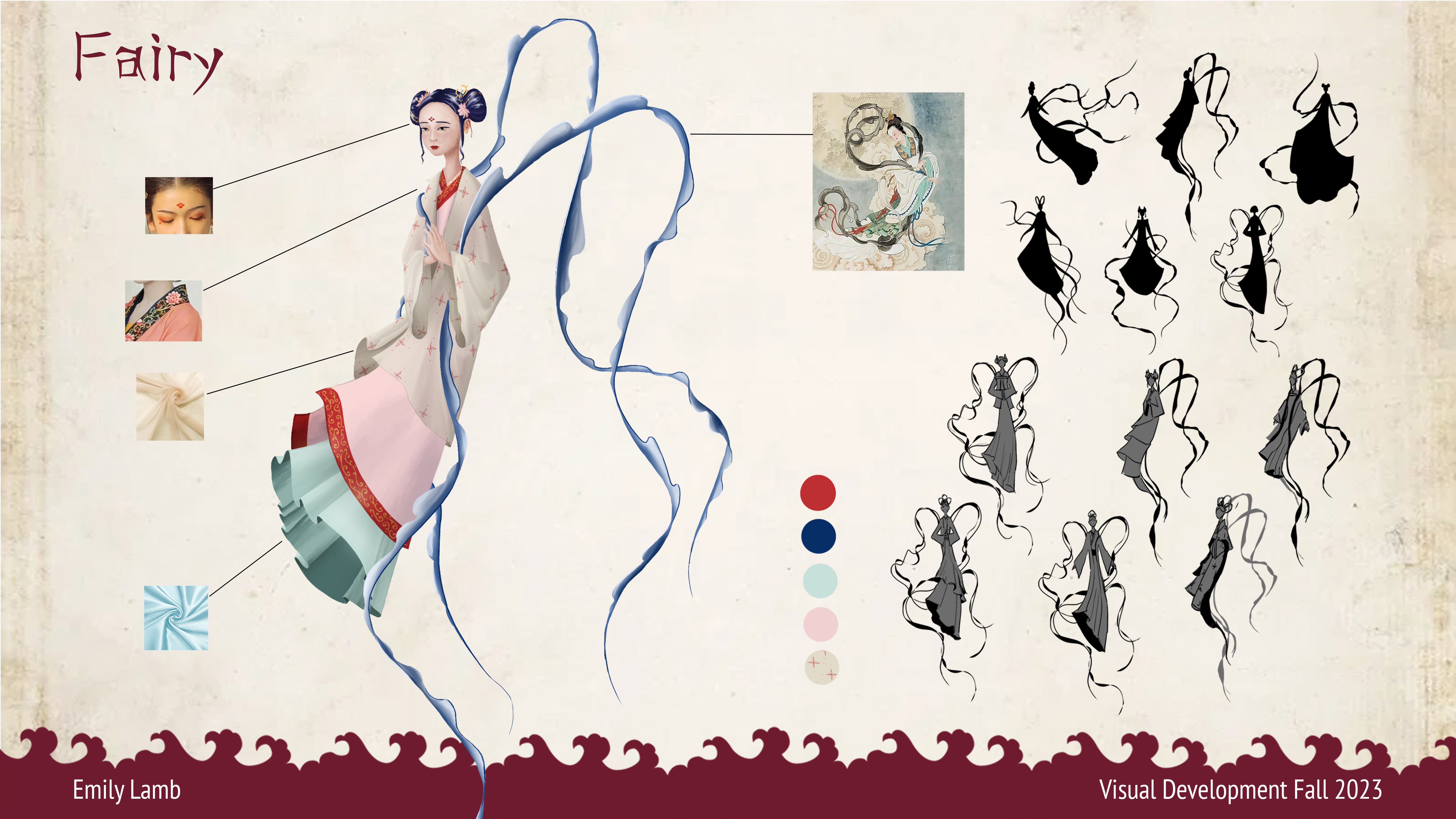 Along with a group, we developed an original story and we each responsible for designing different characters, props, vehicles, and environments. We coordinated story details and style consistency across our work. Our story was set in a fantastical version of the Chinese Tang Dynasty, so extra attention was paid to include historical references and accuracy in our designs.